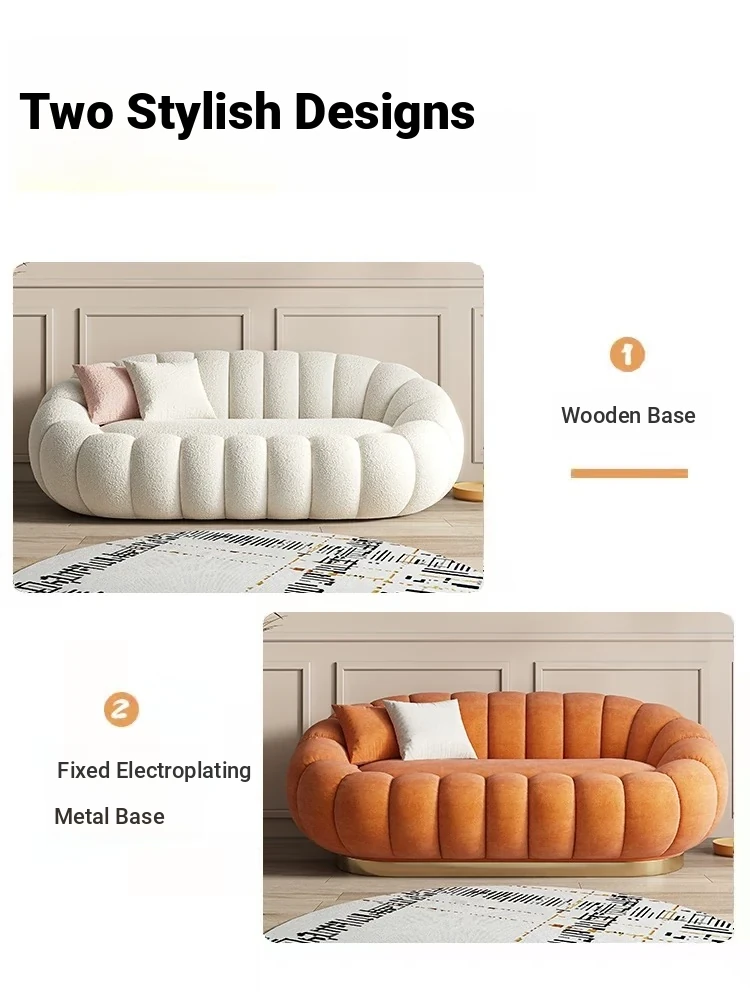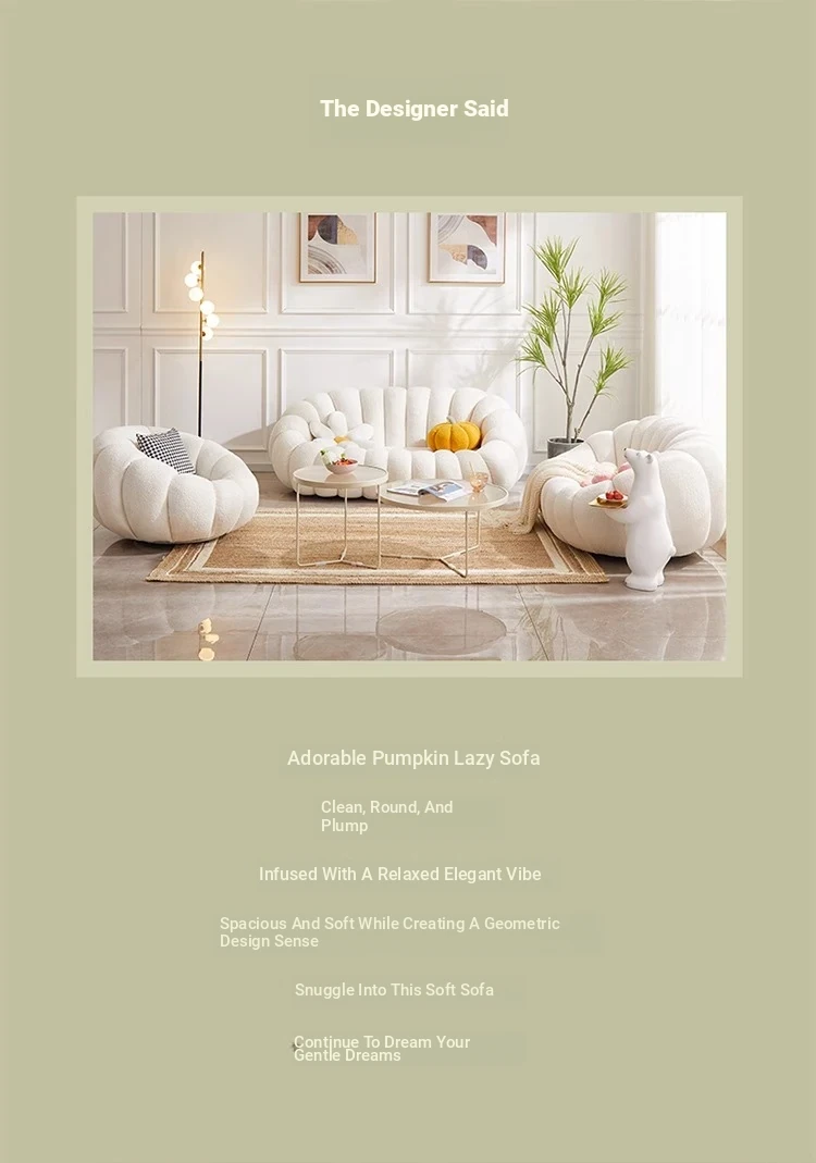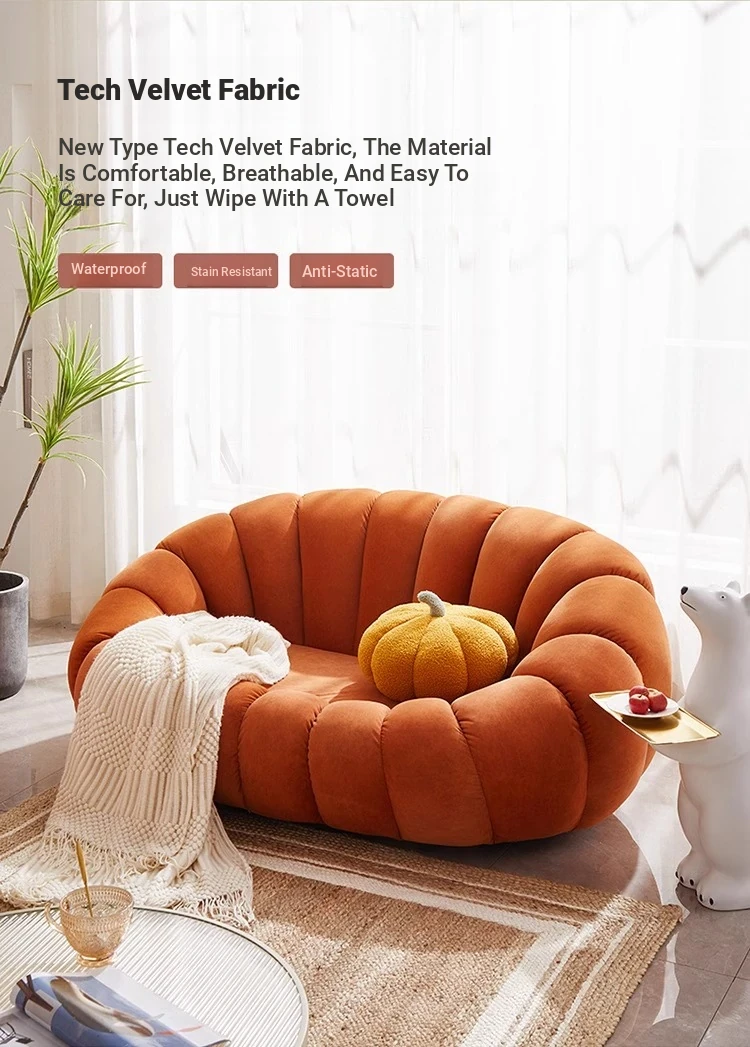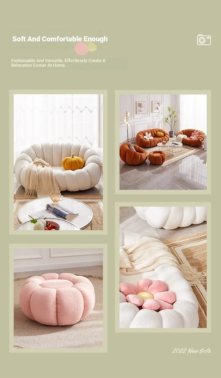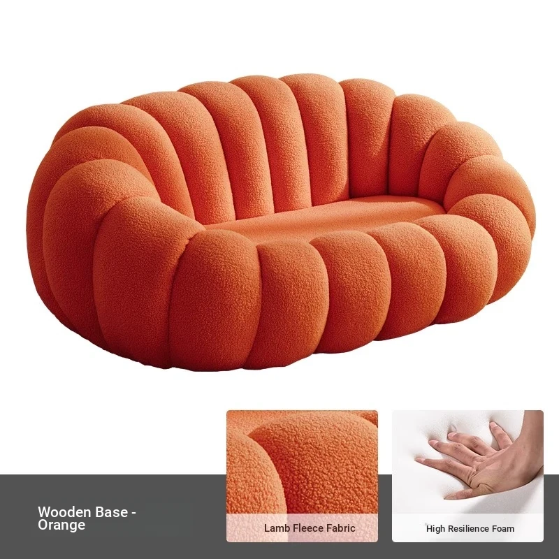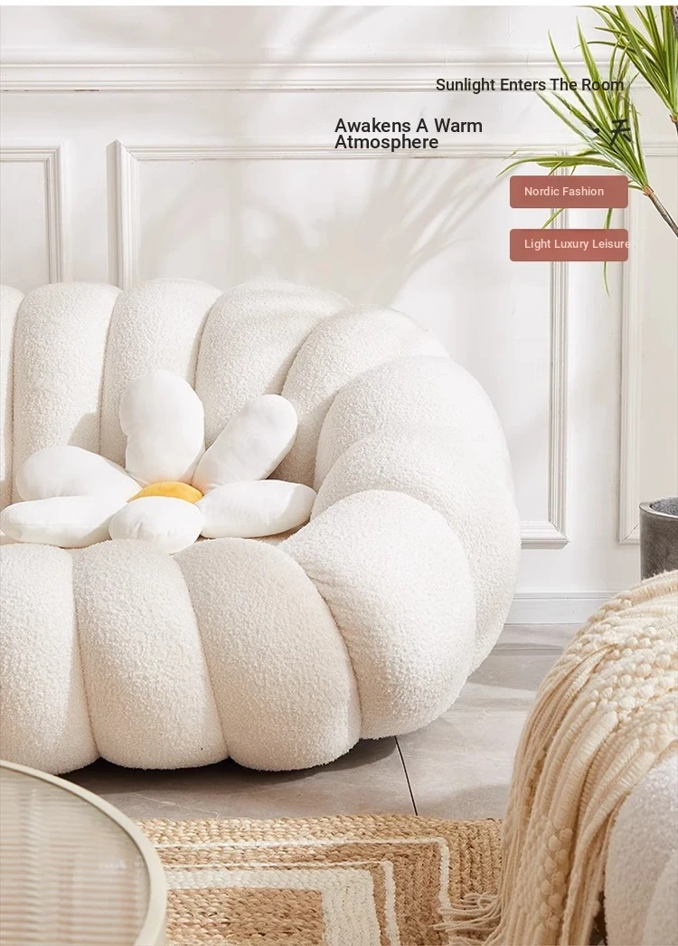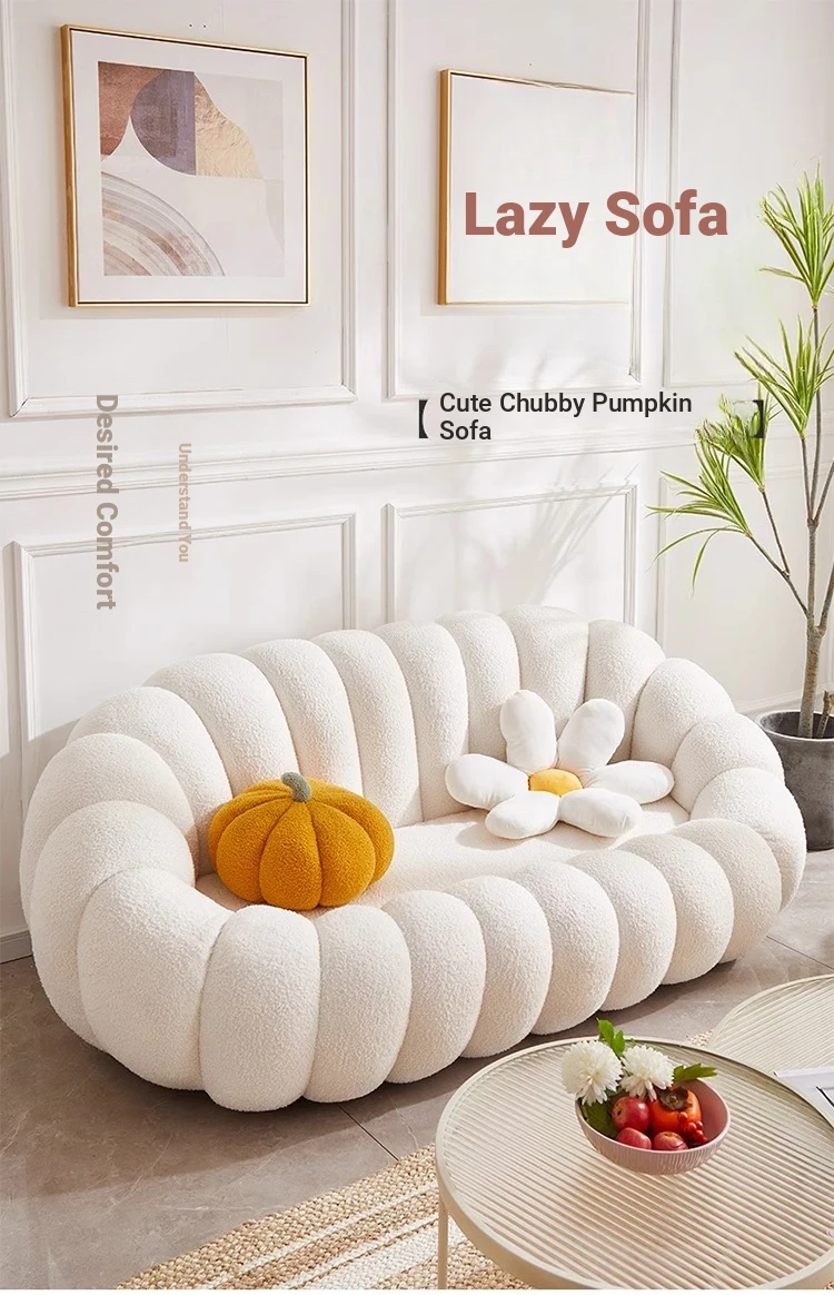 Cozy Tatami Pumpkin Sofa for Two/Three - Adorable White Lamb Fleece Lounge Chair for Bedroom and Balcony Relaxation
