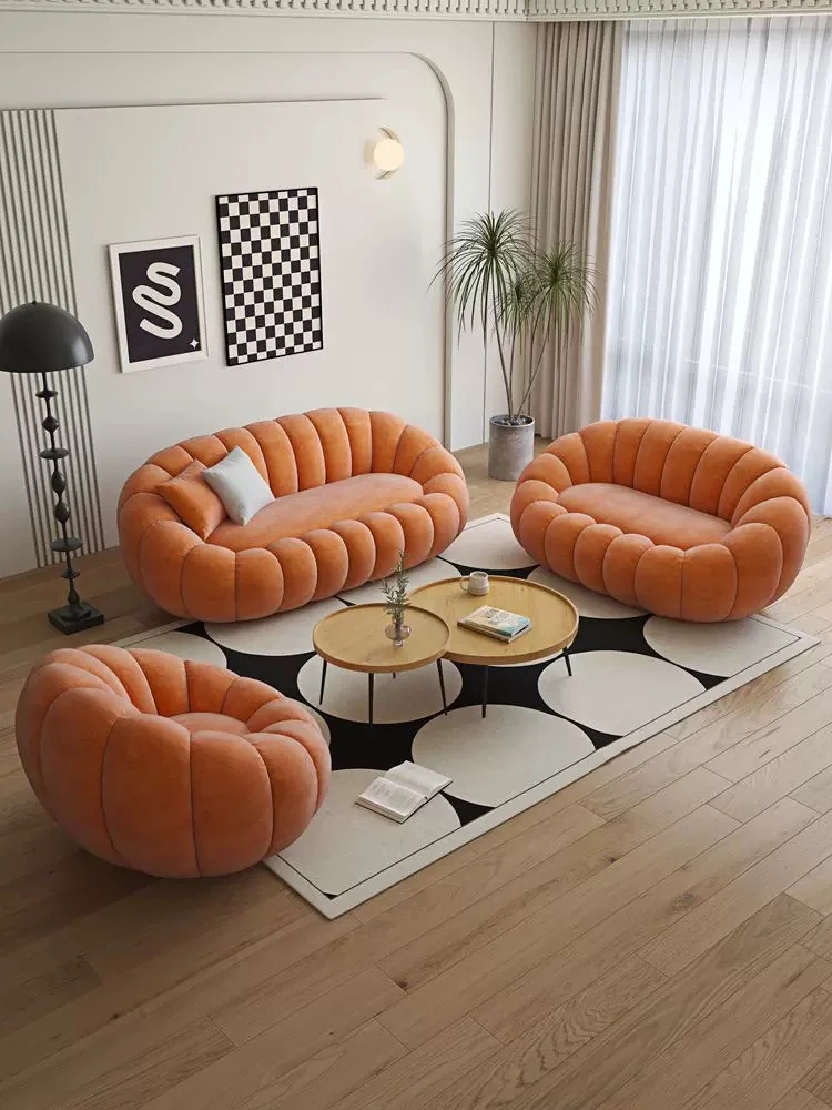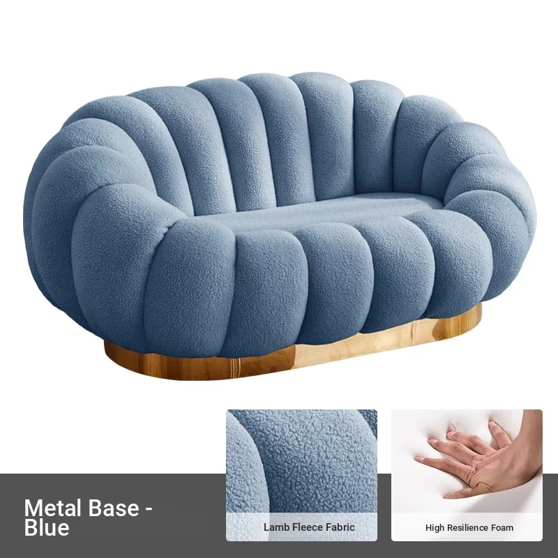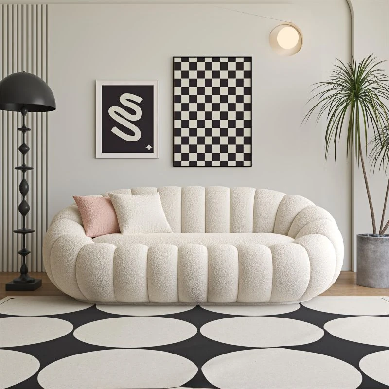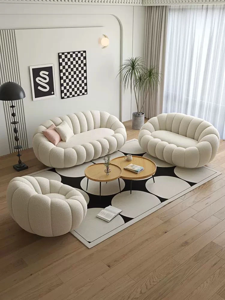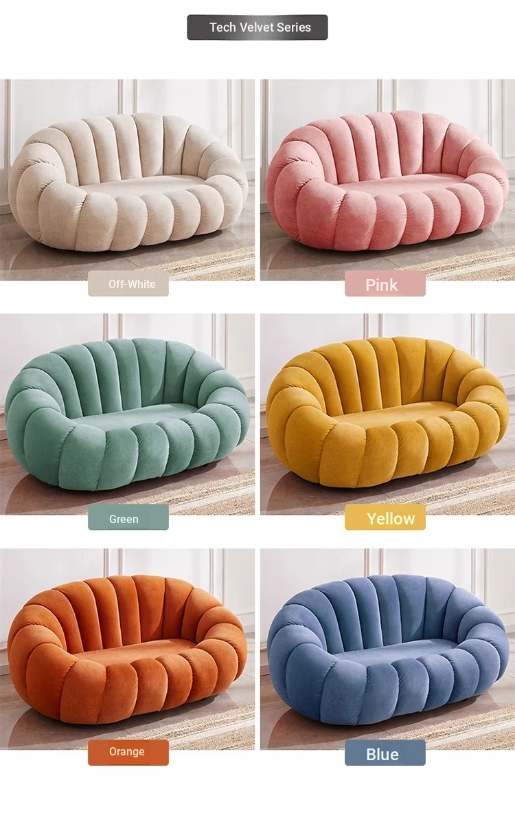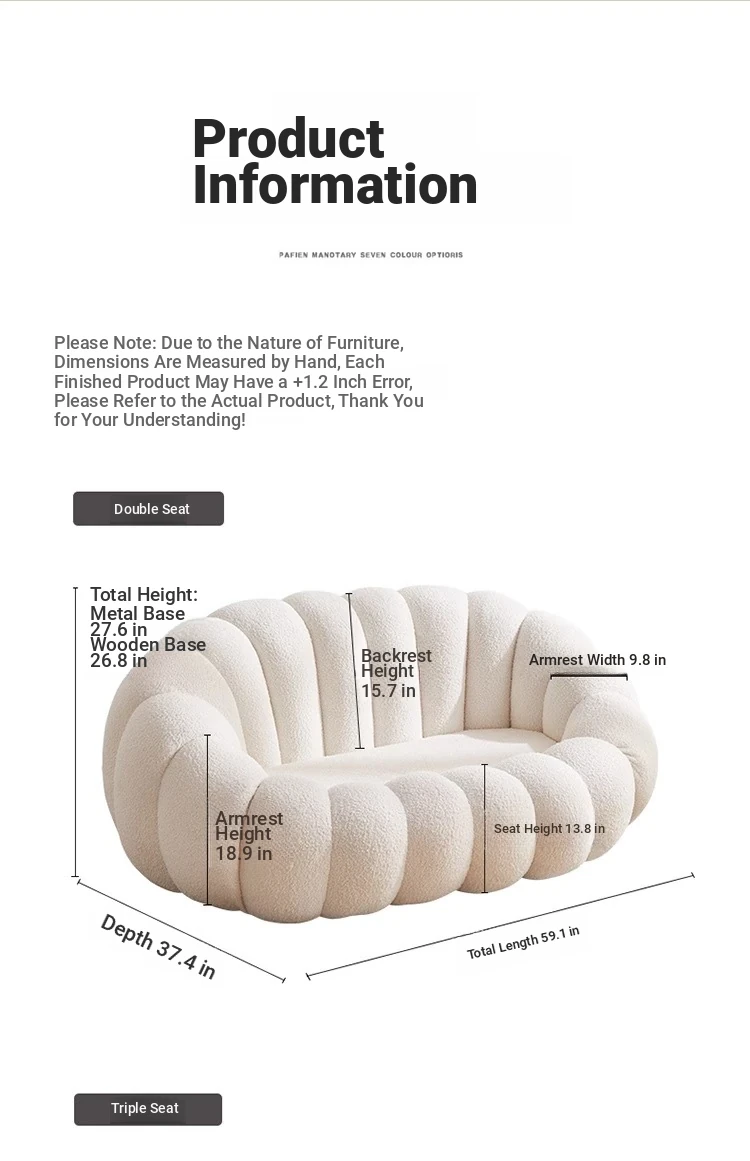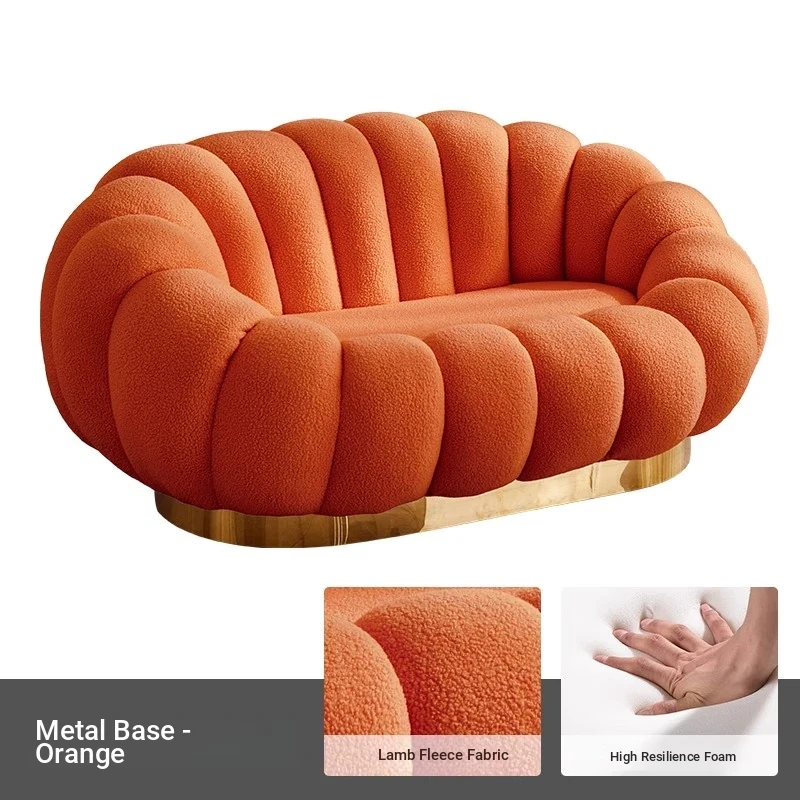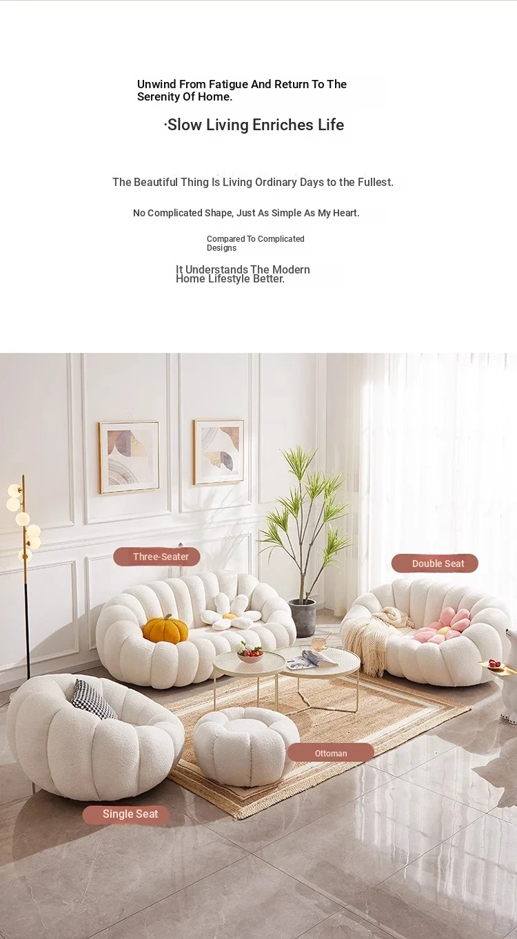 Cozy Tatami Pumpkin Sofa for Two/Three - Adorable White Lamb Fleece Lounge Chair for Bedroom and Balcony Relaxation