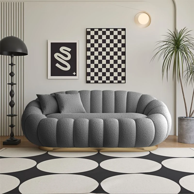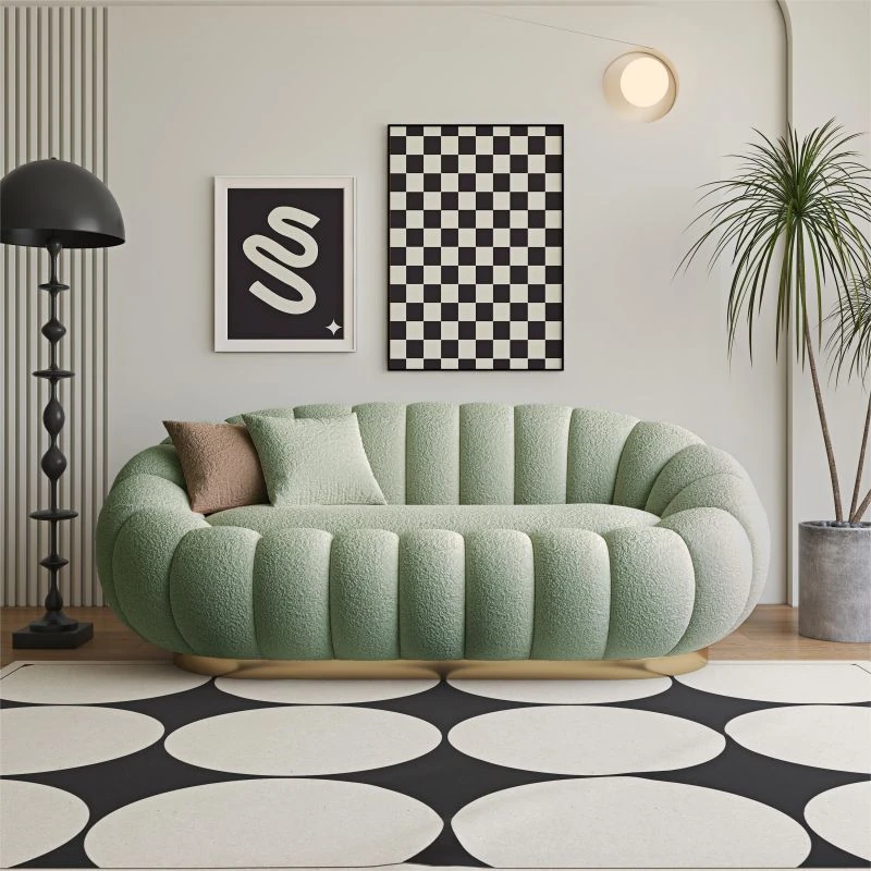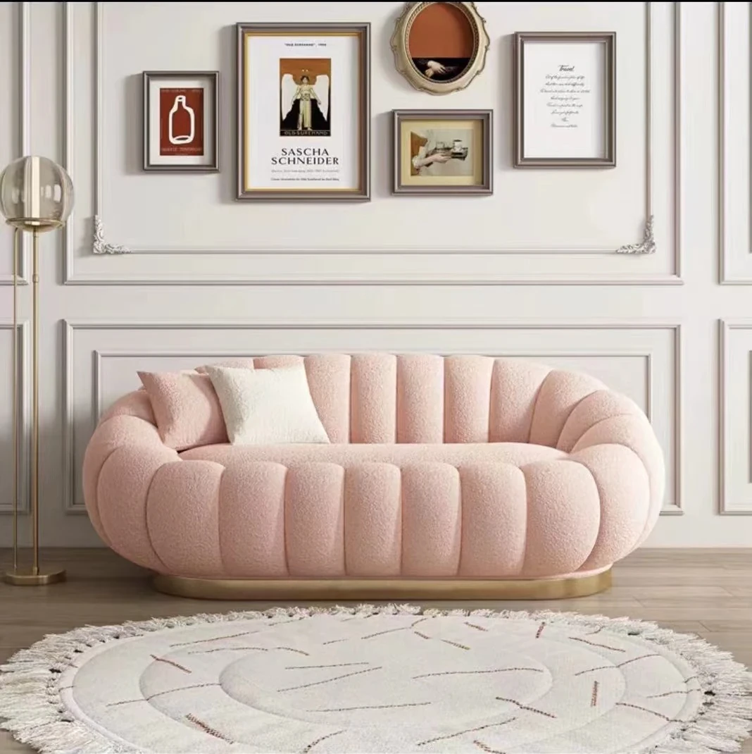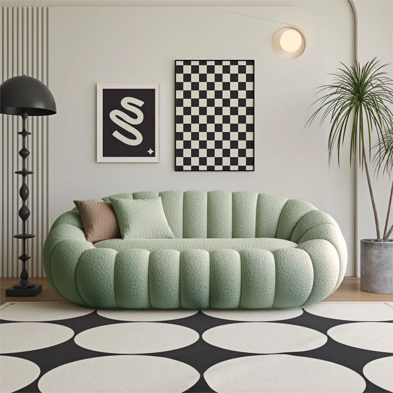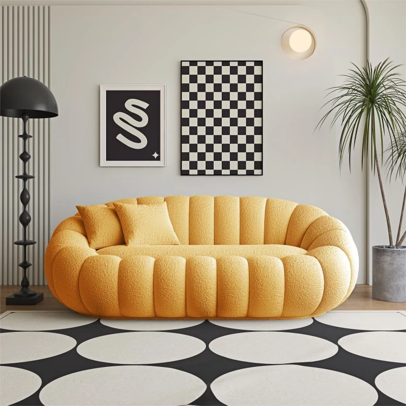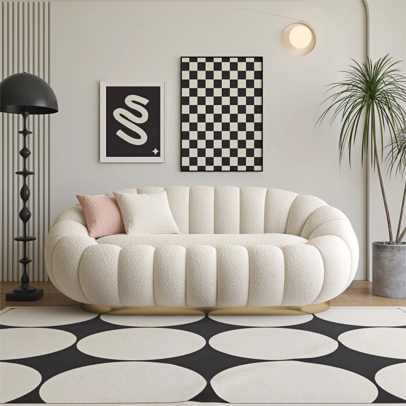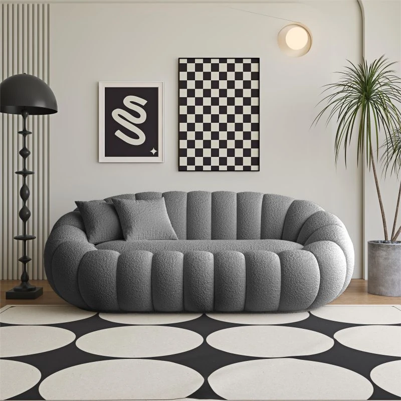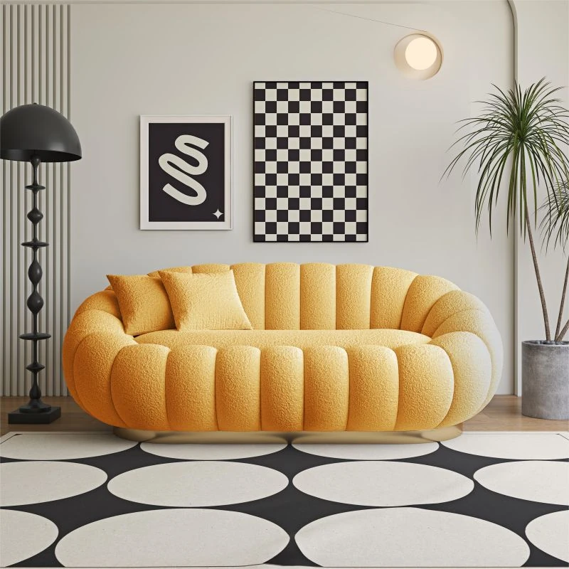 Cozy Tatami Pumpkin Sofa for Two/Three - Adorable White Lamb Fleece Lounge Chair for Bedroom and Balcony Relaxation