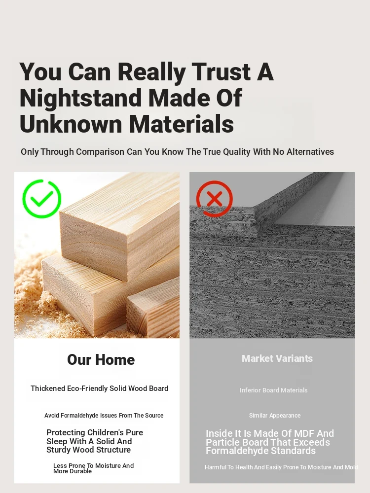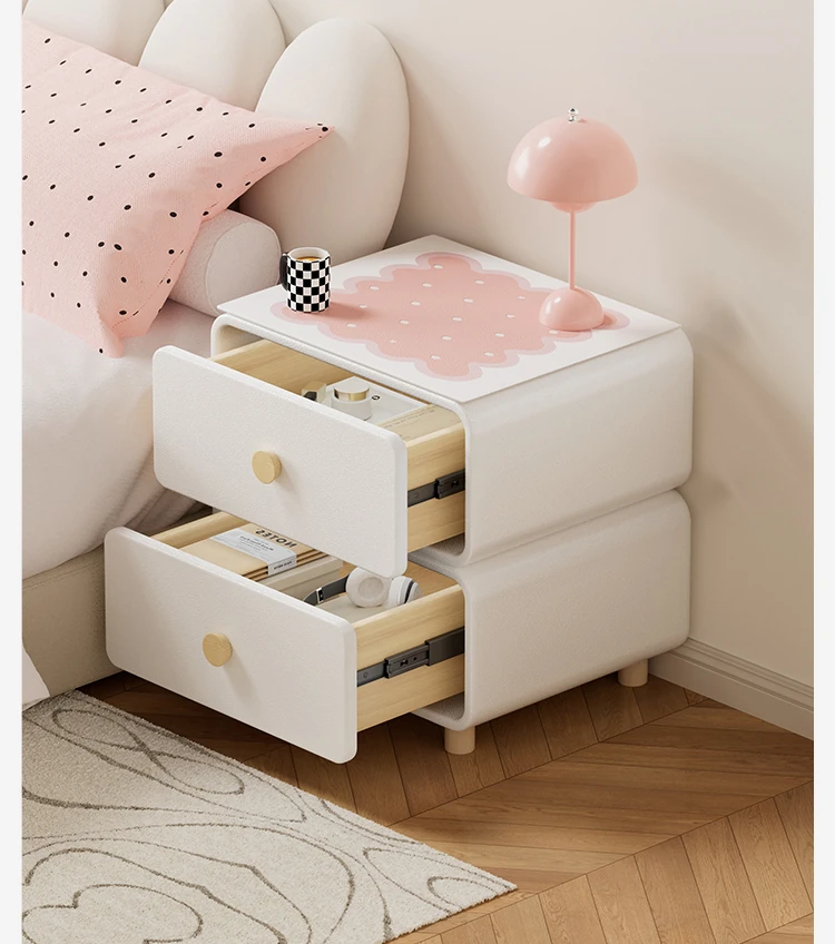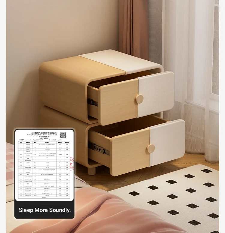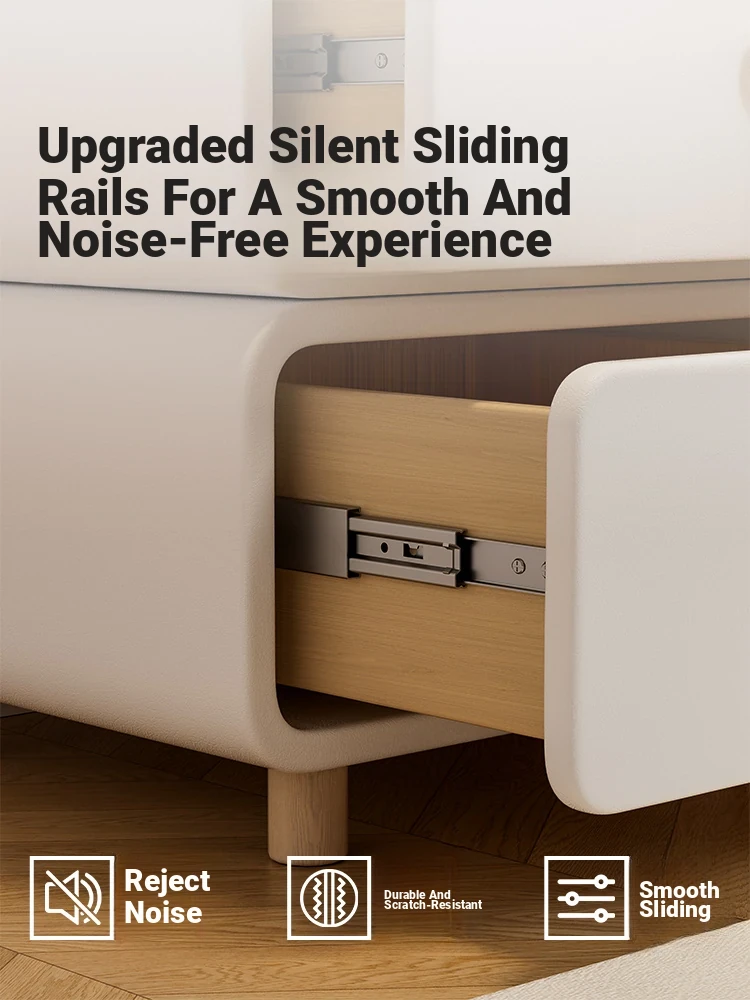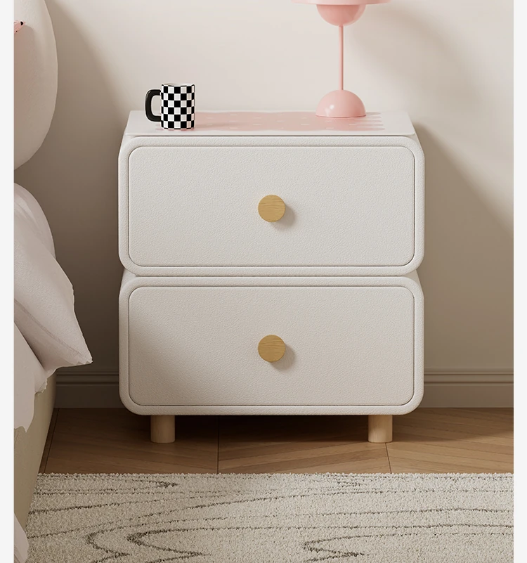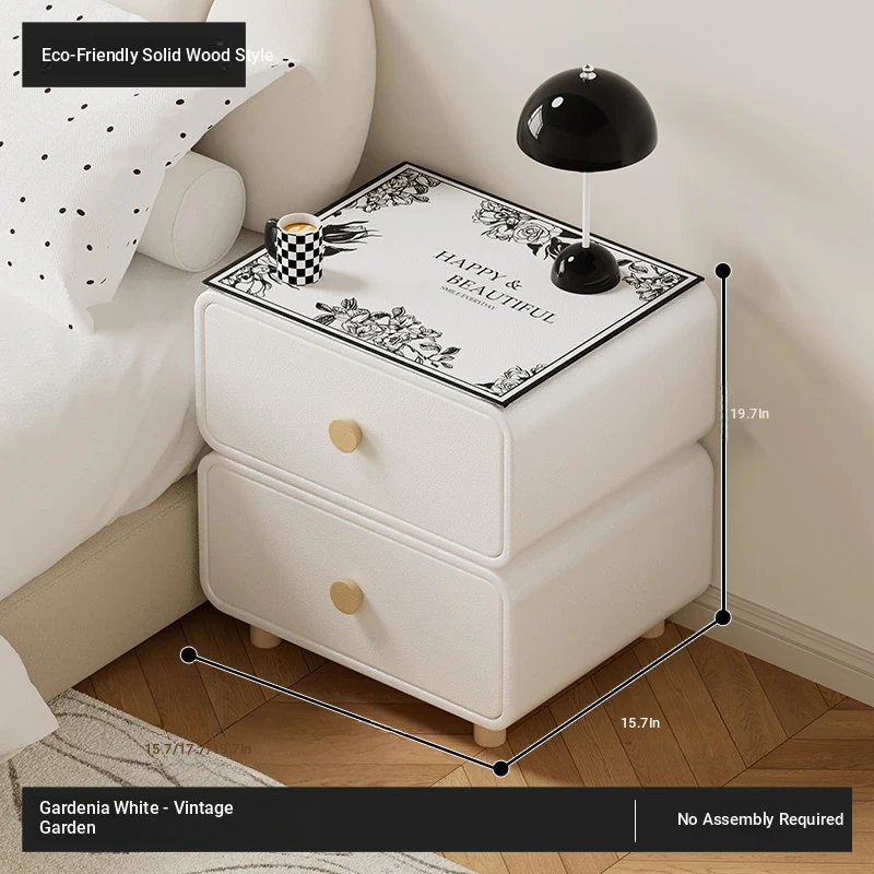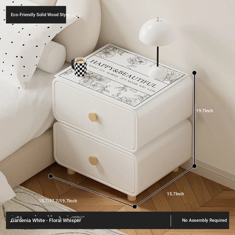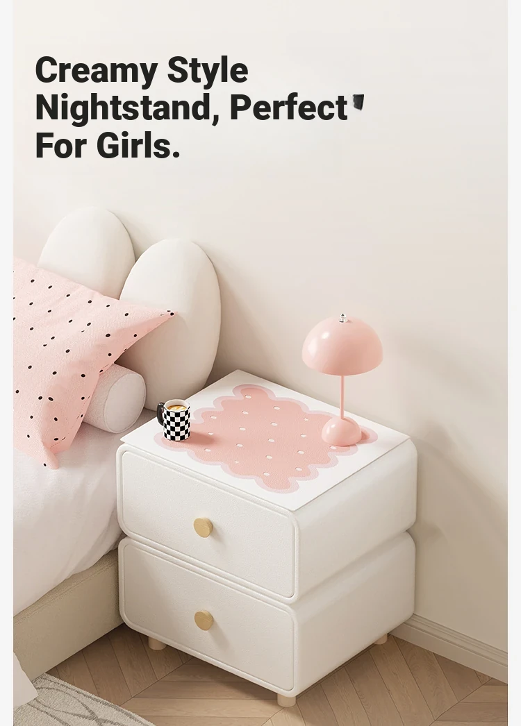 Creamy Wood Nightstand - Stylish & Compact Bedside Storage Cabinet for Bedroom, 2025 New Luxury Design