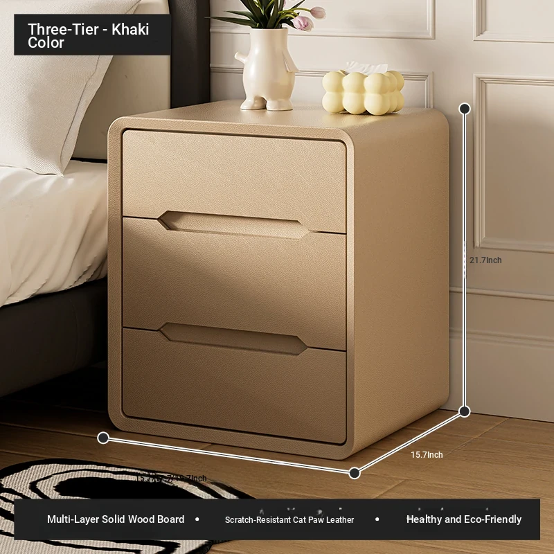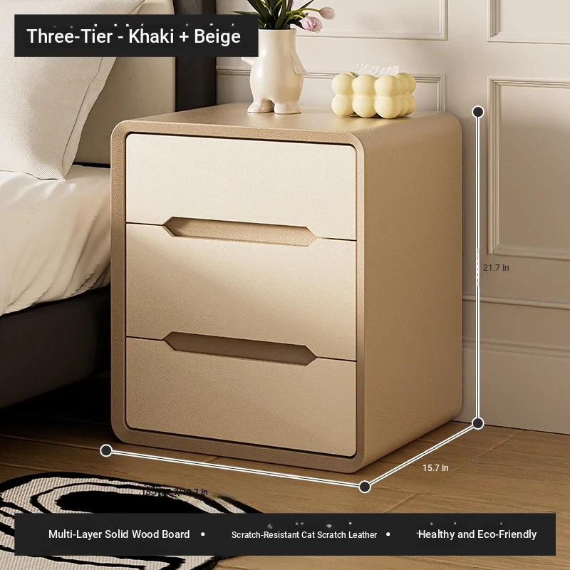 Three smoke-khaki (thickened multi-layer solid wood frame + solid wood drawer)