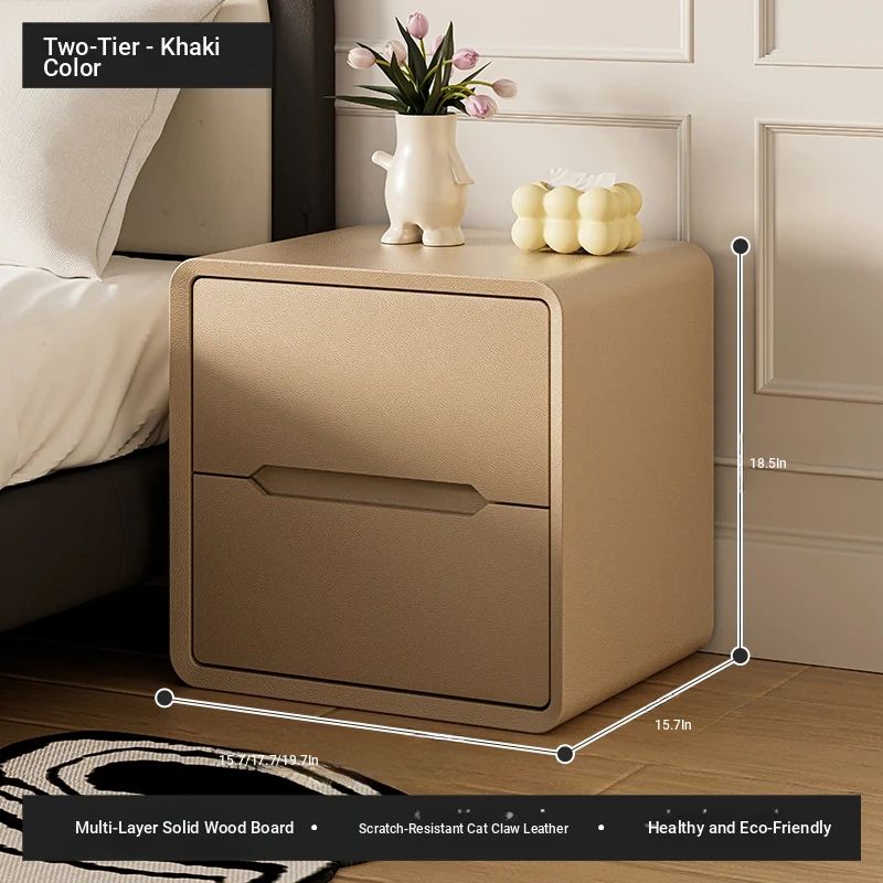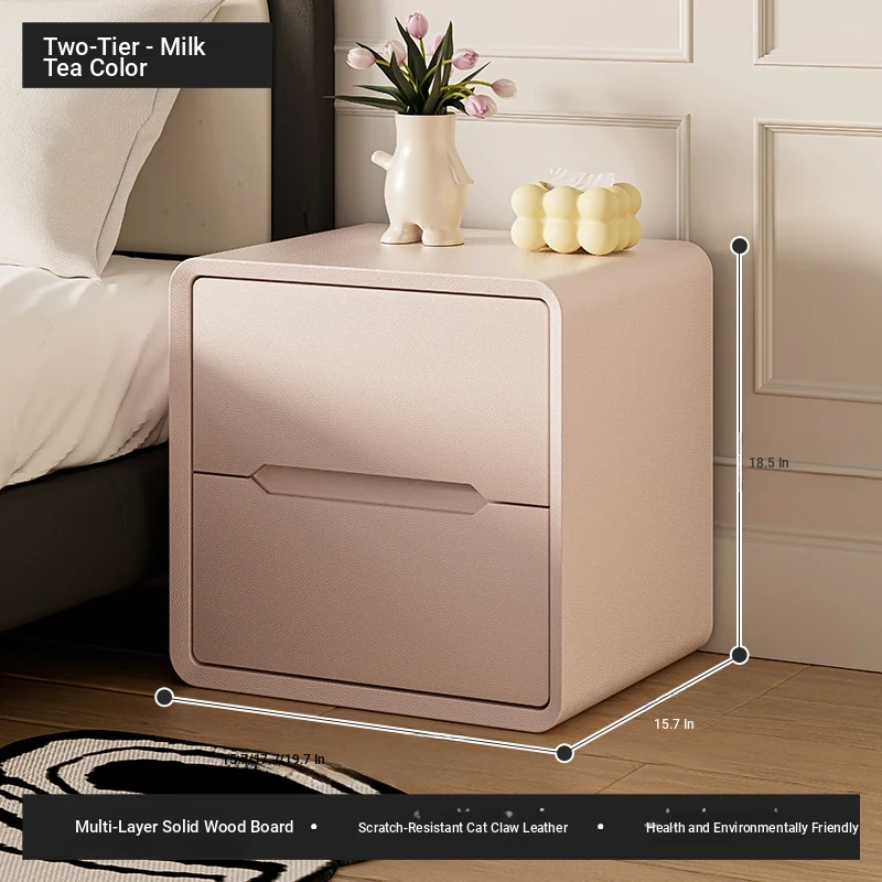 Double draw-milk tea color (thickened multi-layer solid wood frame + solid wood drawer)