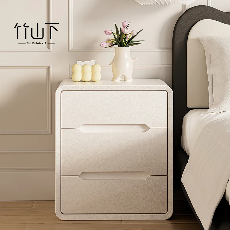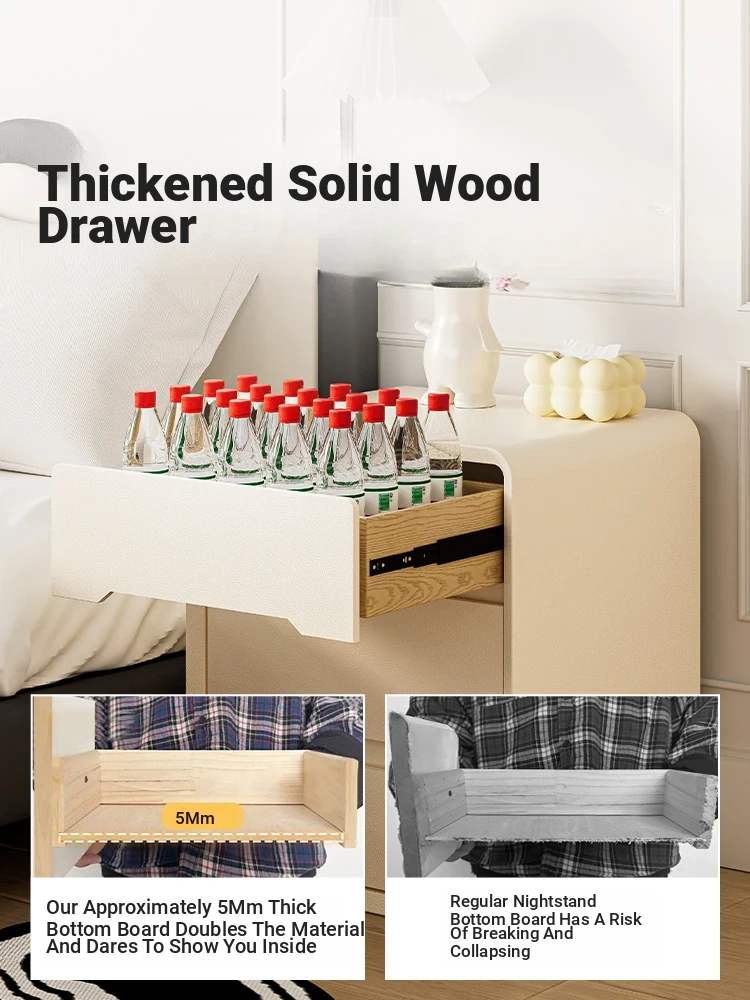 Creamy Wooden Nightstand for Bedroom - Stylish and Compact Bedside Storage Cabinet for Home, 2025 Trending Luxury Design