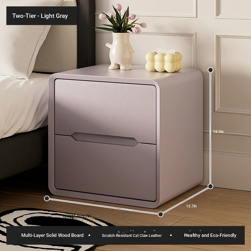 Double draw-light gray (thickened multi-layer solid wood frame + solid wood drawer)