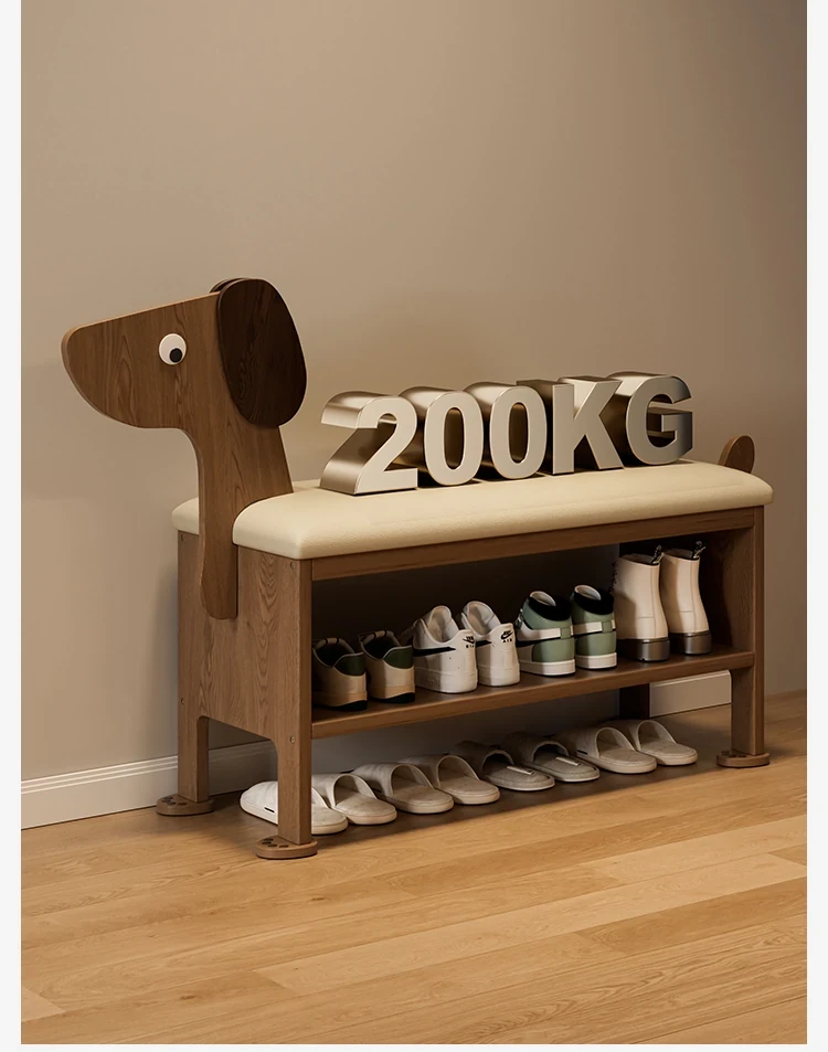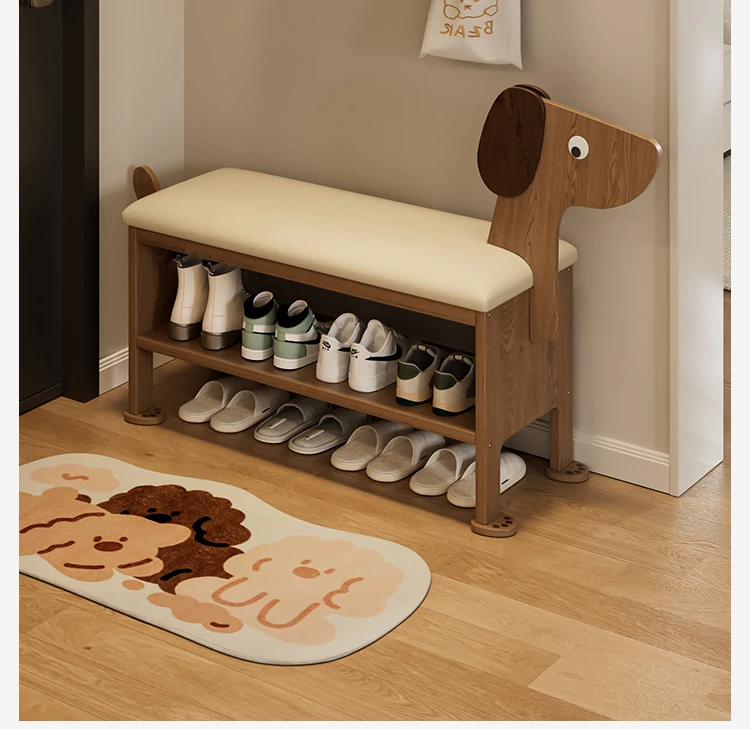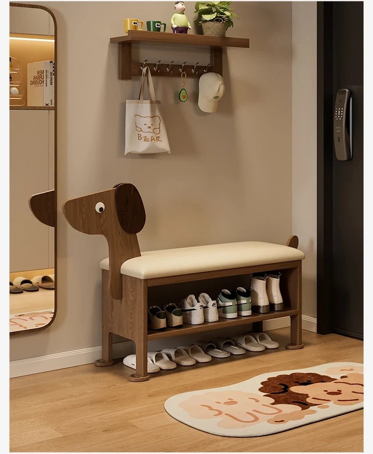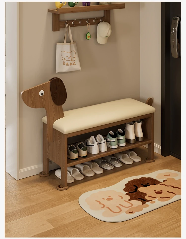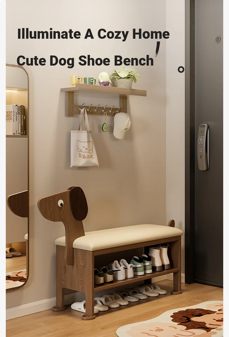 Creative Wooden Dog-Shaped Shoe Bench and Storage Cabinet – Narrow Entryway Shoe Stool for Home Use, Perfect for Changing Shoes and Organizing Space