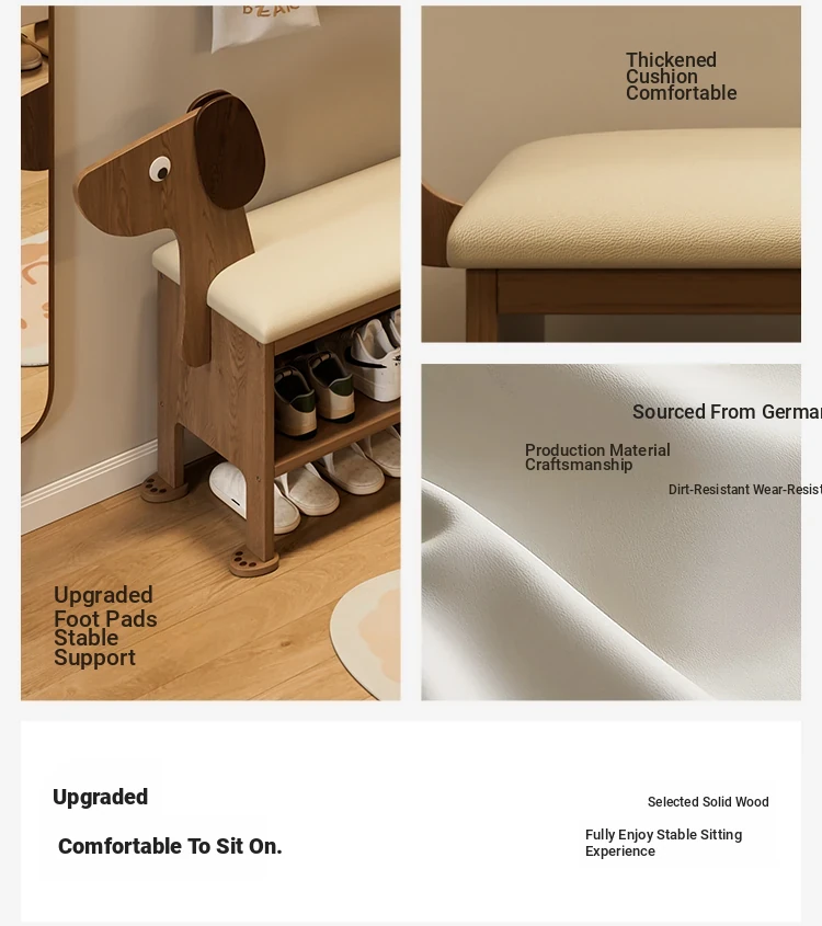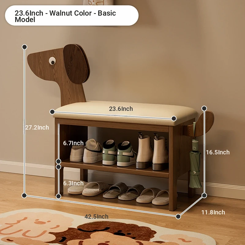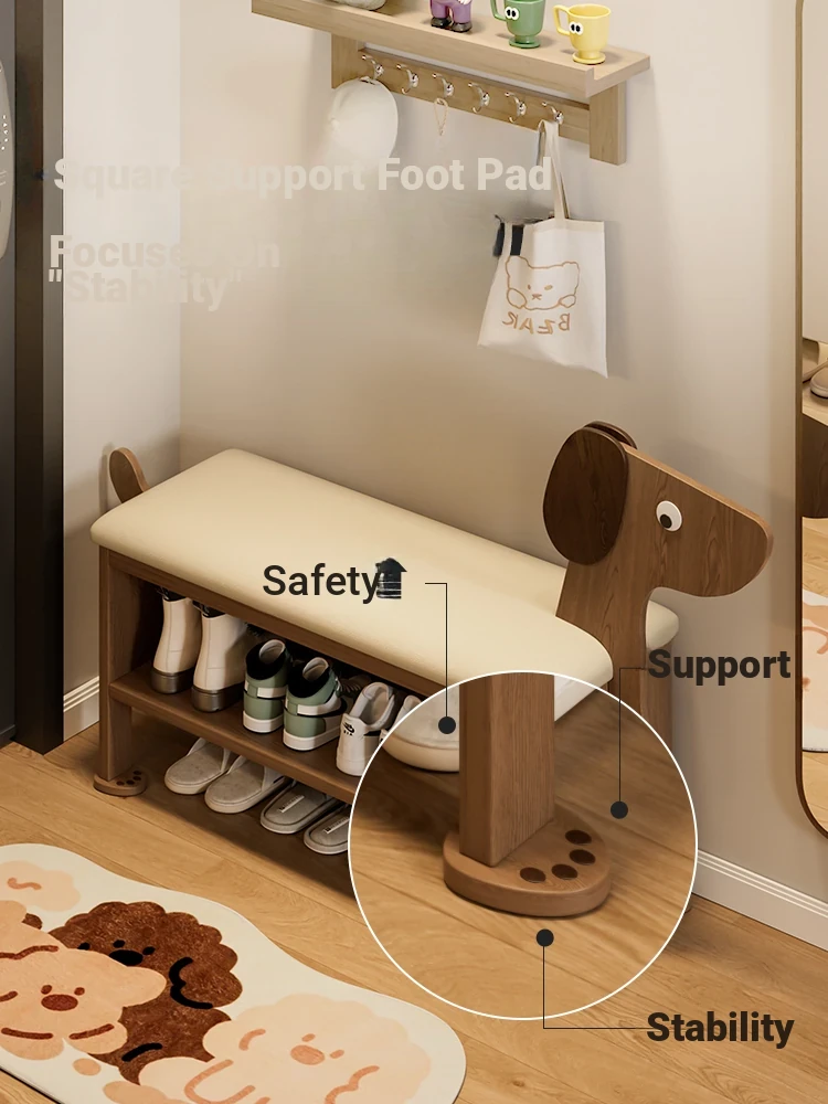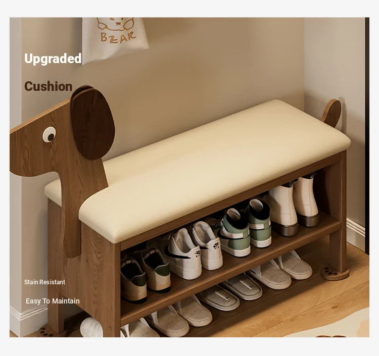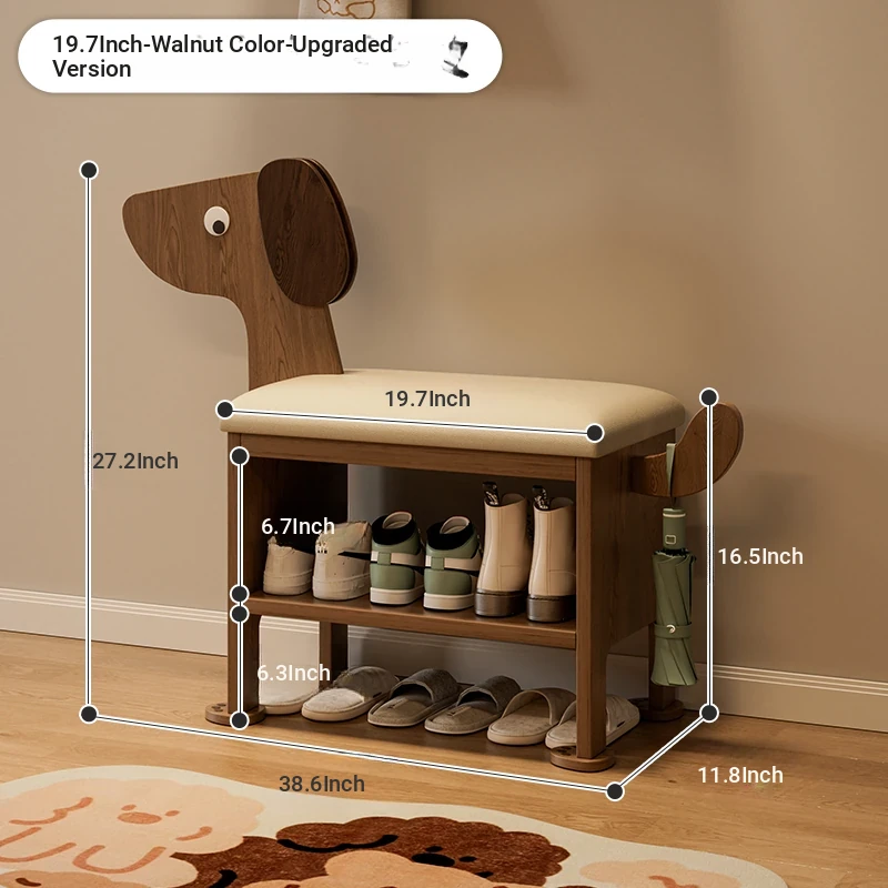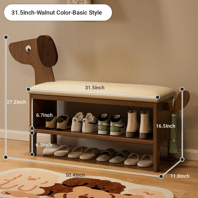 Creative Wooden Dog-Shaped Shoe Bench and Storage Cabinet – Narrow Entryway Shoe Stool for Home Use, Perfect for Changing Shoes and Organizing Space