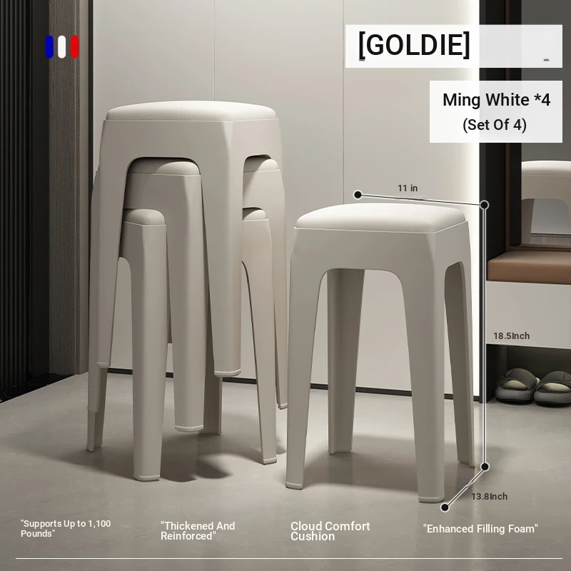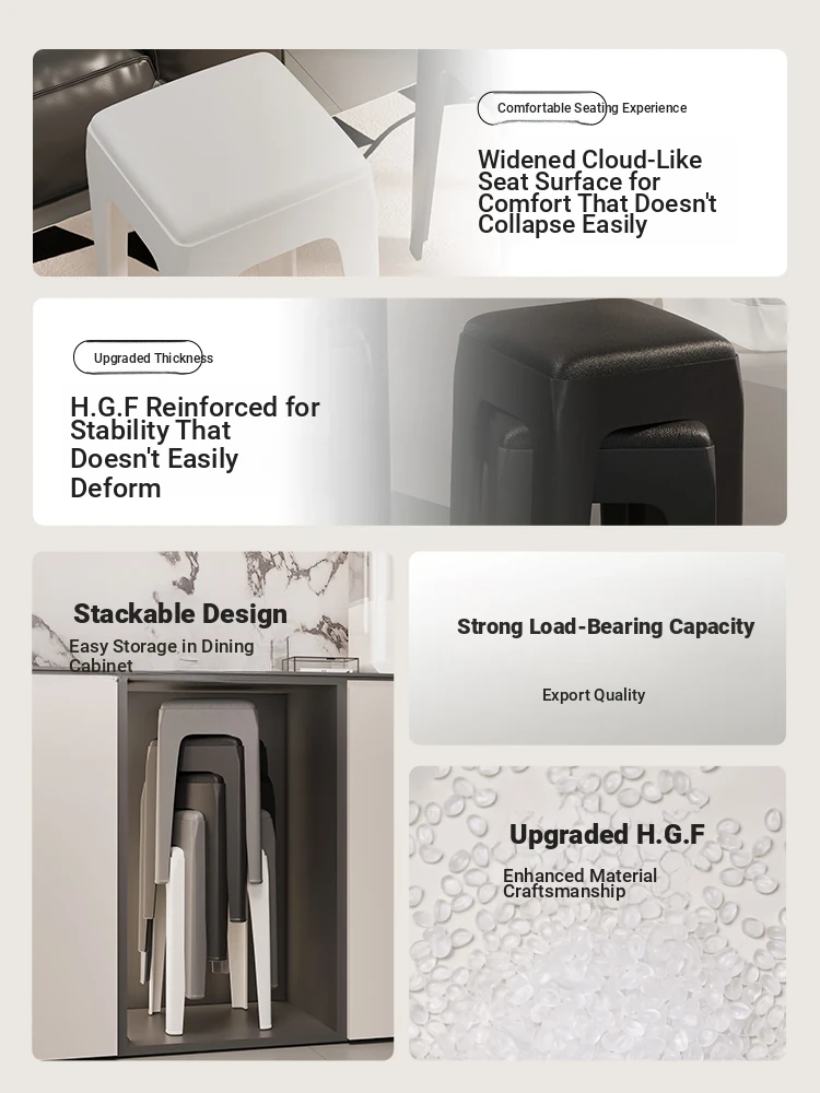 Durable and Sturdy Plastic Stool for Home Use - Stackable High-End Guest Seat with Thick Soft Cushion - Perfect for Extra Seating Solutions!