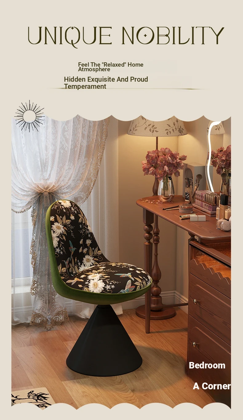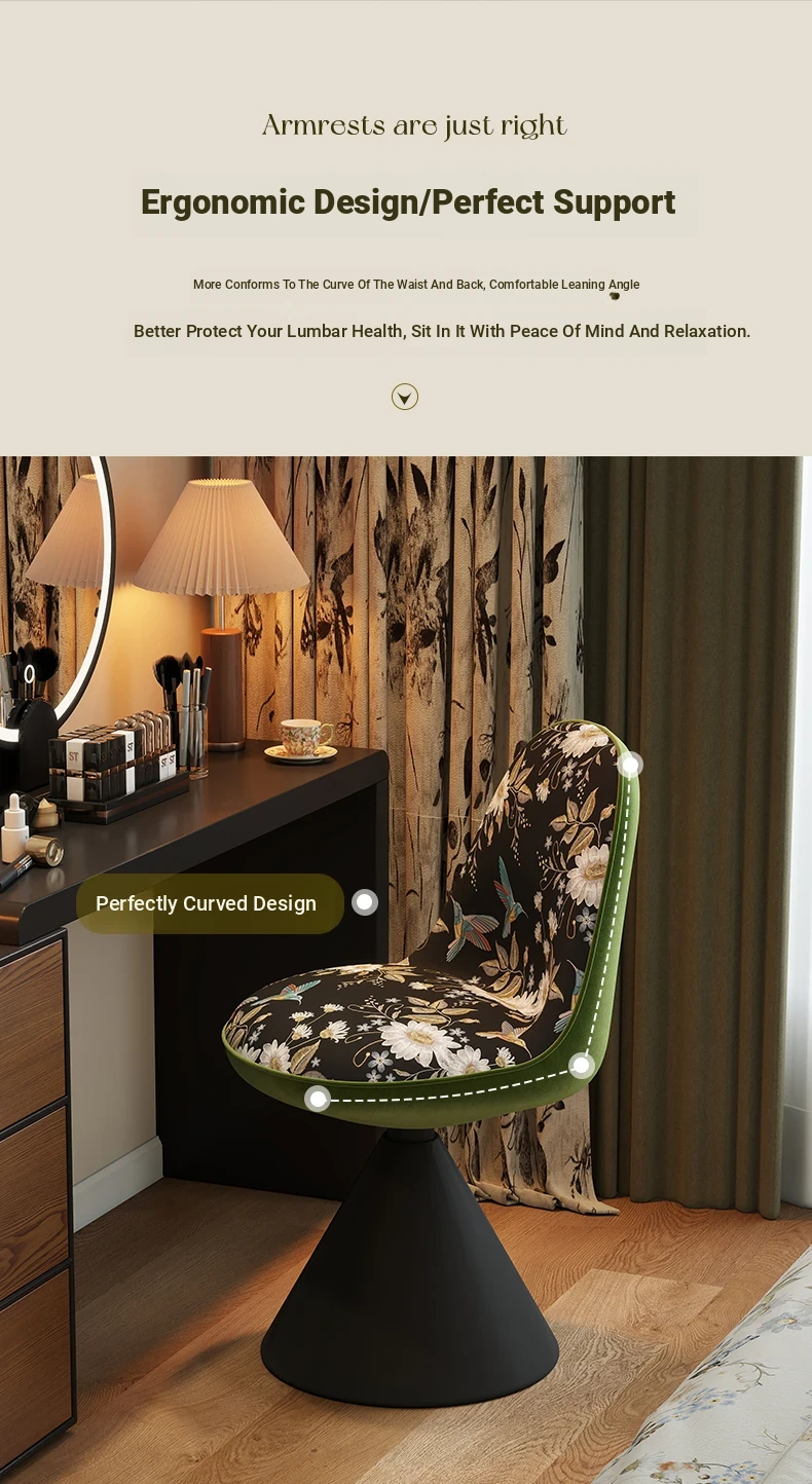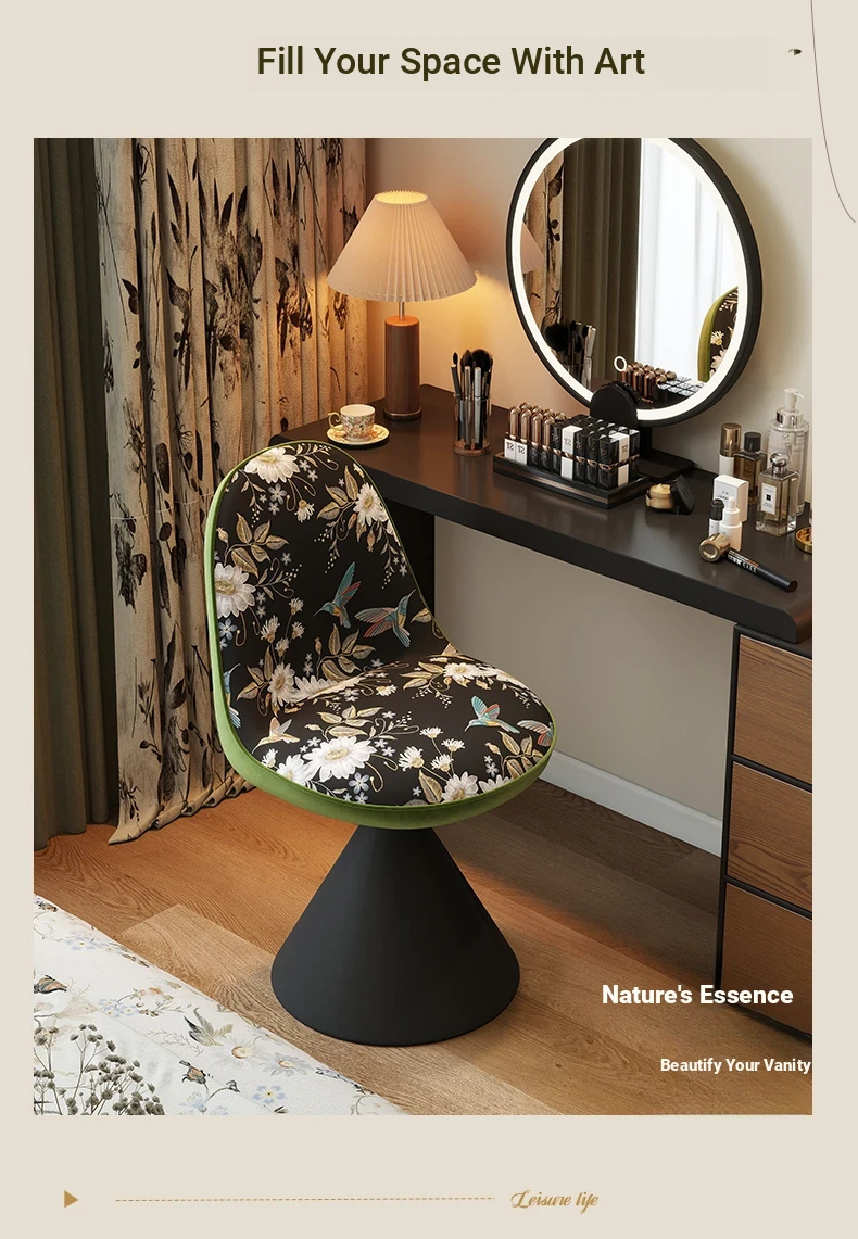 Elegant Bedroom Makeup Chair with Backrest - Chic Robby Chair in Italian Style, Rotatable Design for Luxurious Vanity Experience