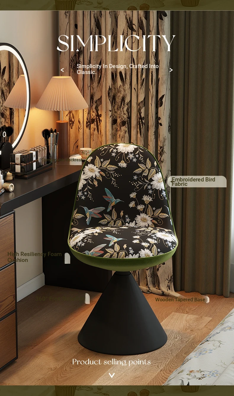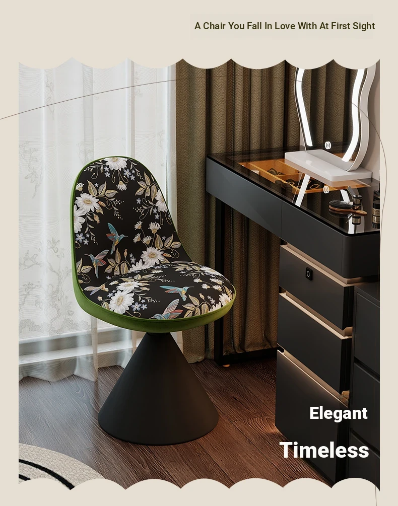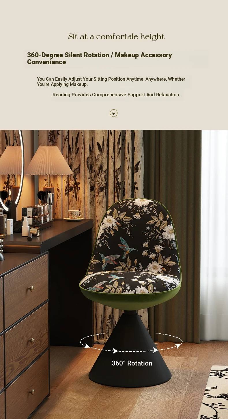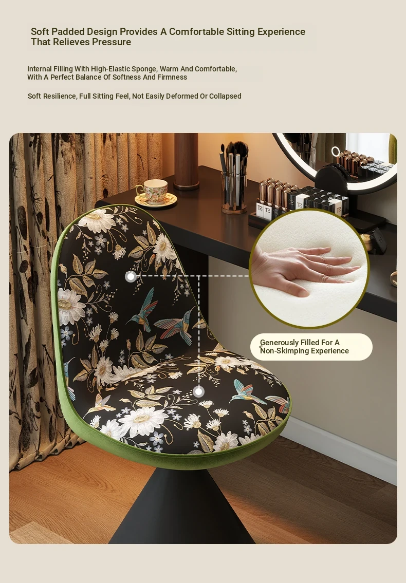 Elegant Bedroom Makeup Chair with Backrest - Chic Robby Chair in Italian Style, Rotatable Design for Luxurious Vanity Experience