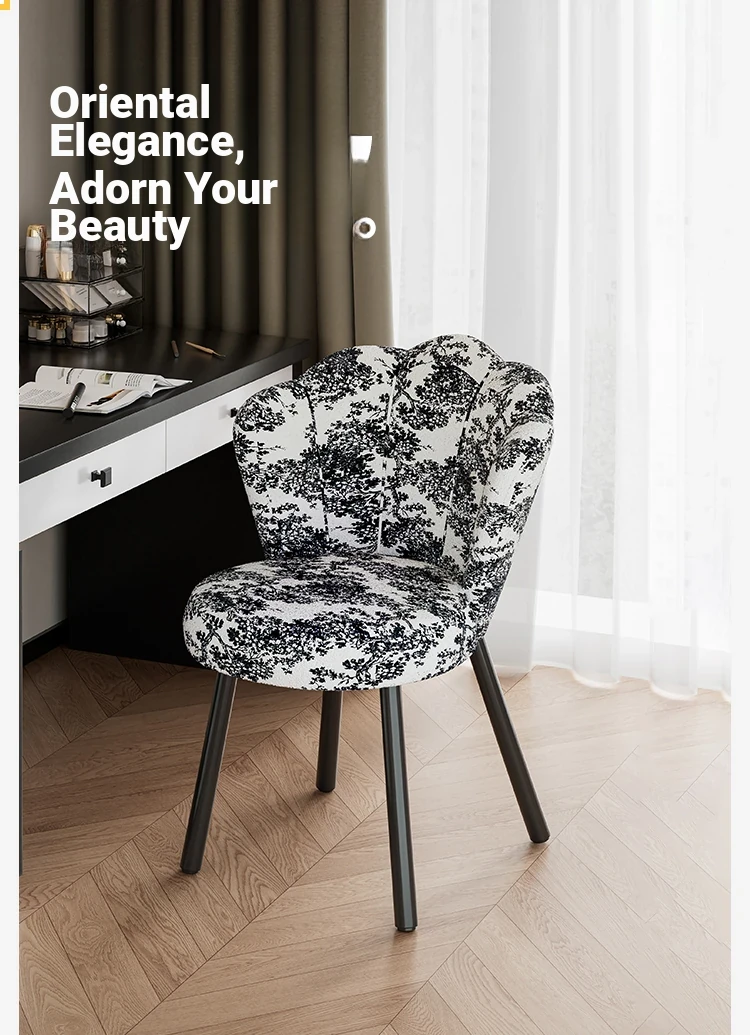 Elegant Bedroom Vanity Stool - Luxurious Makeup Chair for Master Bedroom, Minimalist Design with Backrest, Perfect for Dressing Tables and Home Use.