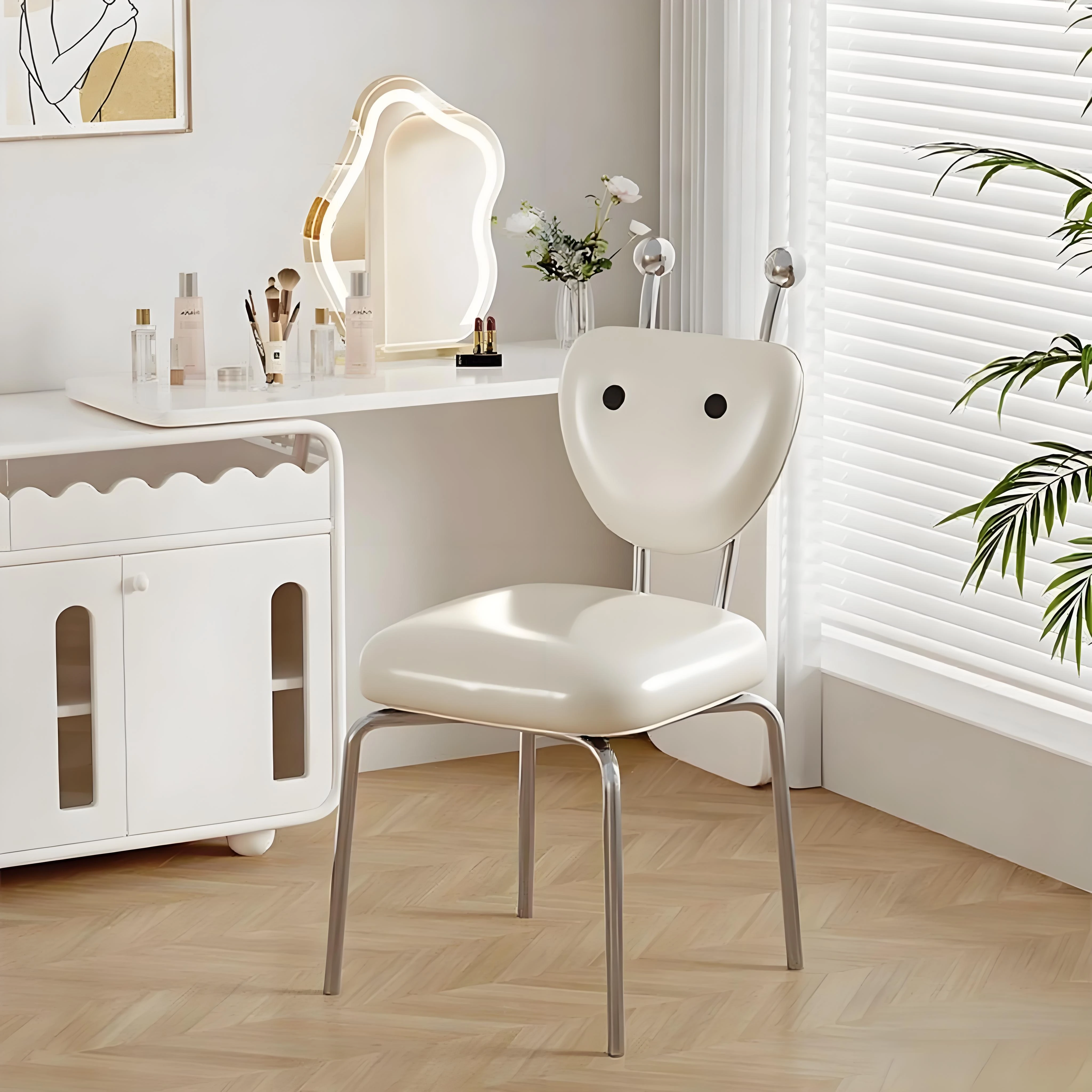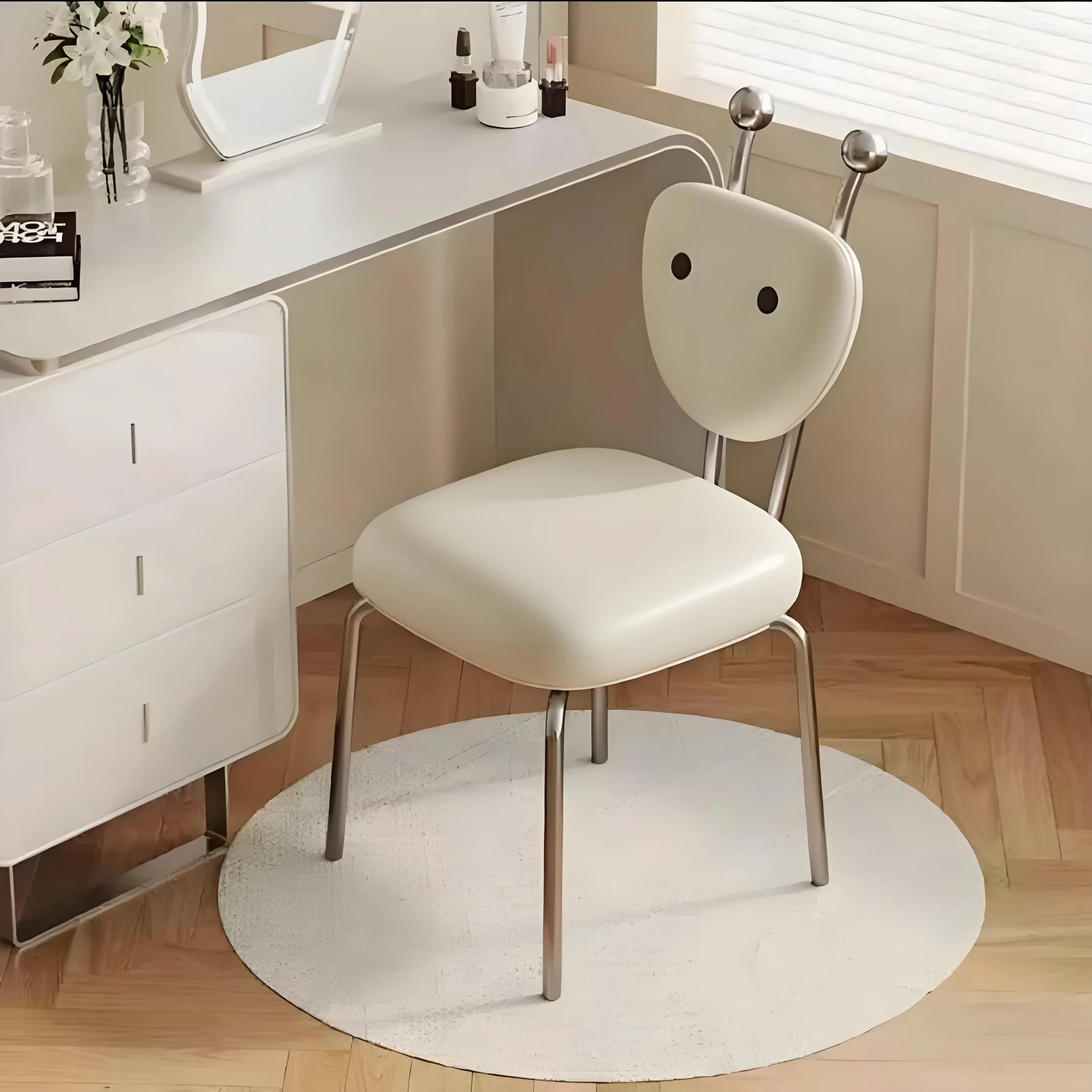 Elegant Makeup Stool for Women - Luxurious Vanity Chair with Backrest, Rotatable Design, Perfect for Bedroom and Nail Art. Upgrade Your Beauty Routine with Comfort and Style!