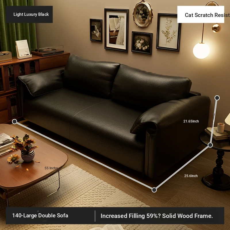 Elegant Minimalist Black Sofa for Small Spaces - Stylish Mid-Century Double Sofa for Living Room and Bedroom - Luxurious New Design, Perfect for Modern Homes!