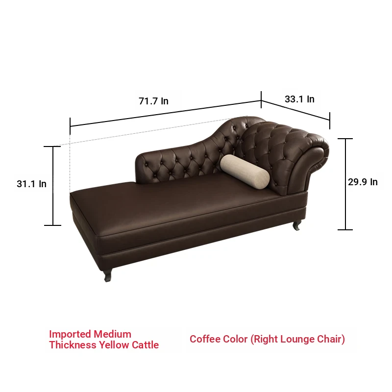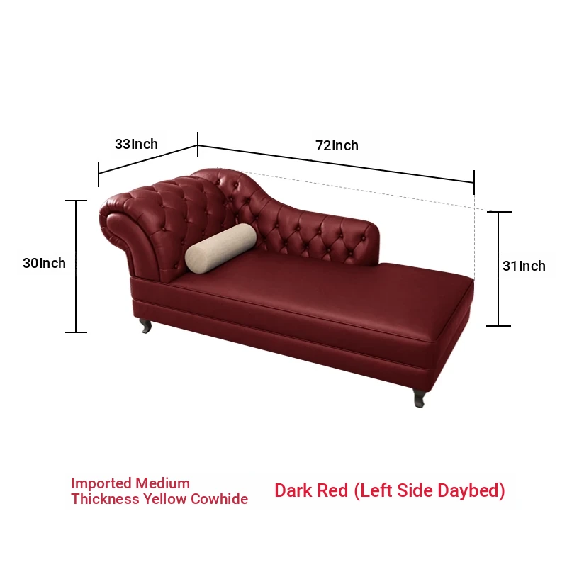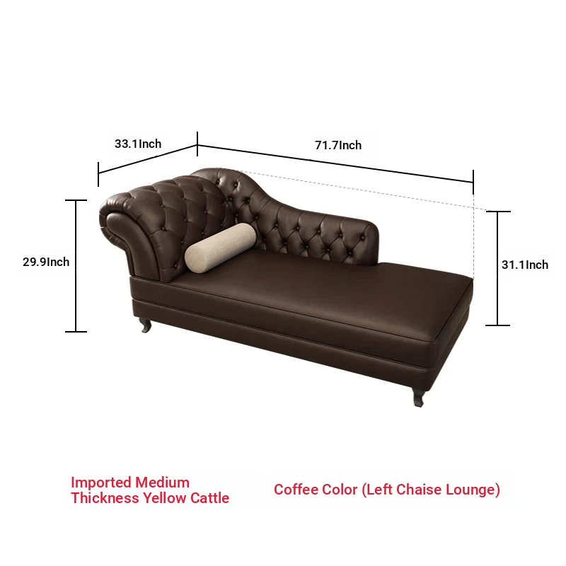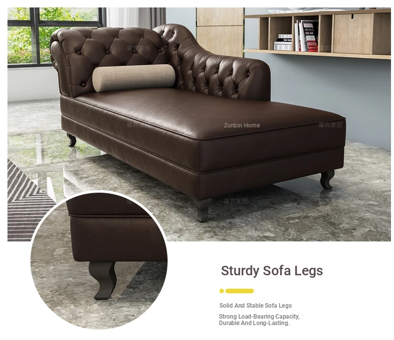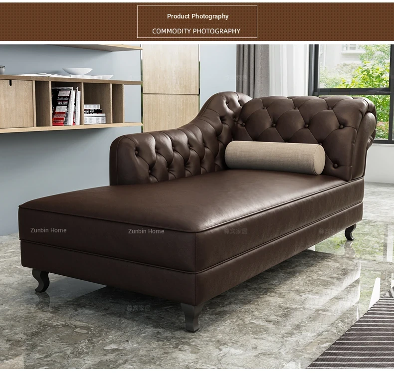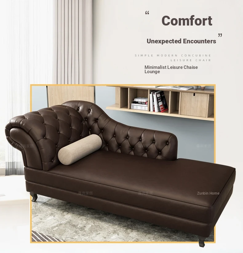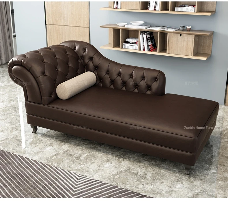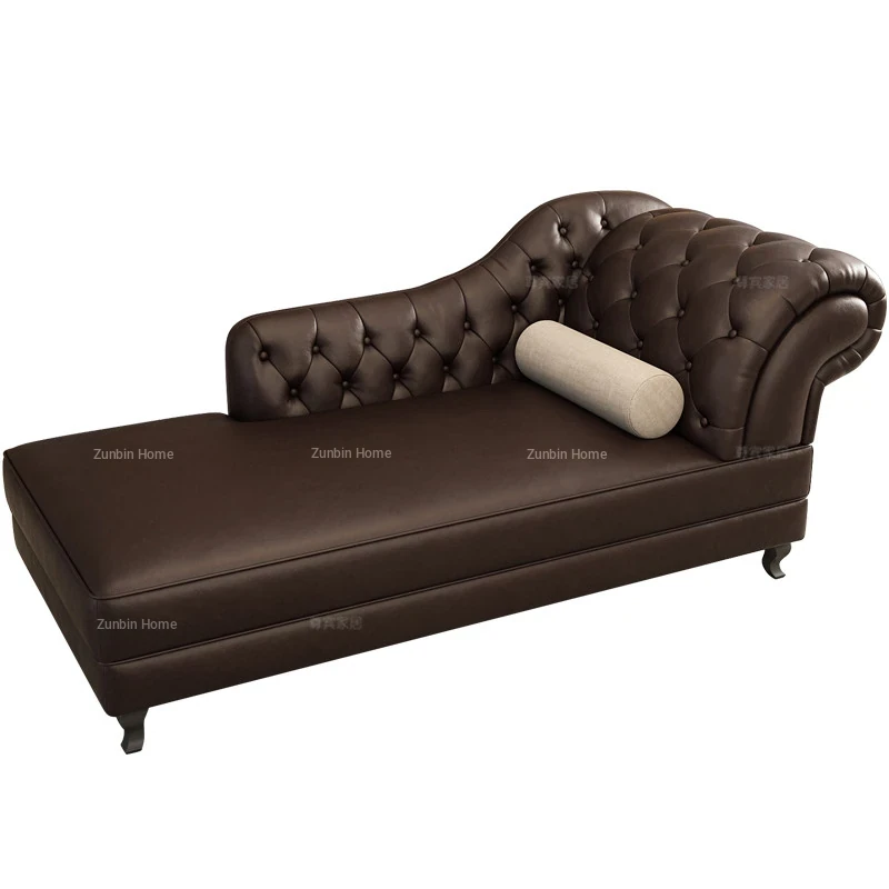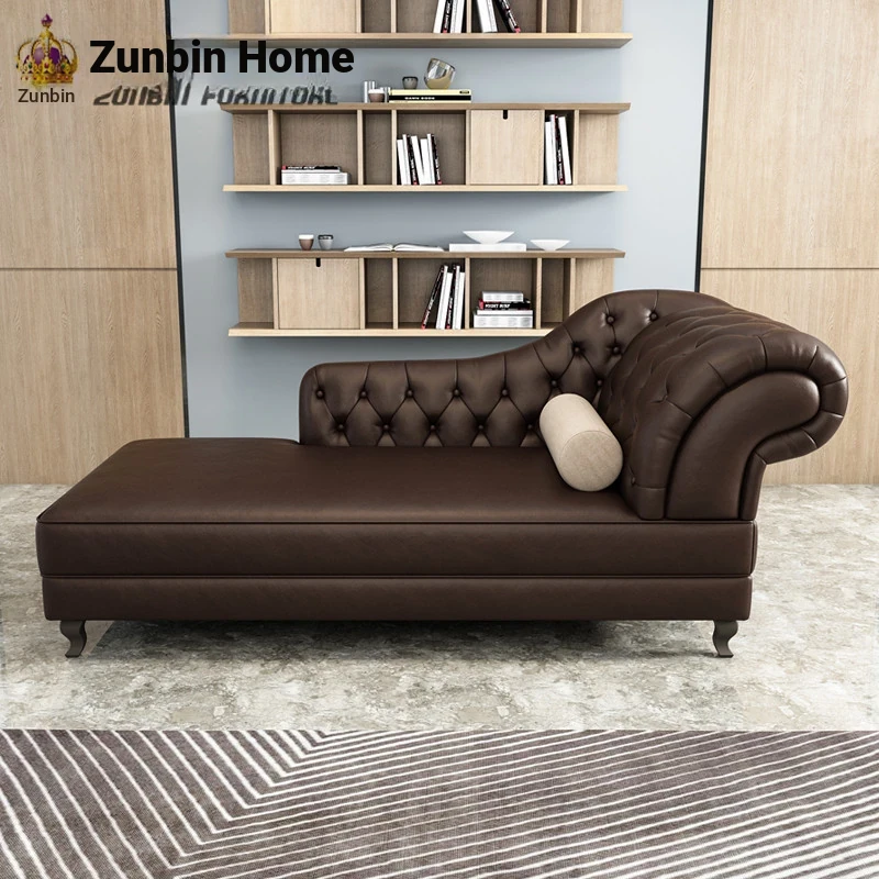 European Style Genuine Leather Chaise Lounge - Stylish Single Recliner Sofa Bed for Small Spaces, Perfect for Bedrooms and Lazy Days, American Style Daybed
