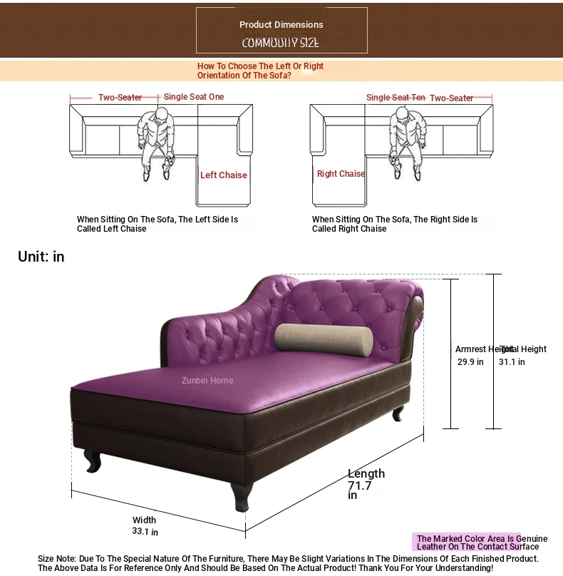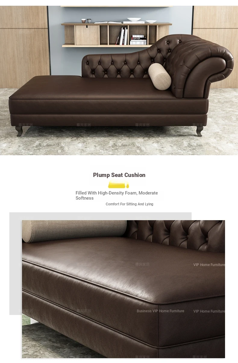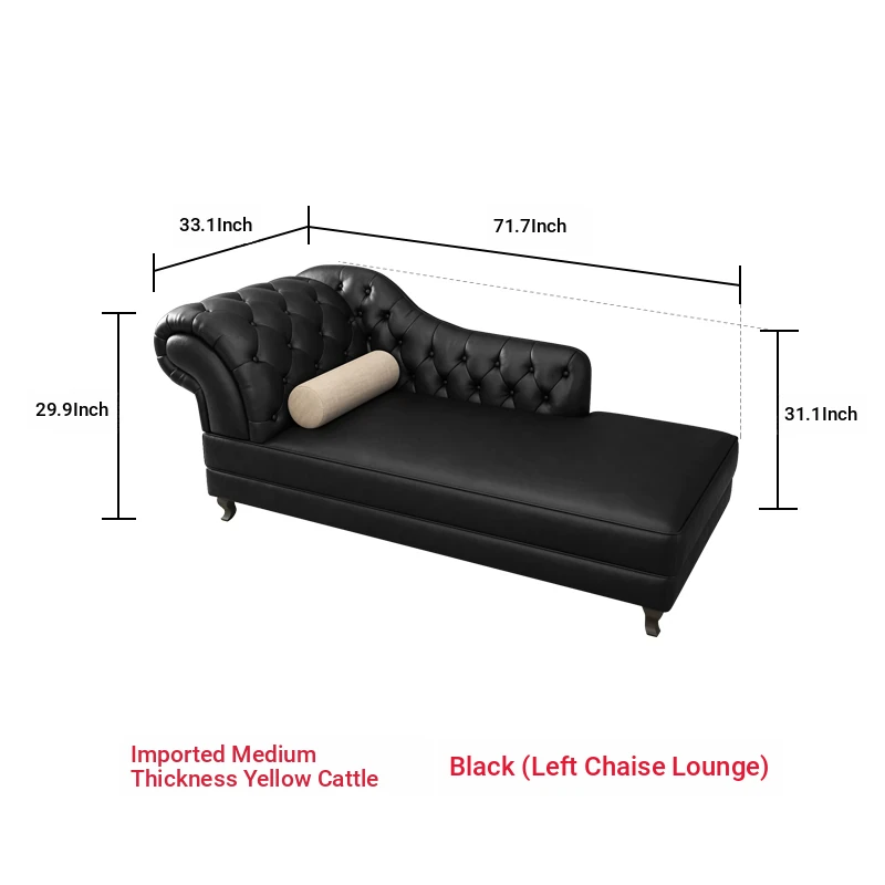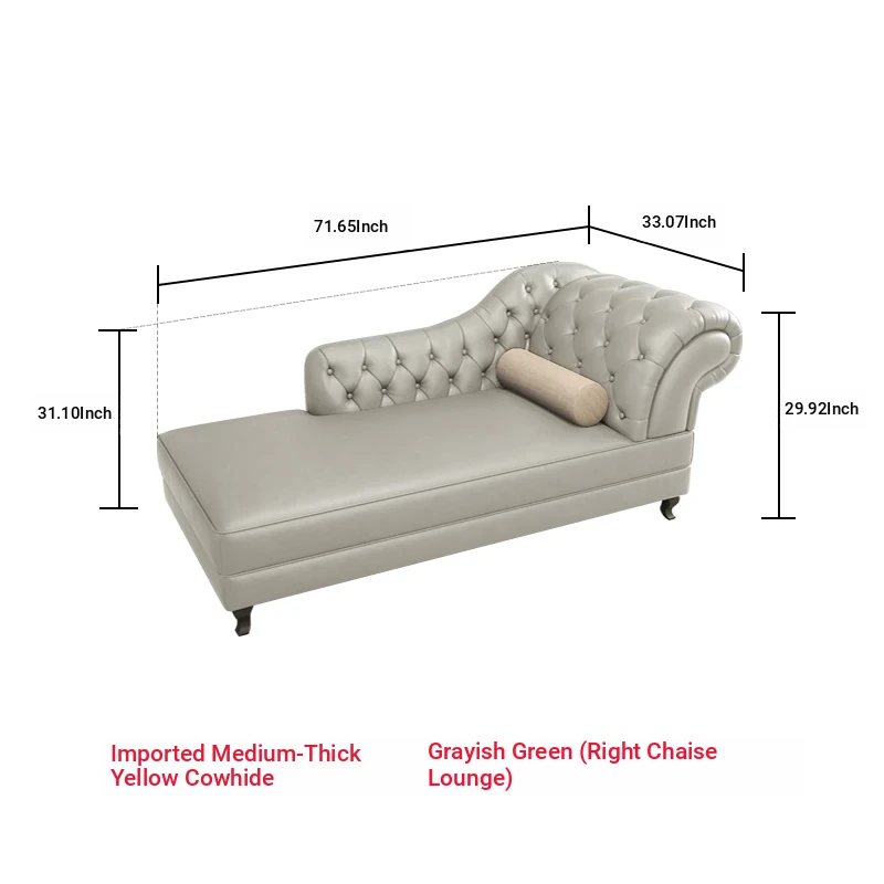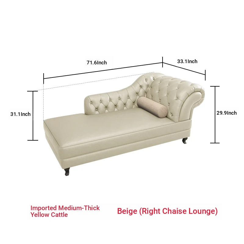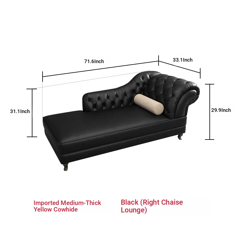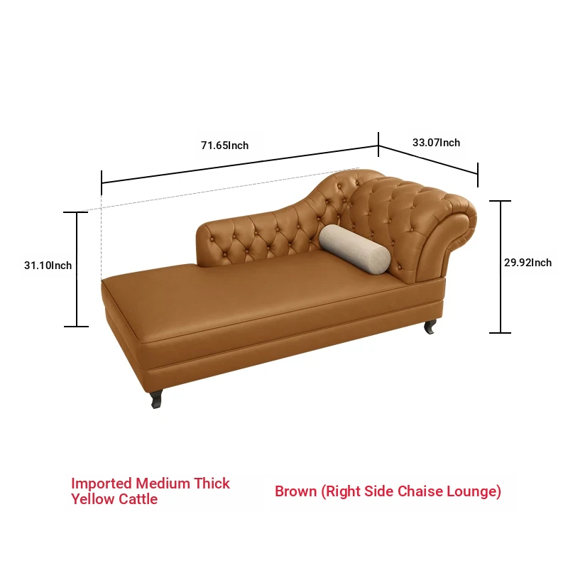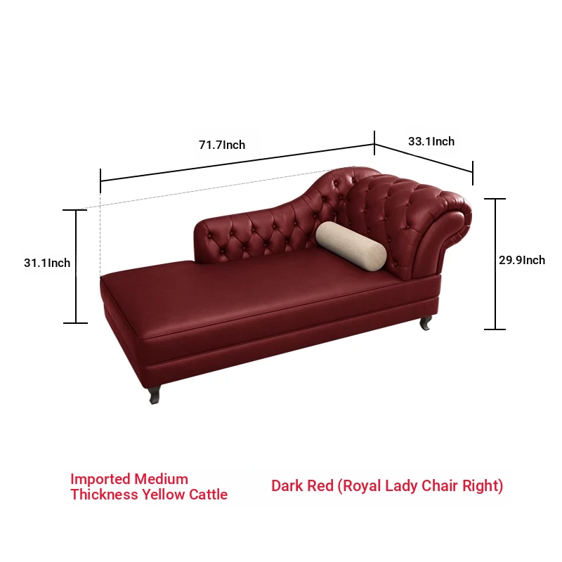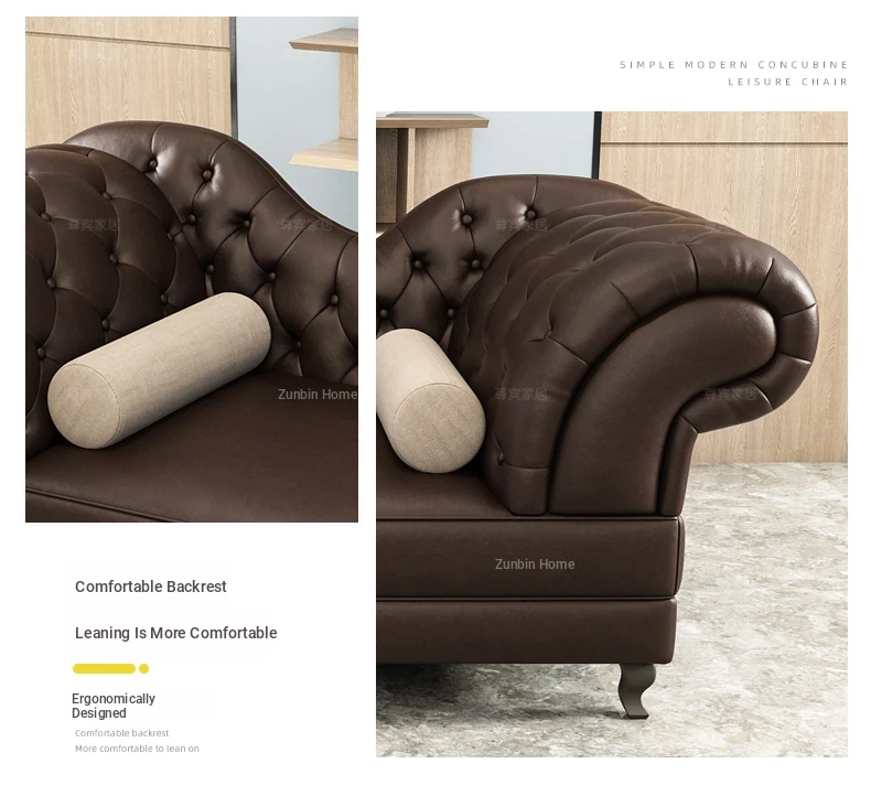 European Style Genuine Leather Chaise Lounge - Stylish Single Recliner Sofa Bed for Small Spaces, Perfect for Bedrooms and Lazy Days, American Style Daybed