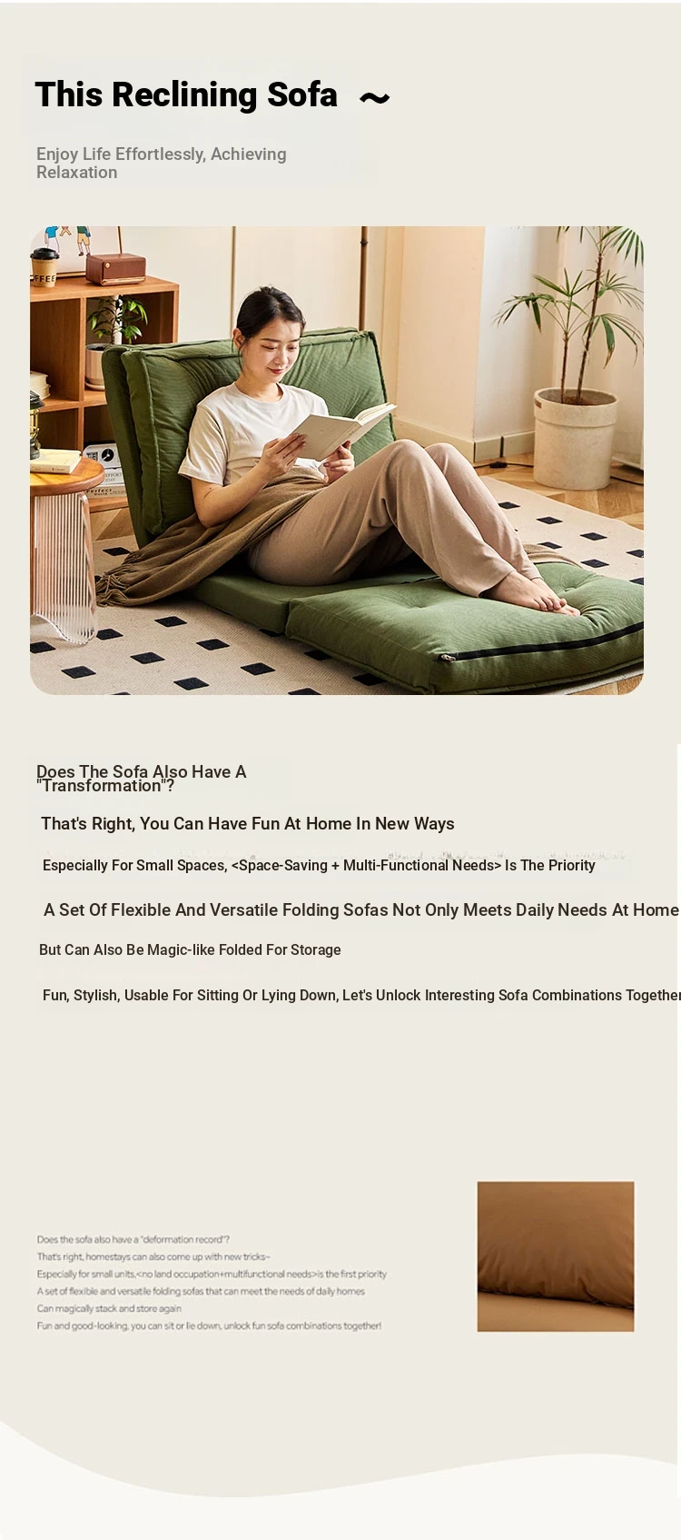 Foldable Lazy Sofa Bed - Versatile Tatami Couch for Single Use, Reclining Backrest Chair for Balcony and Bedroom, Perfect for Relaxation in Small Spaces