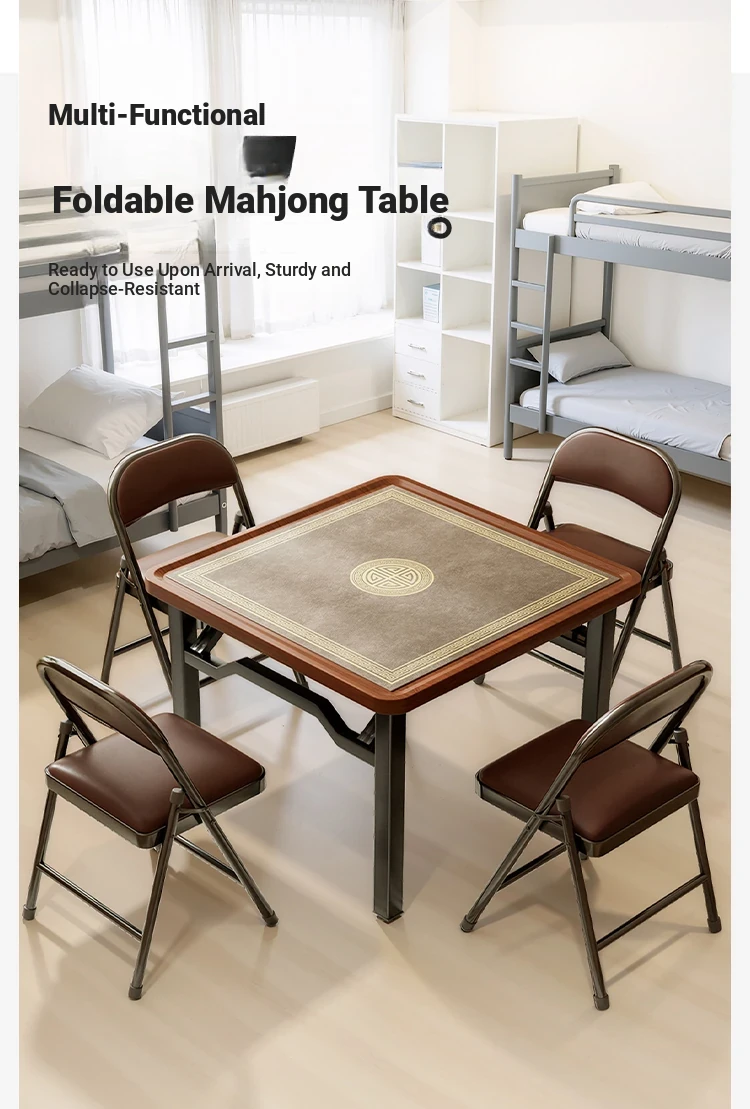 Foldable Mahjong Table for Dormitory - Easy Setup, Compact Design for Four Players, Perfect for Card Games and Dou Dizhu. Ideal for Fun Gatherings!