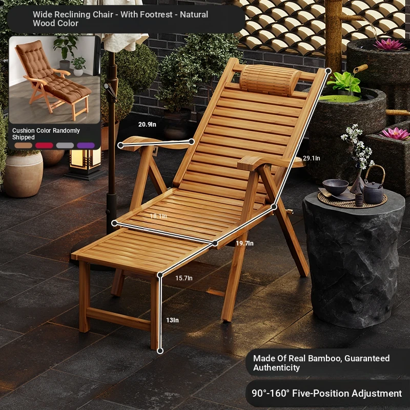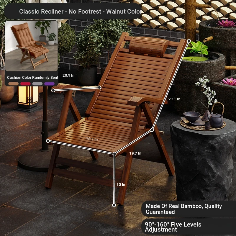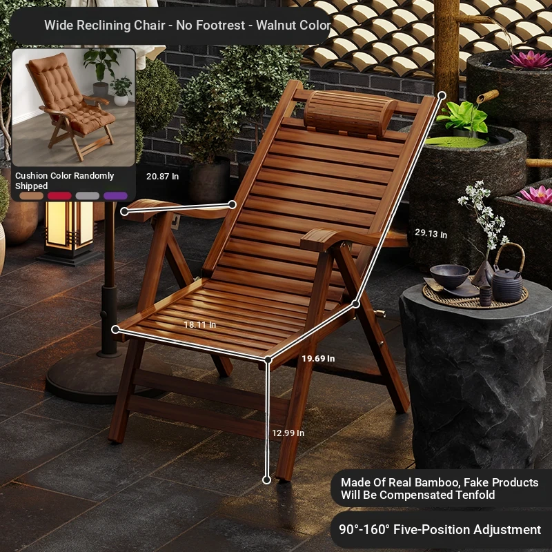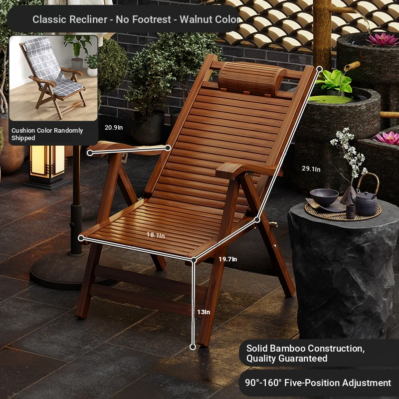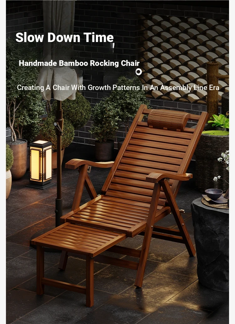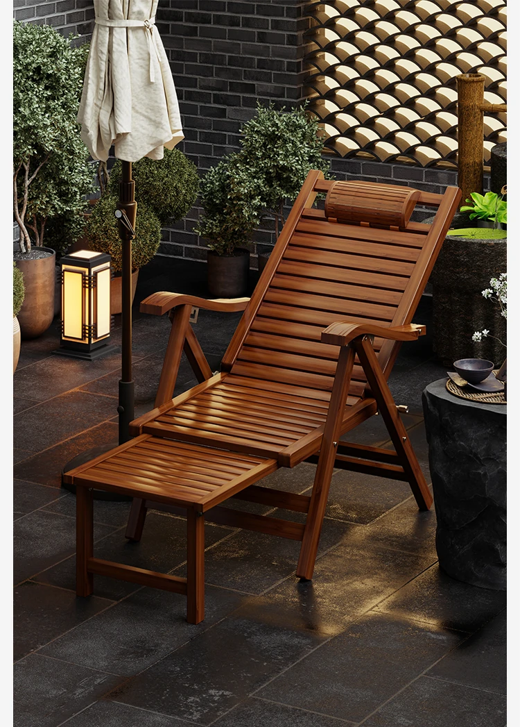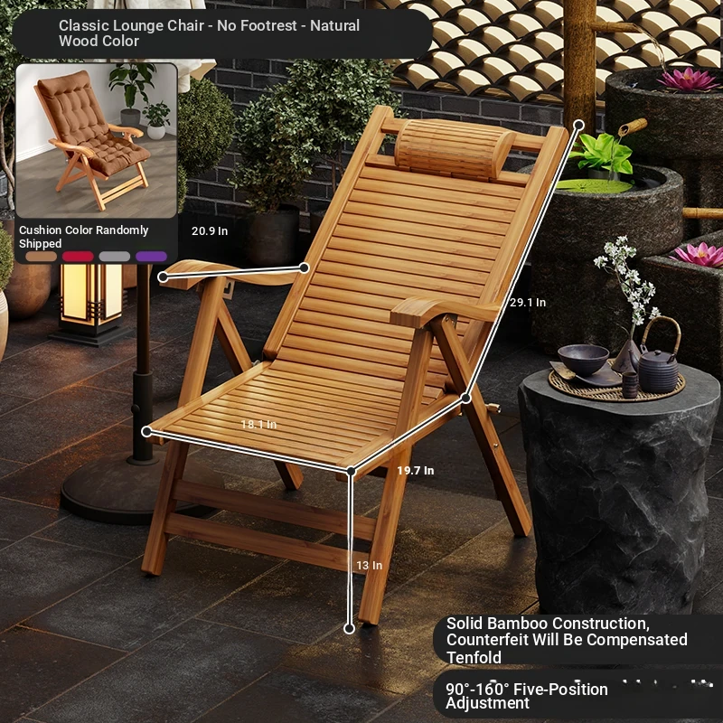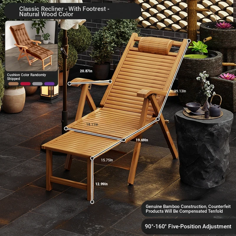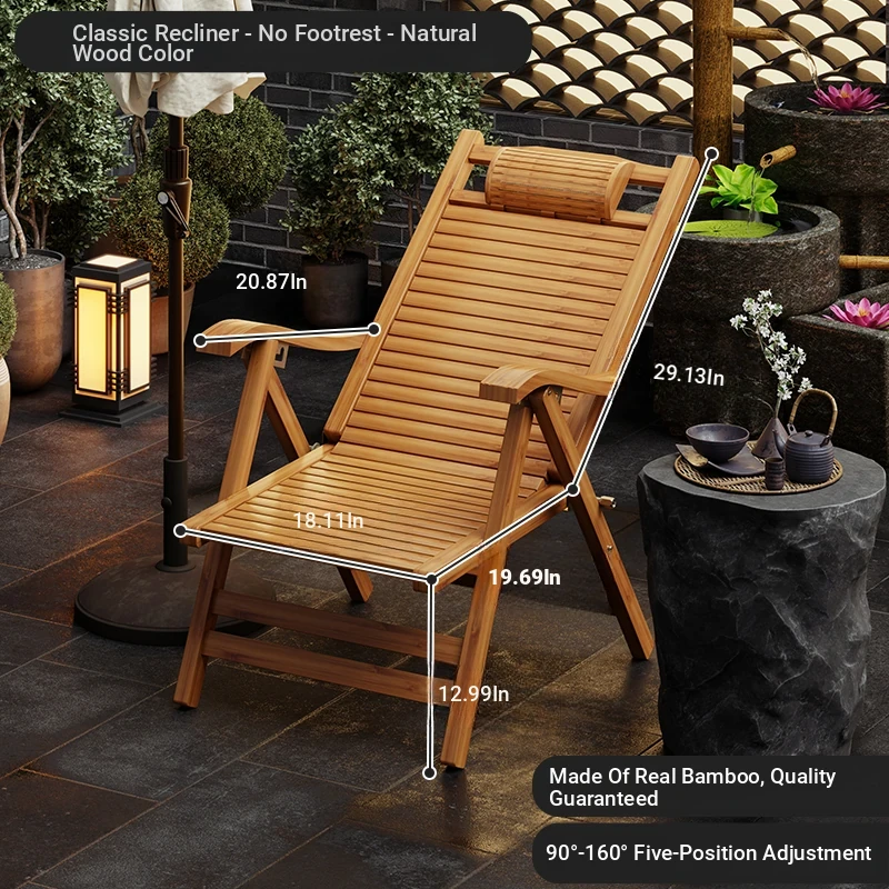 Foldable Recliner Chair for Home Use - Perfect for Relaxing and Napping on the Balcony, Ideal for Seniors. Versatile Design for Sitting and Sleeping, Comfortable Bamboo Lounge Chair for Leisure.