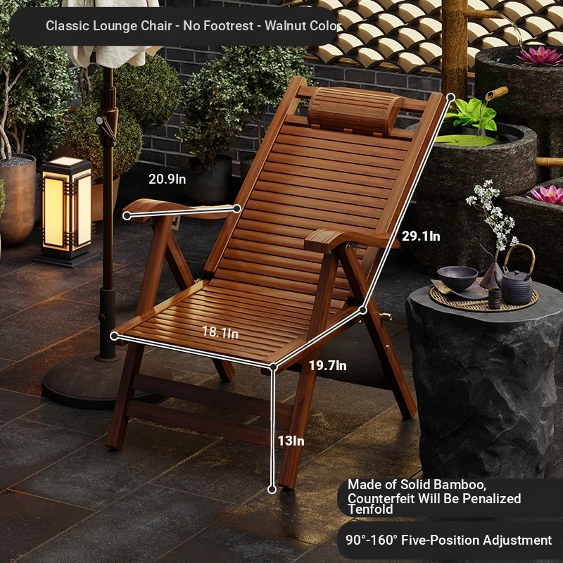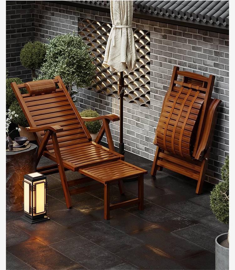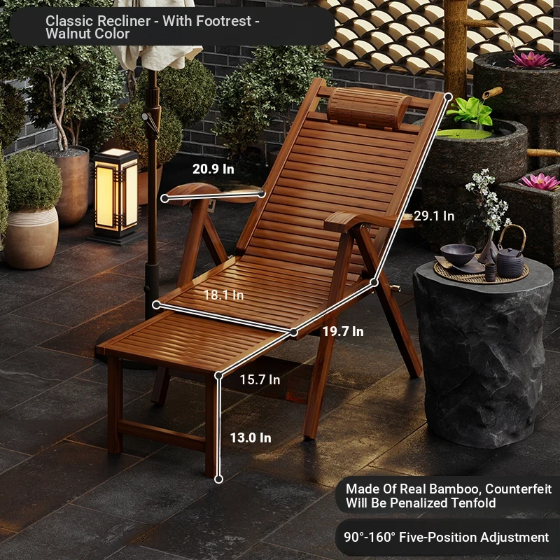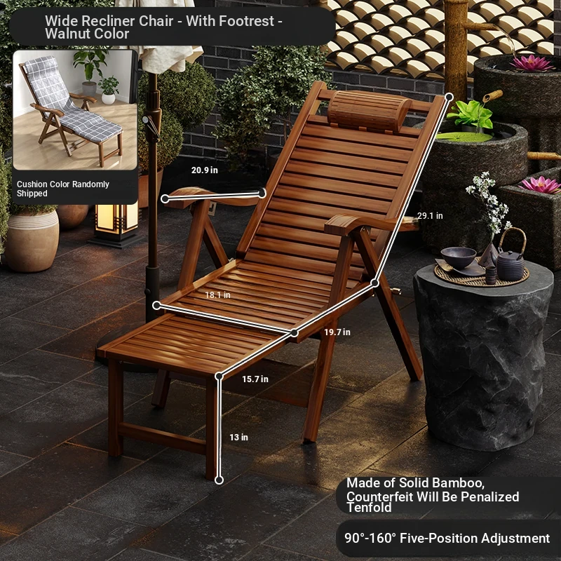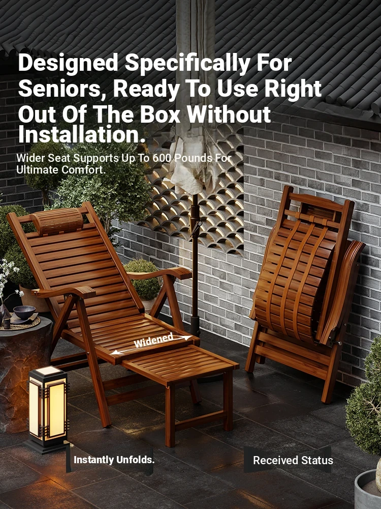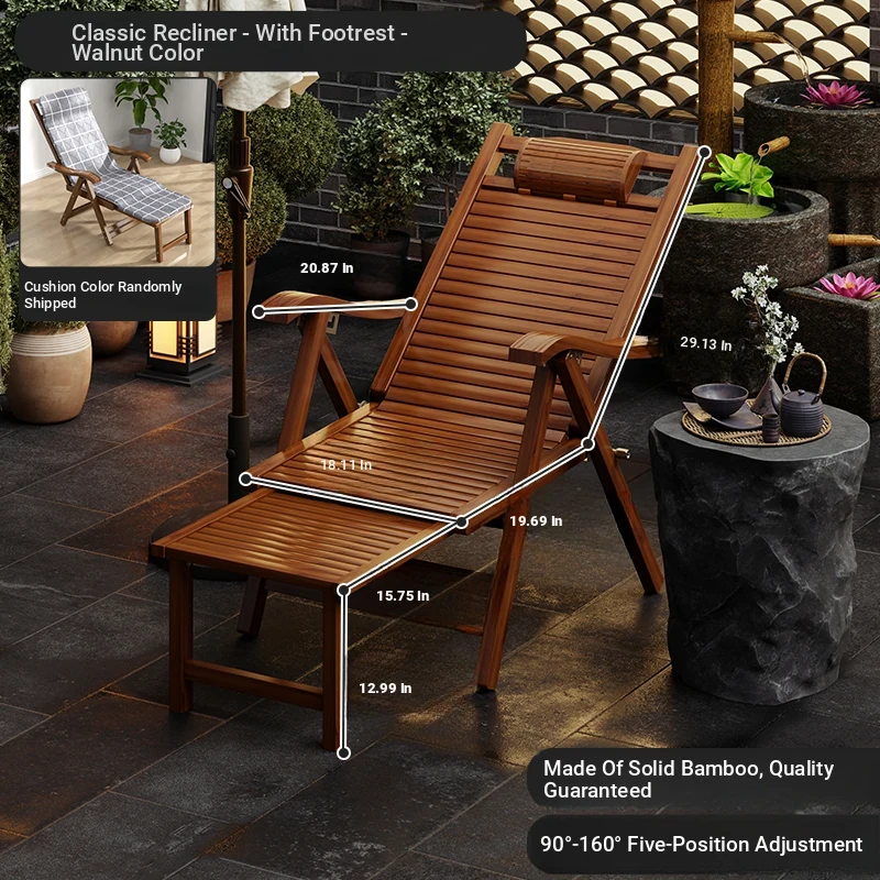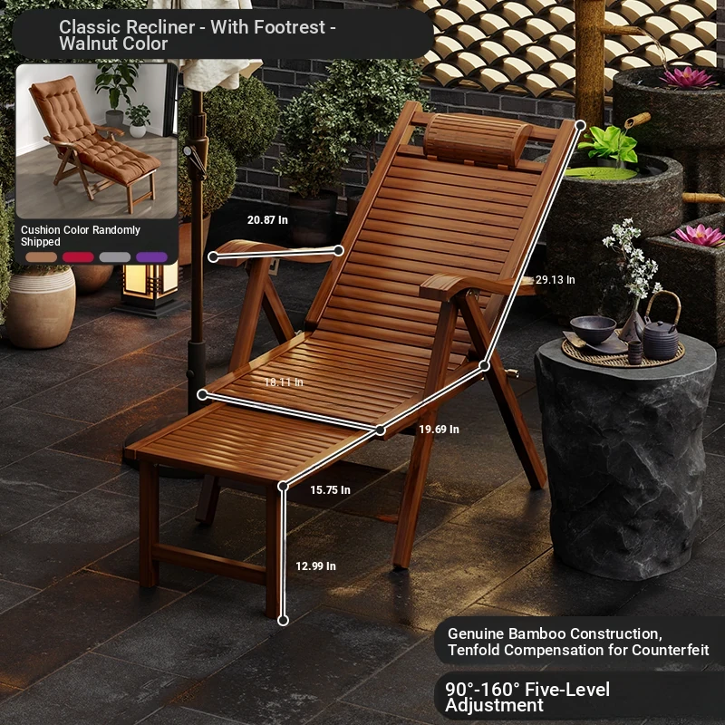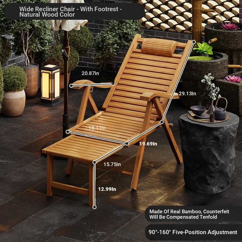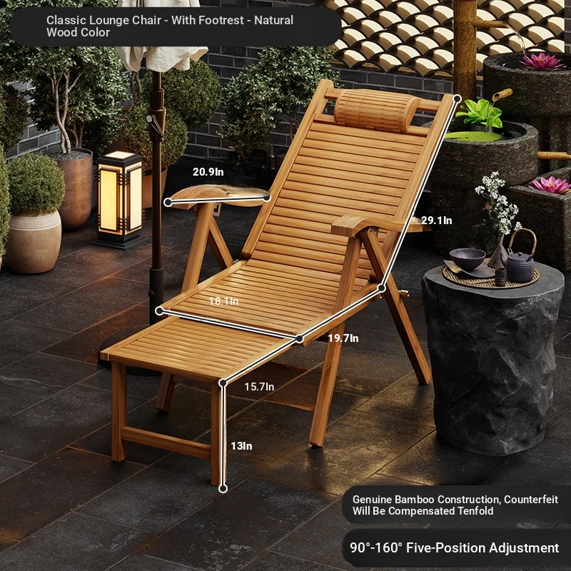 Foldable Recliner Chair for Home Use - Perfect for Relaxing and Napping on the Balcony, Ideal for Seniors. Versatile Design for Sitting and Sleeping, Comfortable Bamboo Lounge Chair for Leisure.