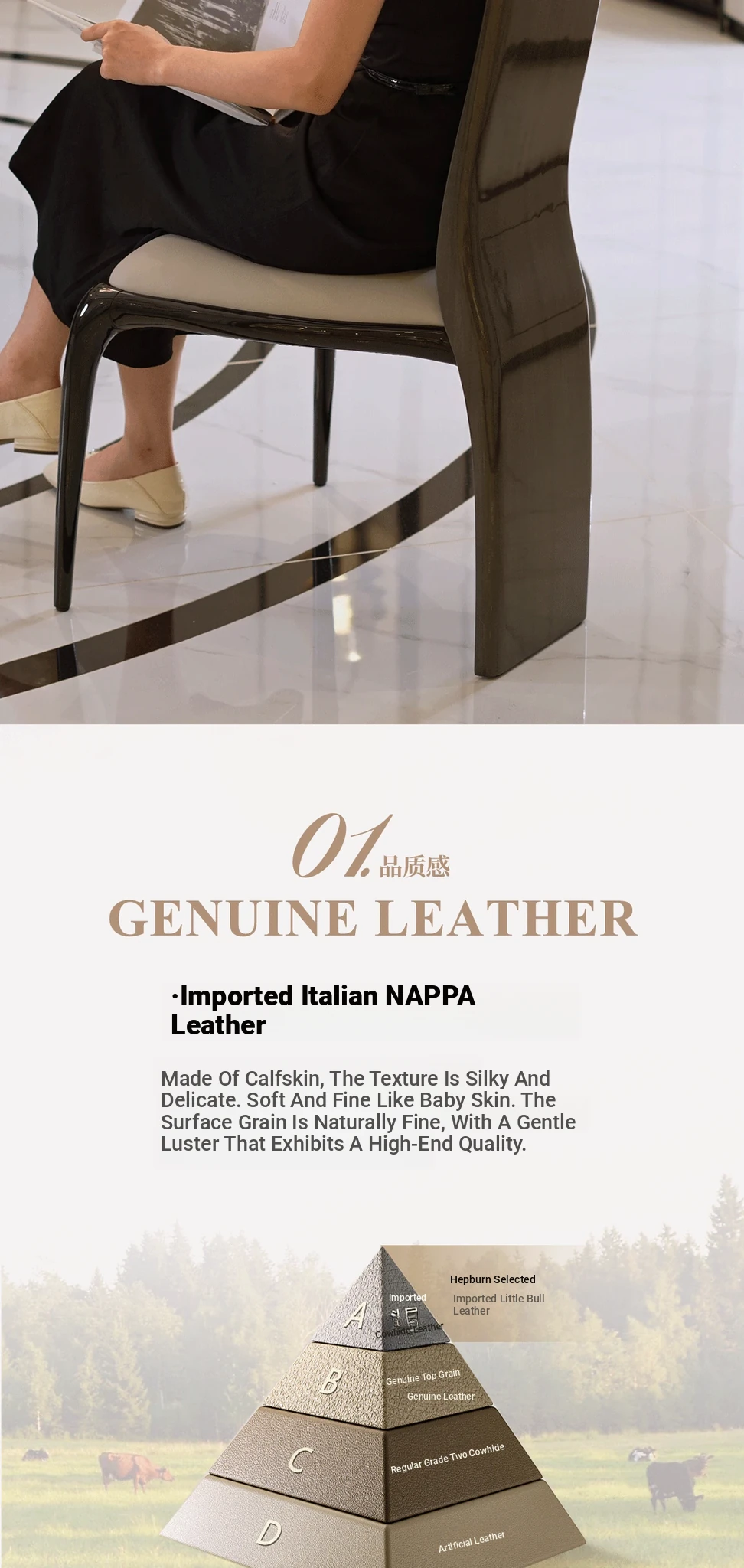 HEPBURN Modern French Chic Luxury Genuine Leather Dining Chair - Original Design with Timeless Elegance
