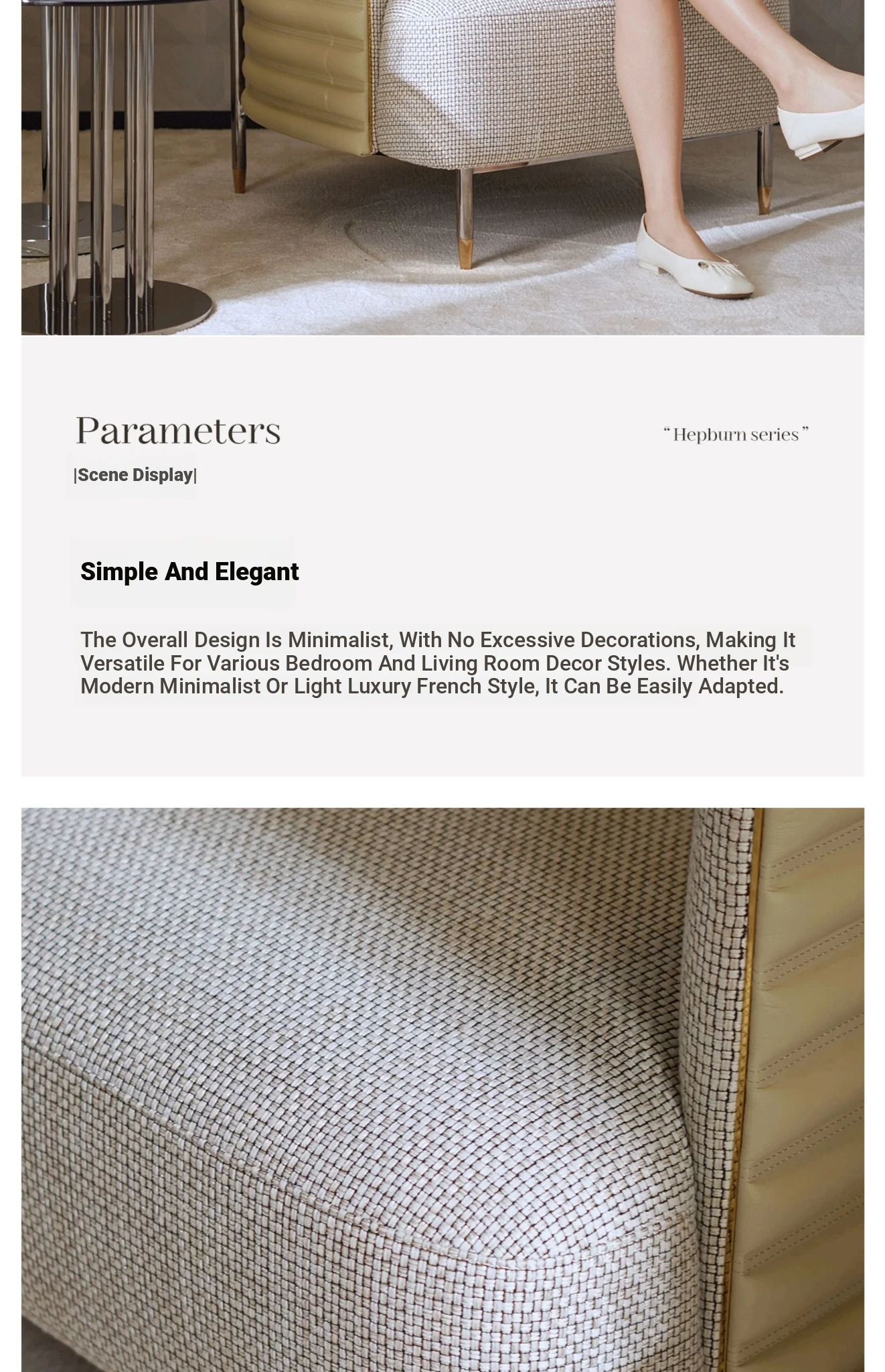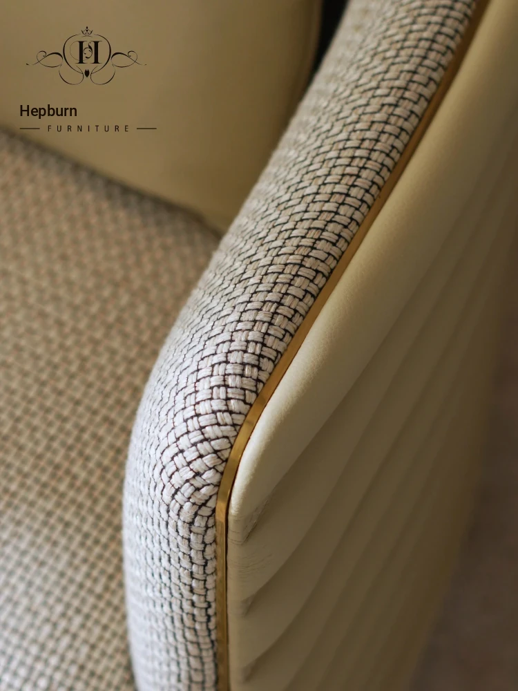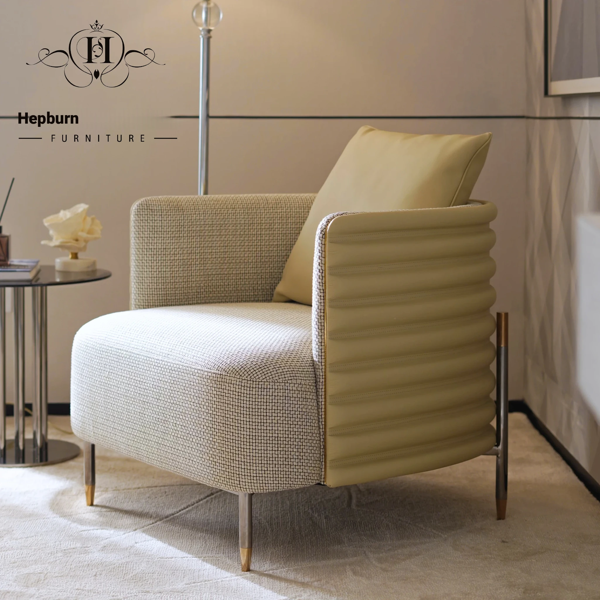 HEPBURN Modern French Chic Original Design Leather and Fabric Leisure Chair - Elegant Small Sofa Chair for Stylish Living Spaces