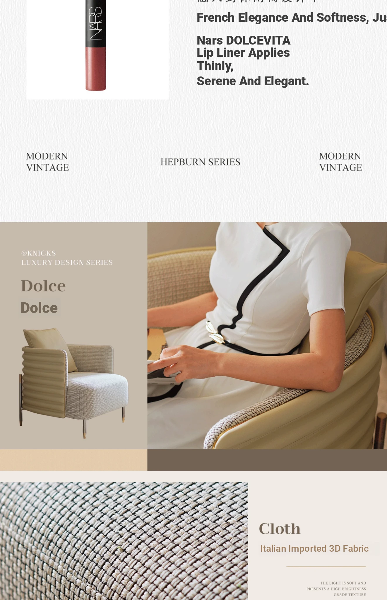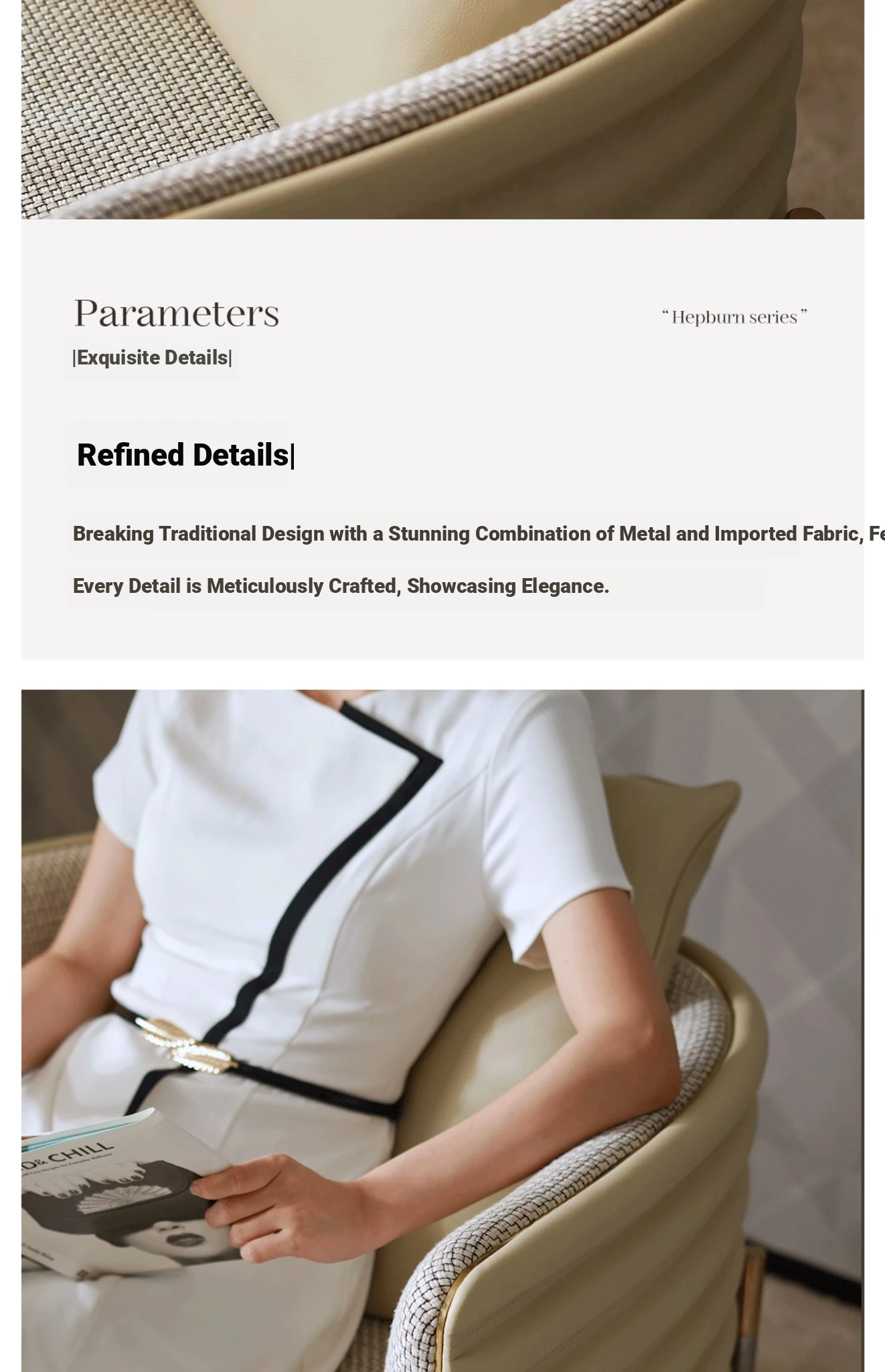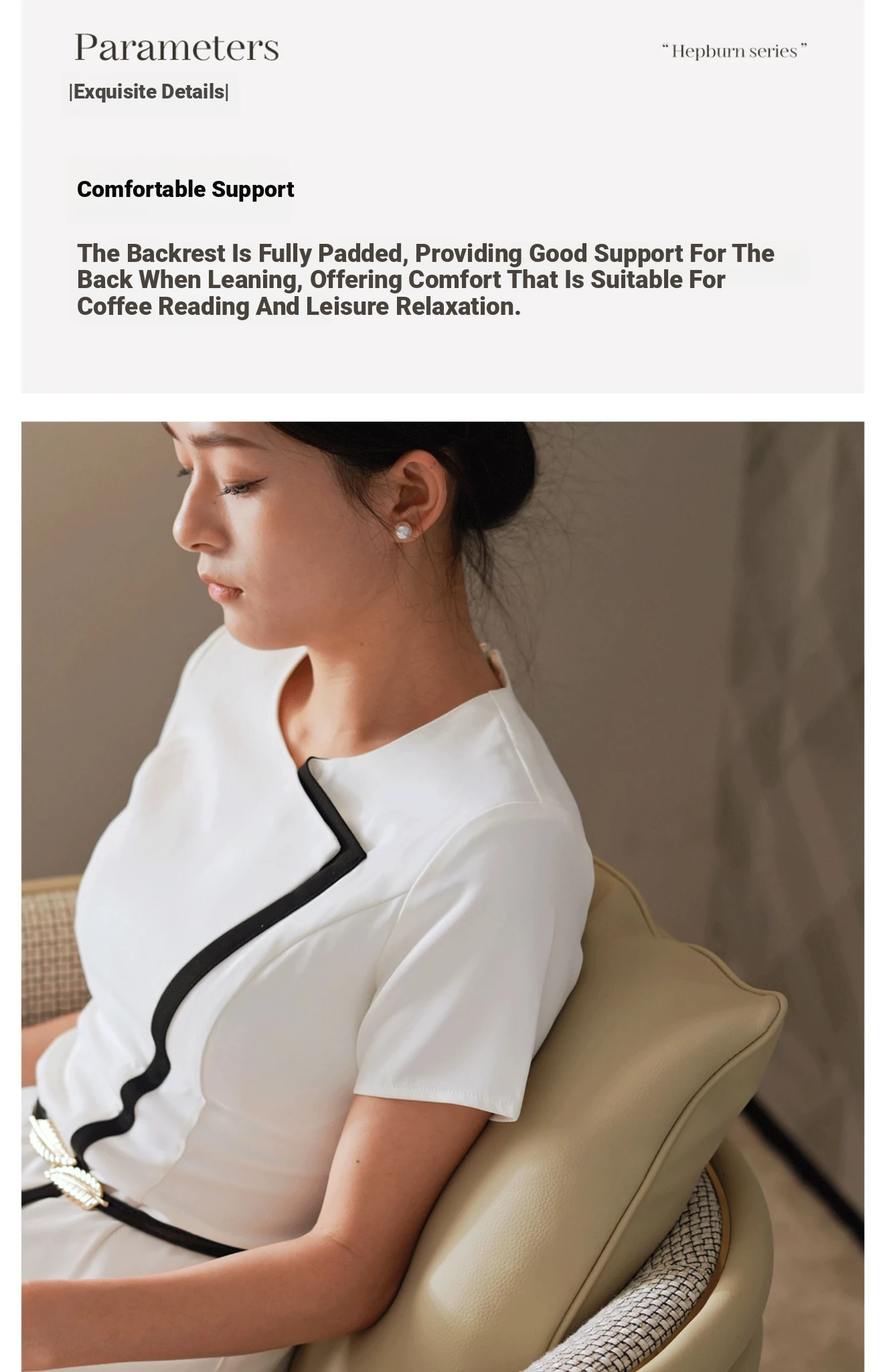 HEPBURN Modern French Chic Original Design Leather and Fabric Leisure Chair - Elegant Small Sofa Chair for Stylish Living Spaces