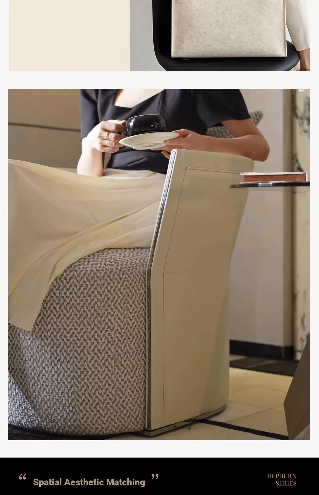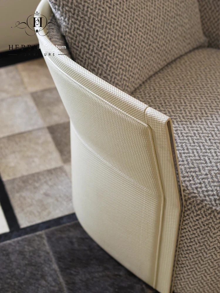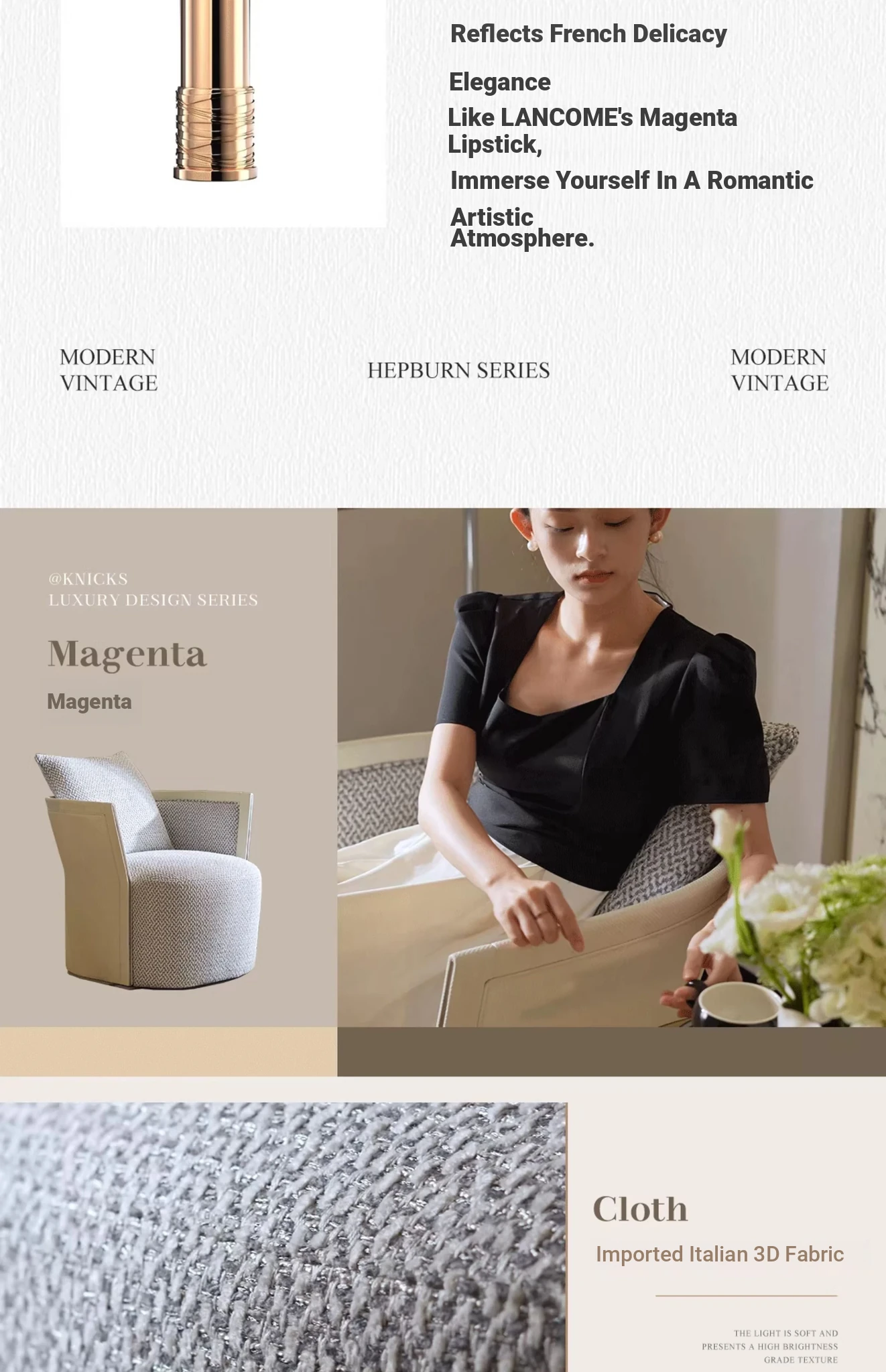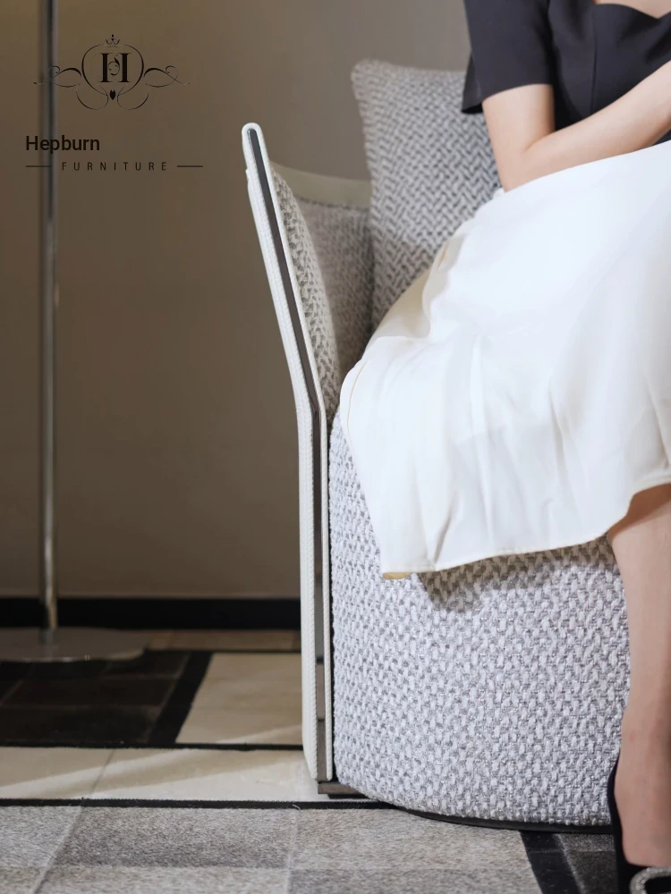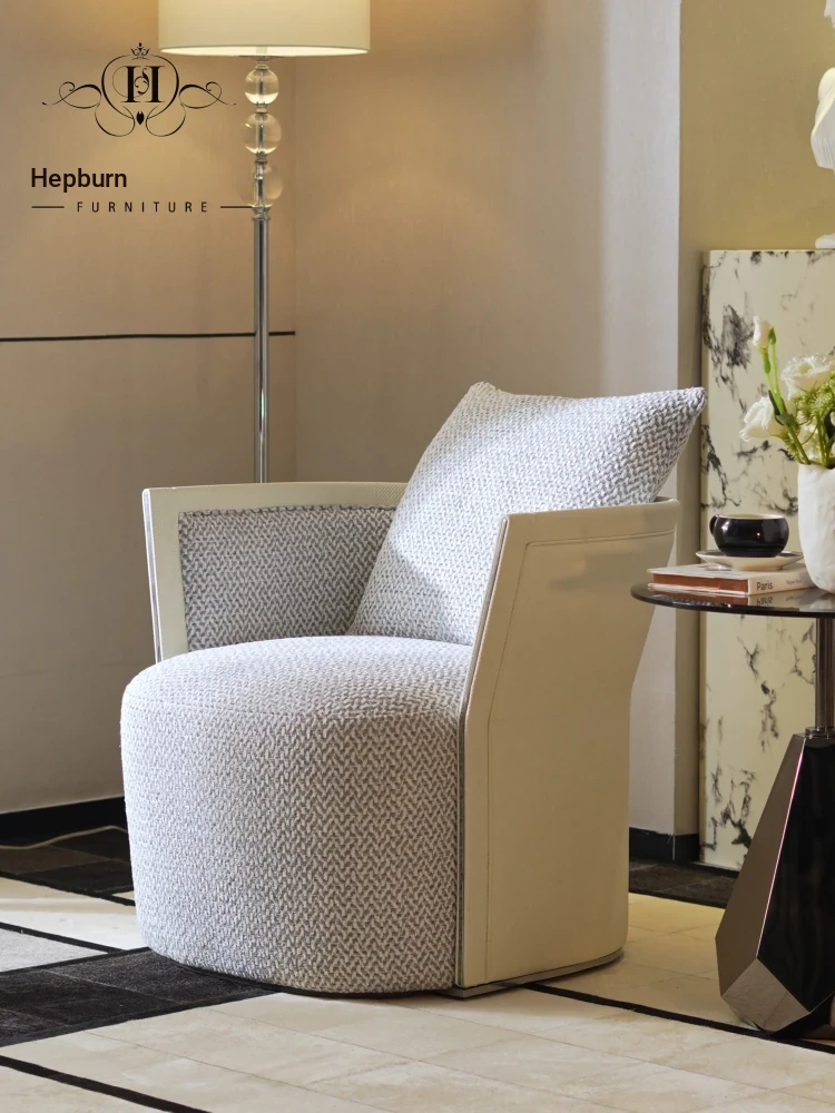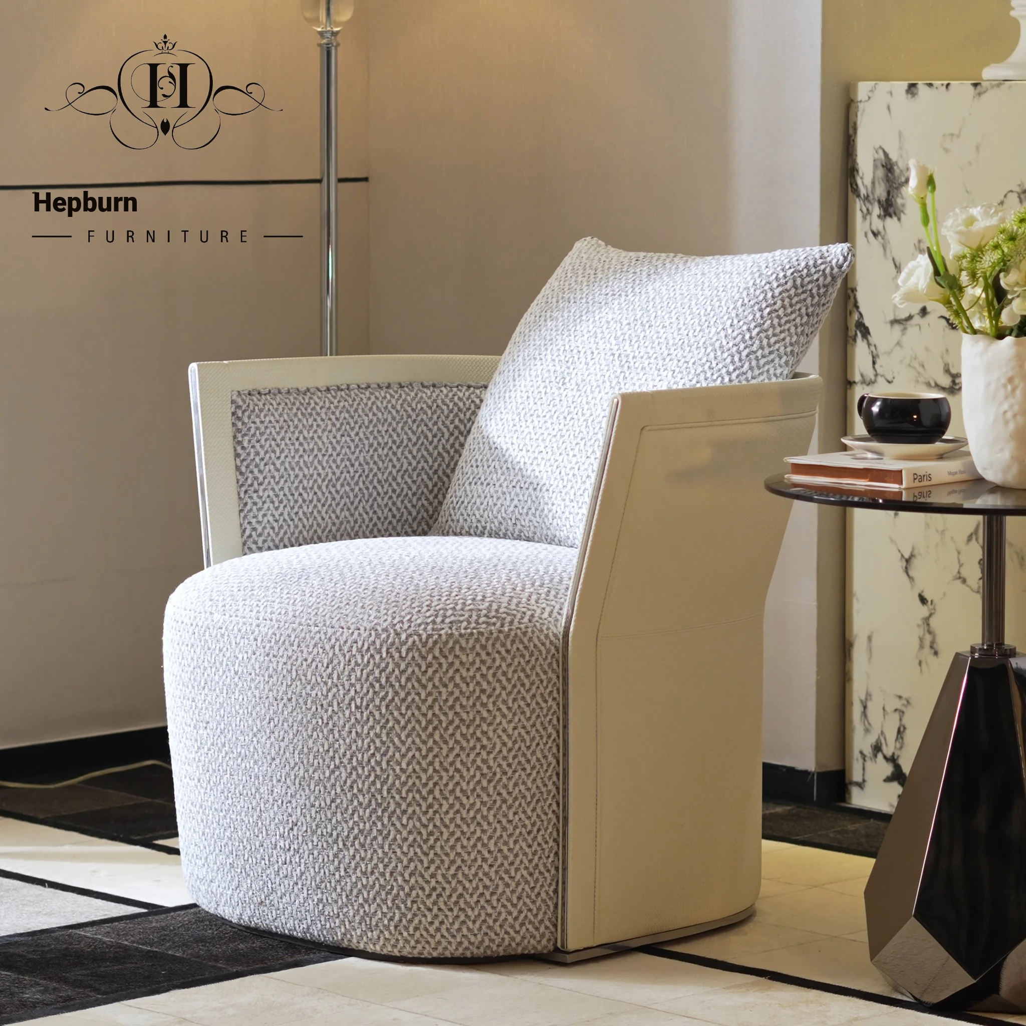 HEPBURN Modern French Chic Original Design Luxury Leather and Fabric Leisure Chair - Stylish and Comfortable Accent Sofa Chair