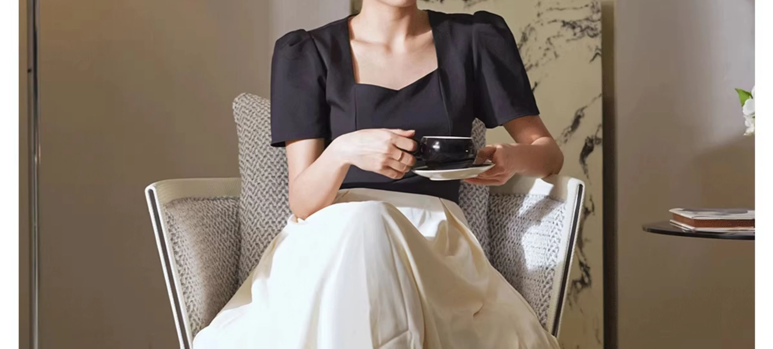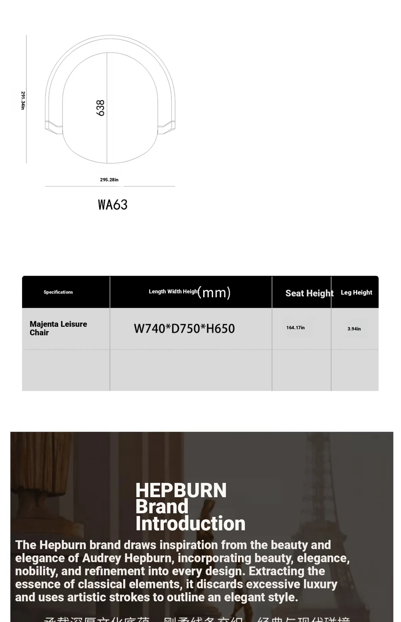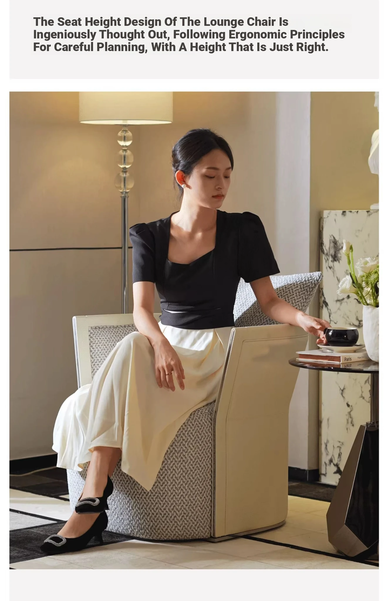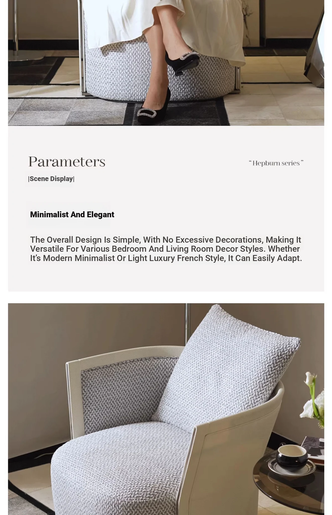HEPBURN Modern French Chic Original Design Luxury Leather and Fabric Leisure Chair - Stylish and Comfortable Accent Sofa Chair