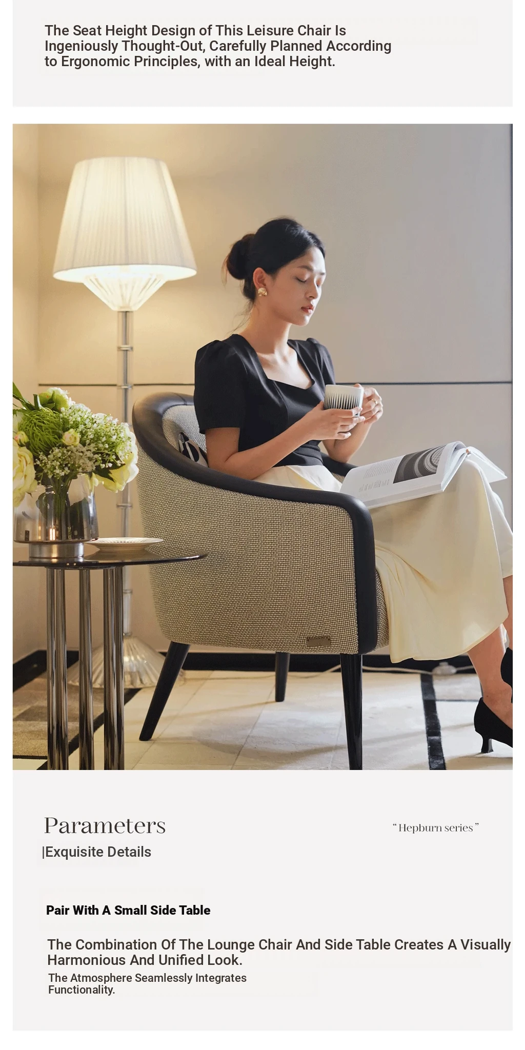 HEPBURN Modern French Luxury Original Design Chic Boucle Fabric Leisure Chair - Elevate your space with this stylish and comfortable accent chair, perfect for adding a touch of elegance to any room.