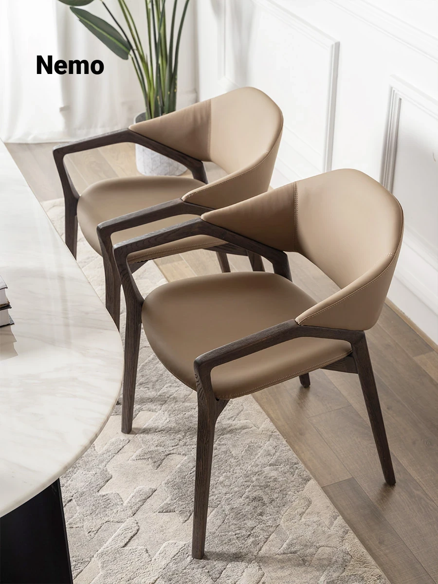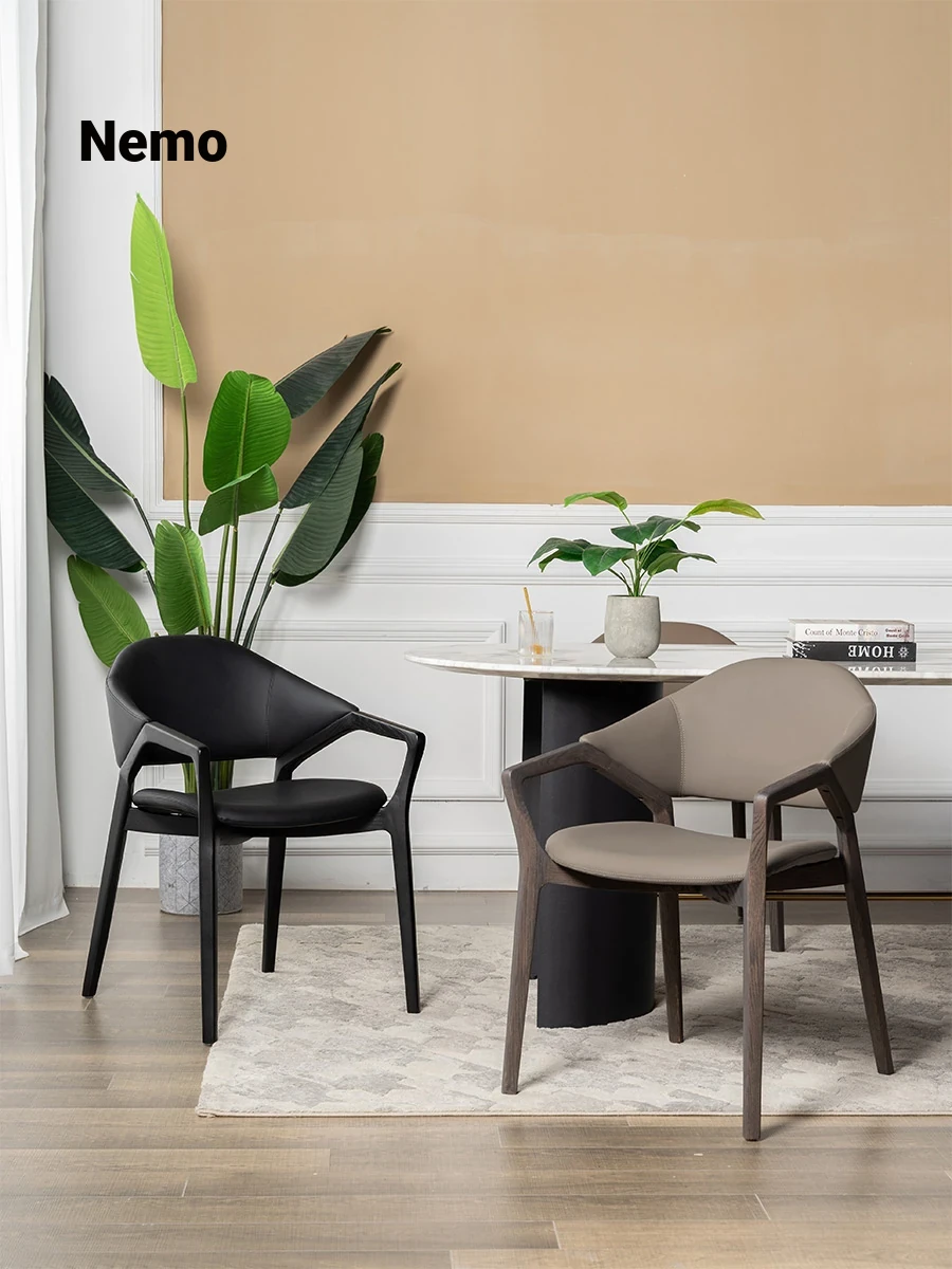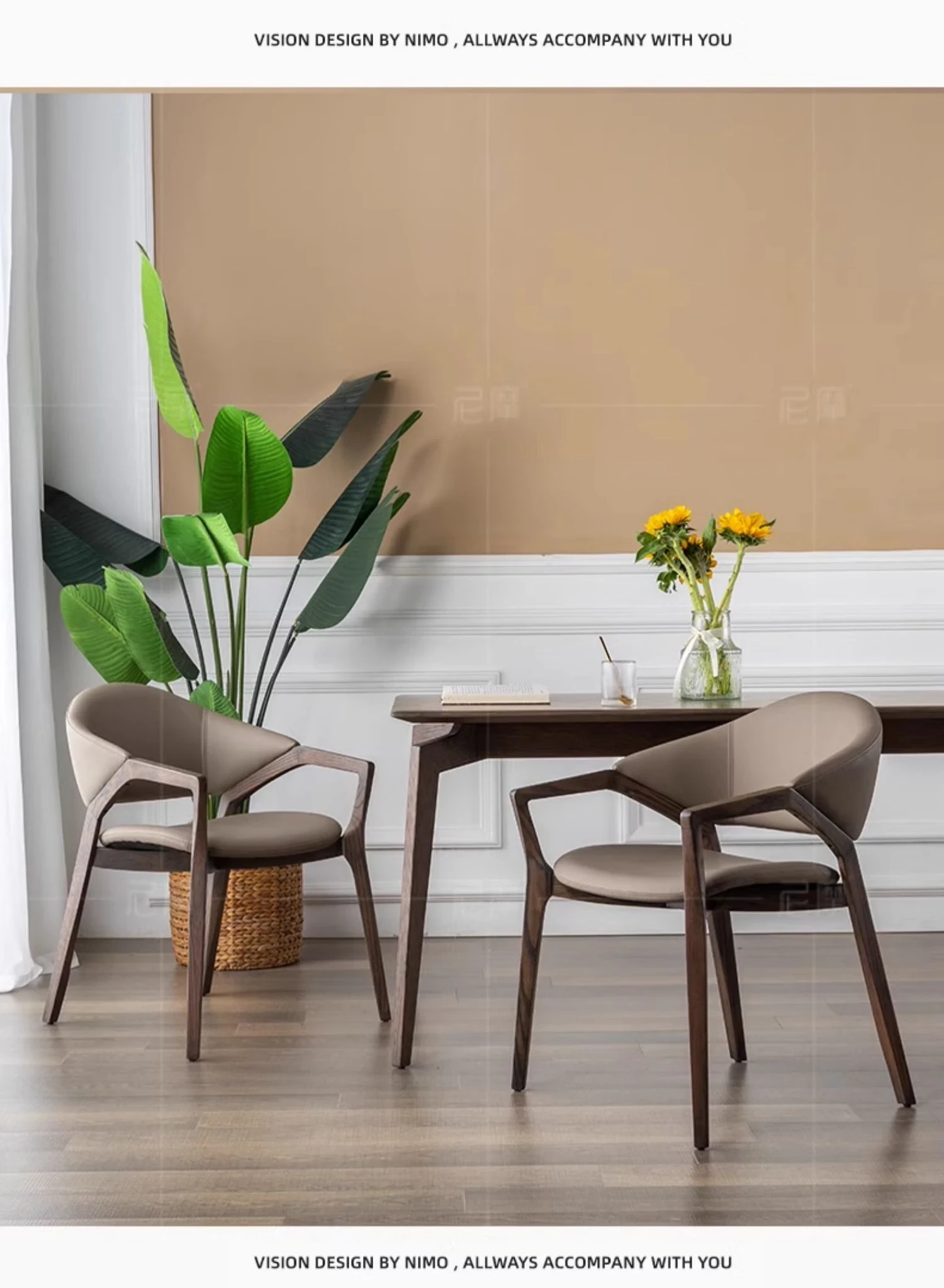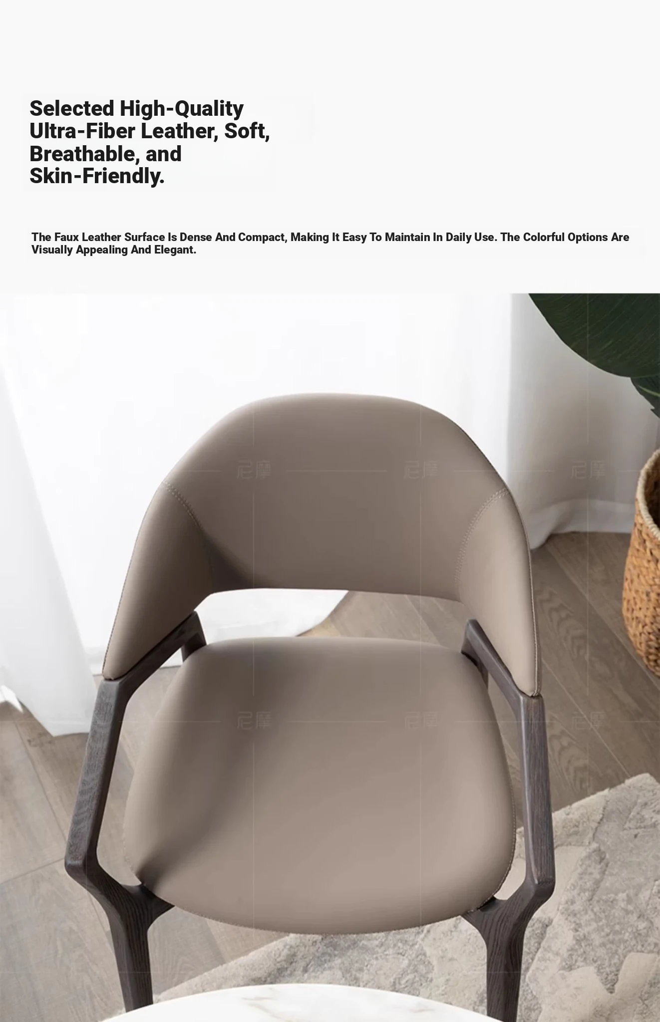 ICO Chair - Italian Genuine Leather Dining Chair, Minimalist Solid Wood Chair with Mortise and Tenon Joinery, Ash Wood Armchair, Designer Style for Modern Homes