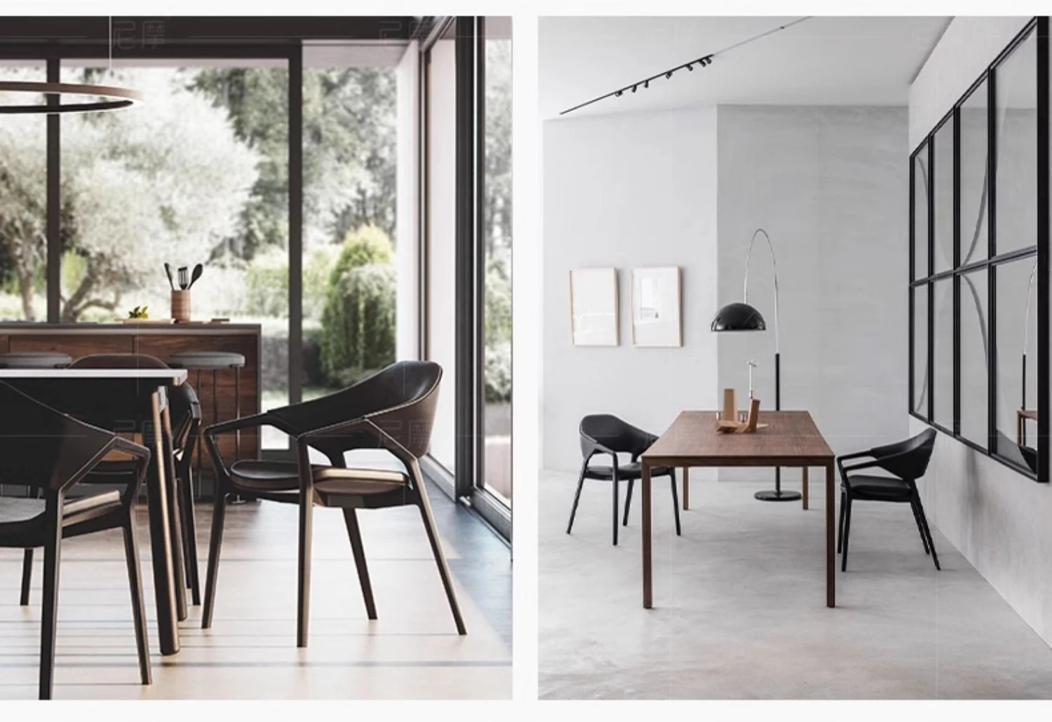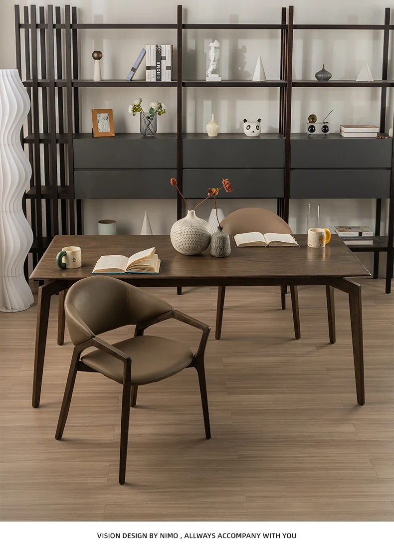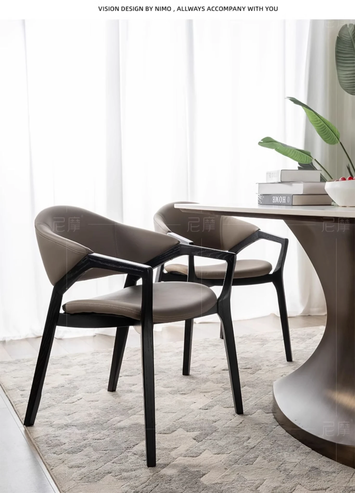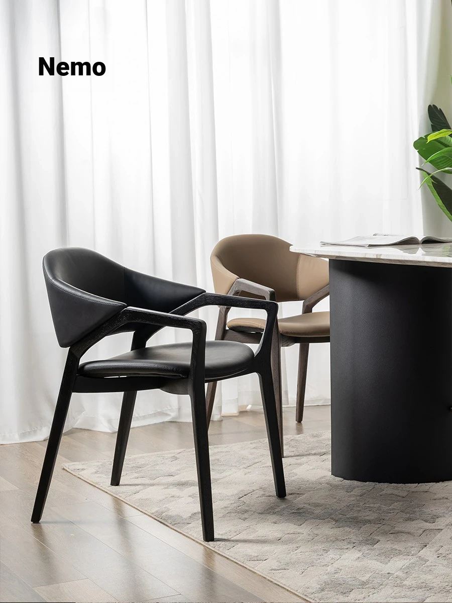 ICO Chair - Italian Genuine Leather Dining Chair, Minimalist Solid Wood Chair with Mortise and Tenon Joinery, Ash Wood Armchair, Designer Style for Modern Homes