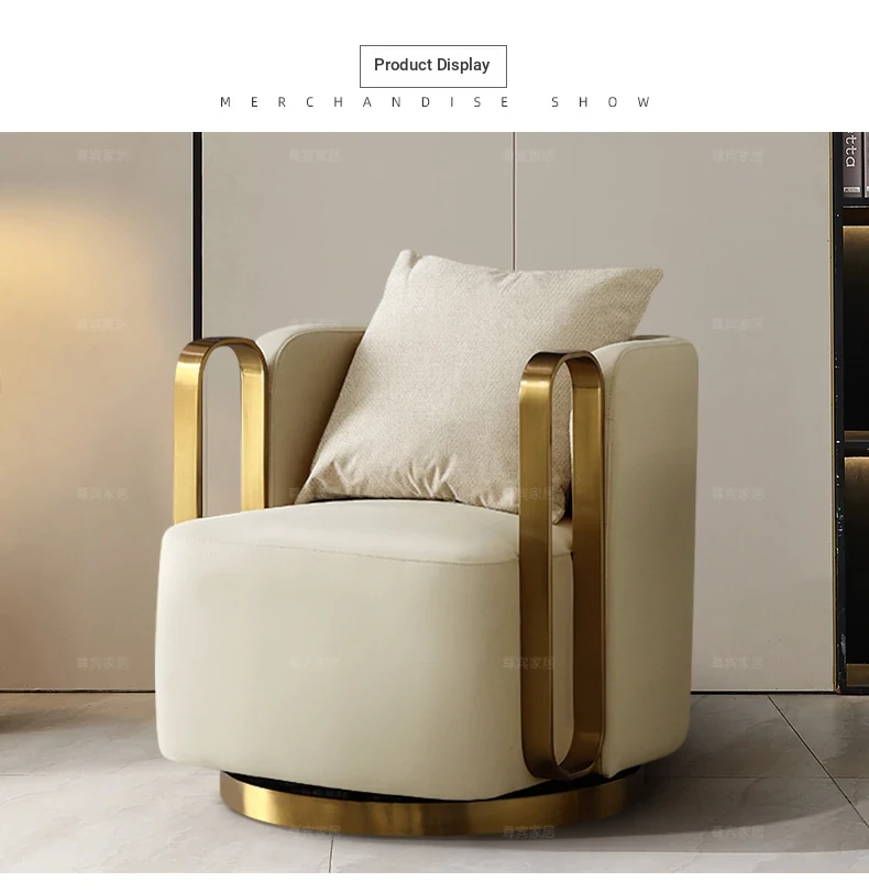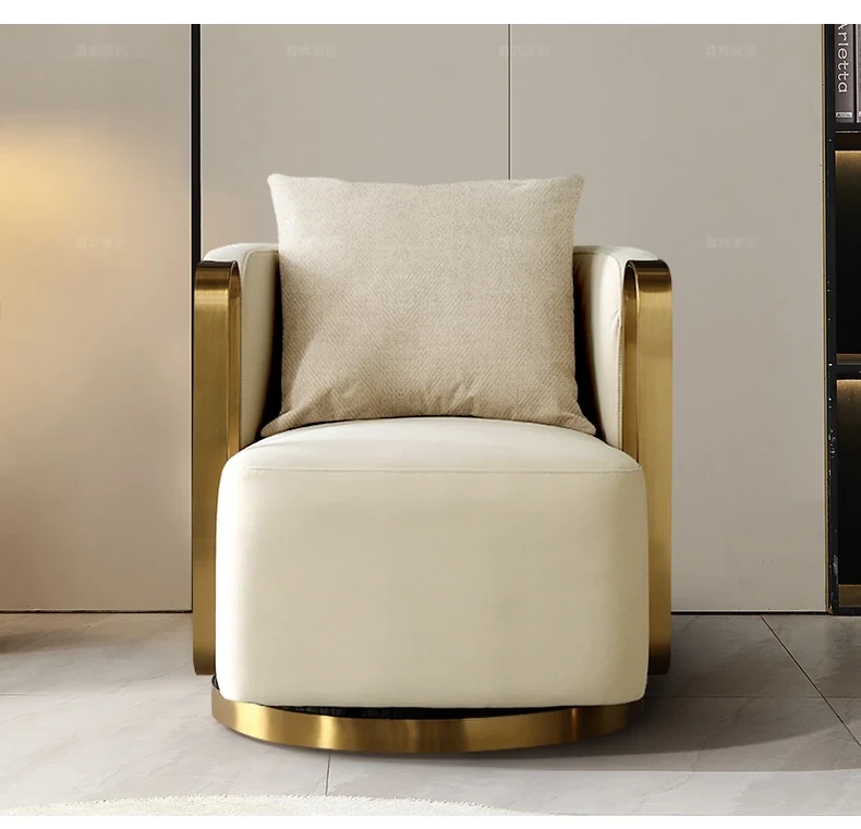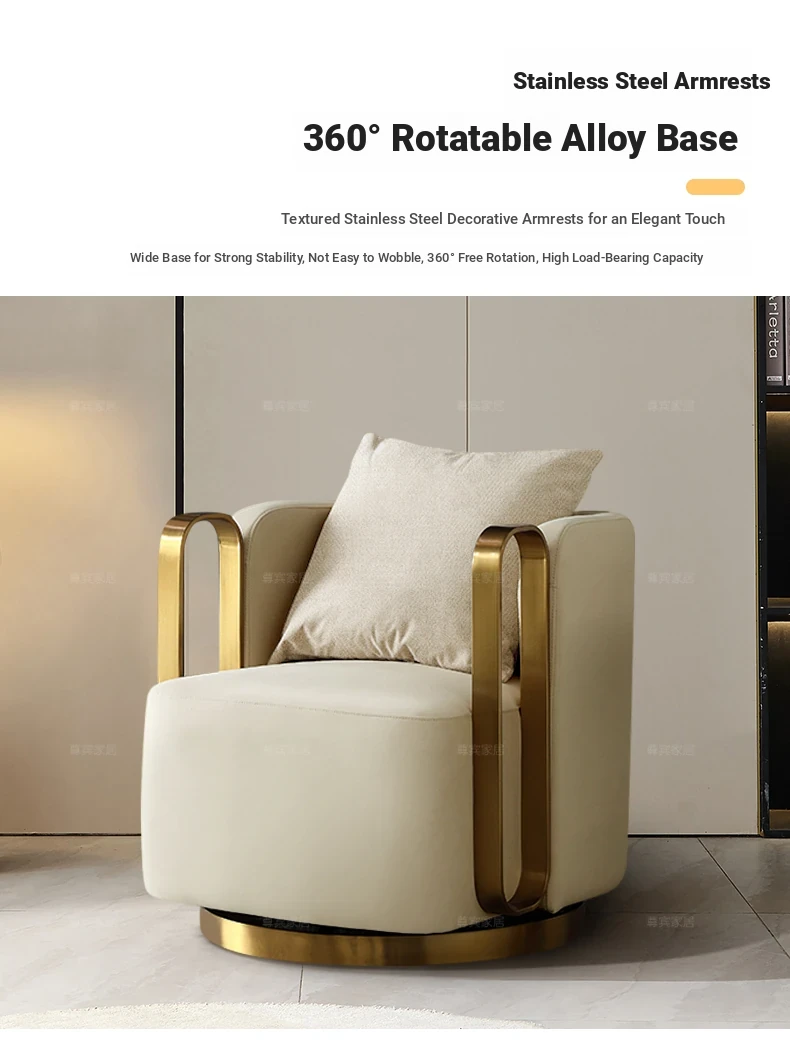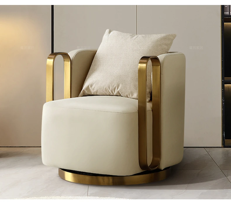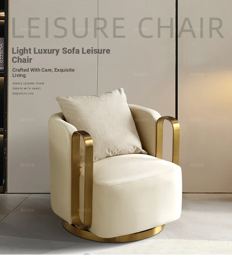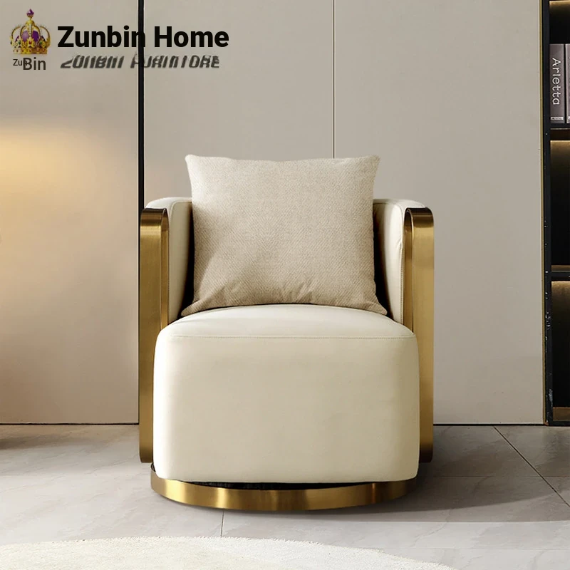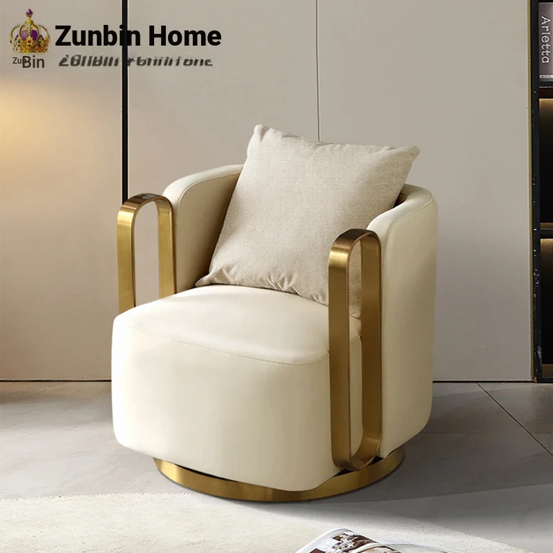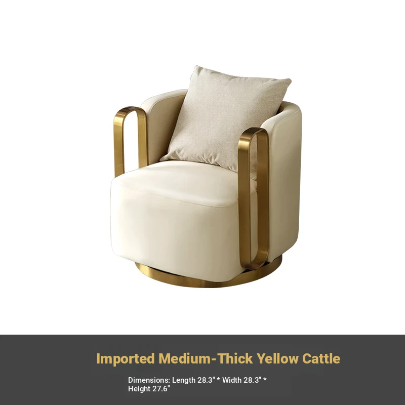 Italian Genuine Leather Swivel Lounge Chair - Stylish Single Seat for Balcony, Perfect for Relaxation or Hotel Meetings, Embracing Comfort and Elegance