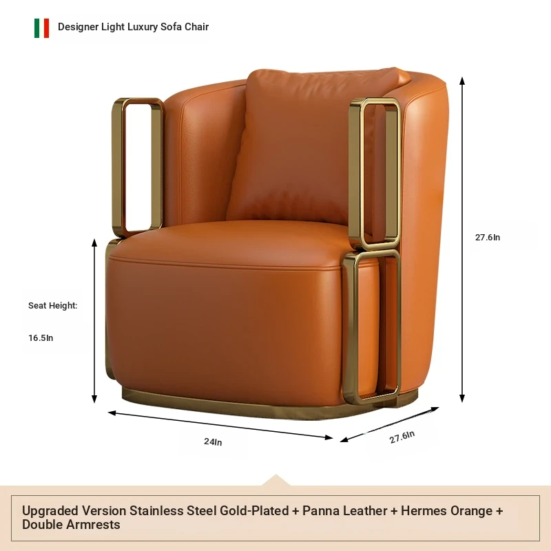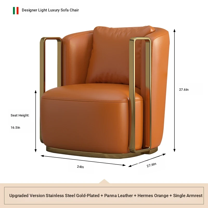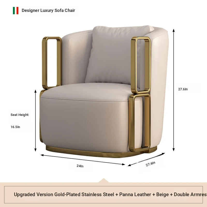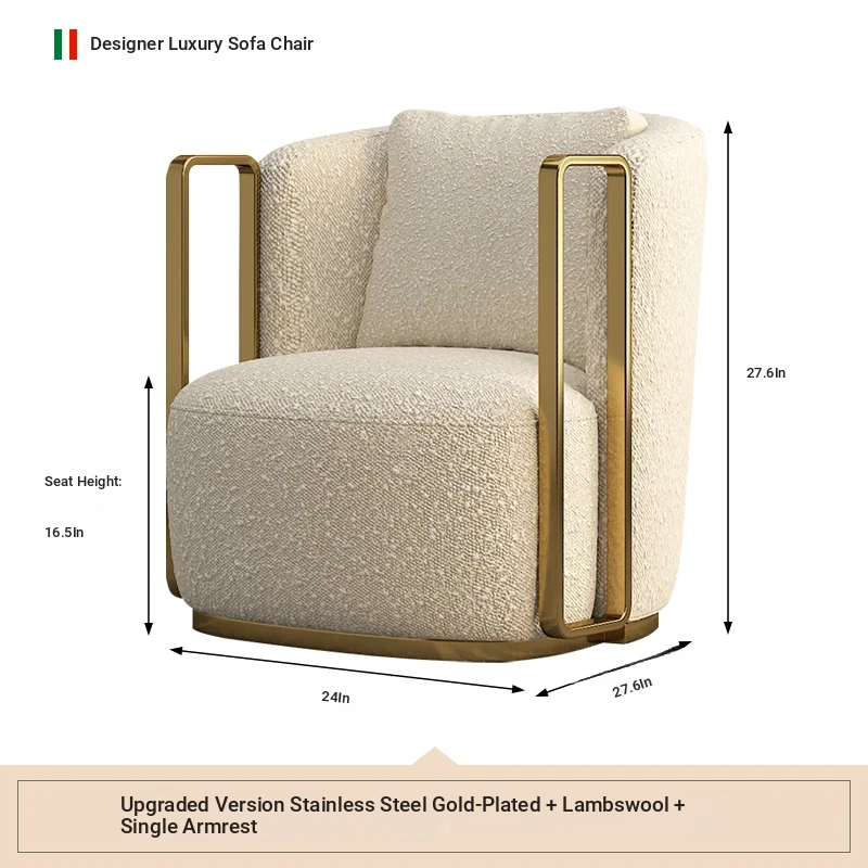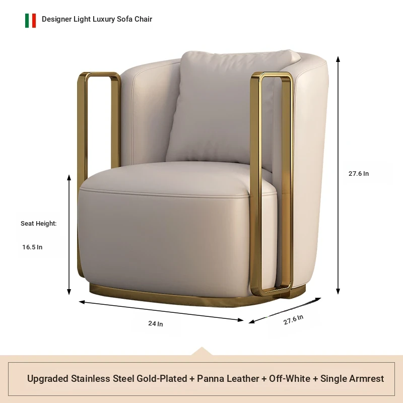 Italian Minimalist Single Sofa Chair - Stylish and Comfortable Lounge Chair for Living Room, Balcony, Hotel, and Club Meetings - Durable Stainless Steel Design