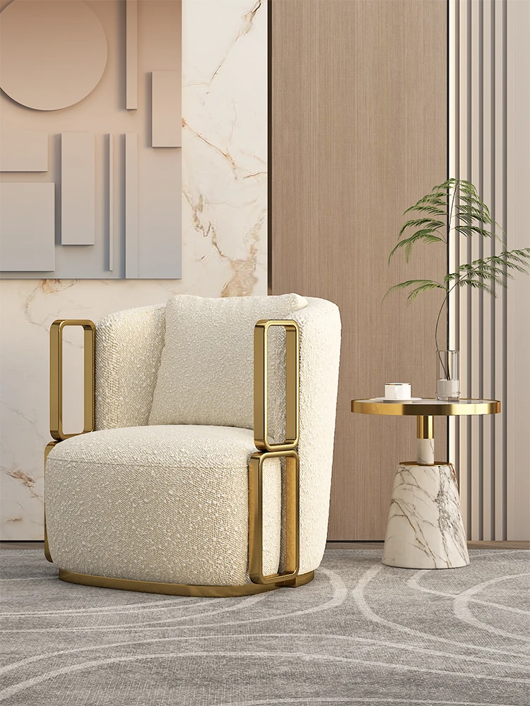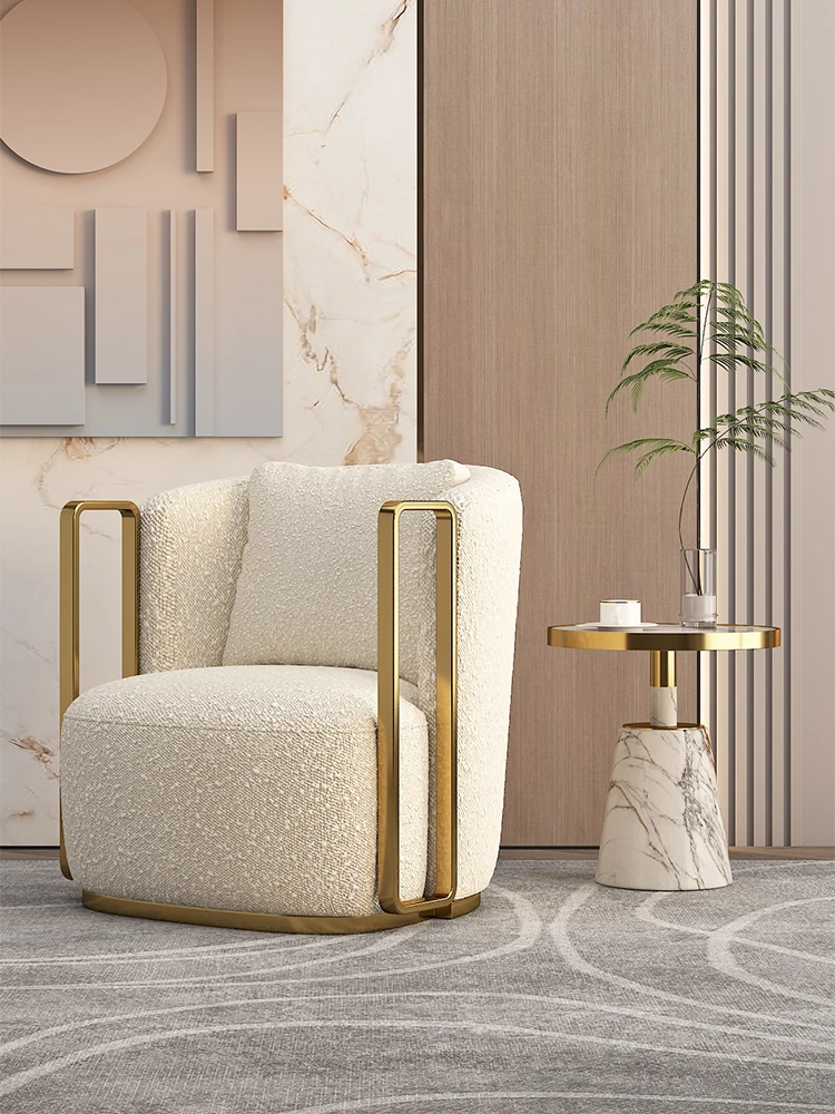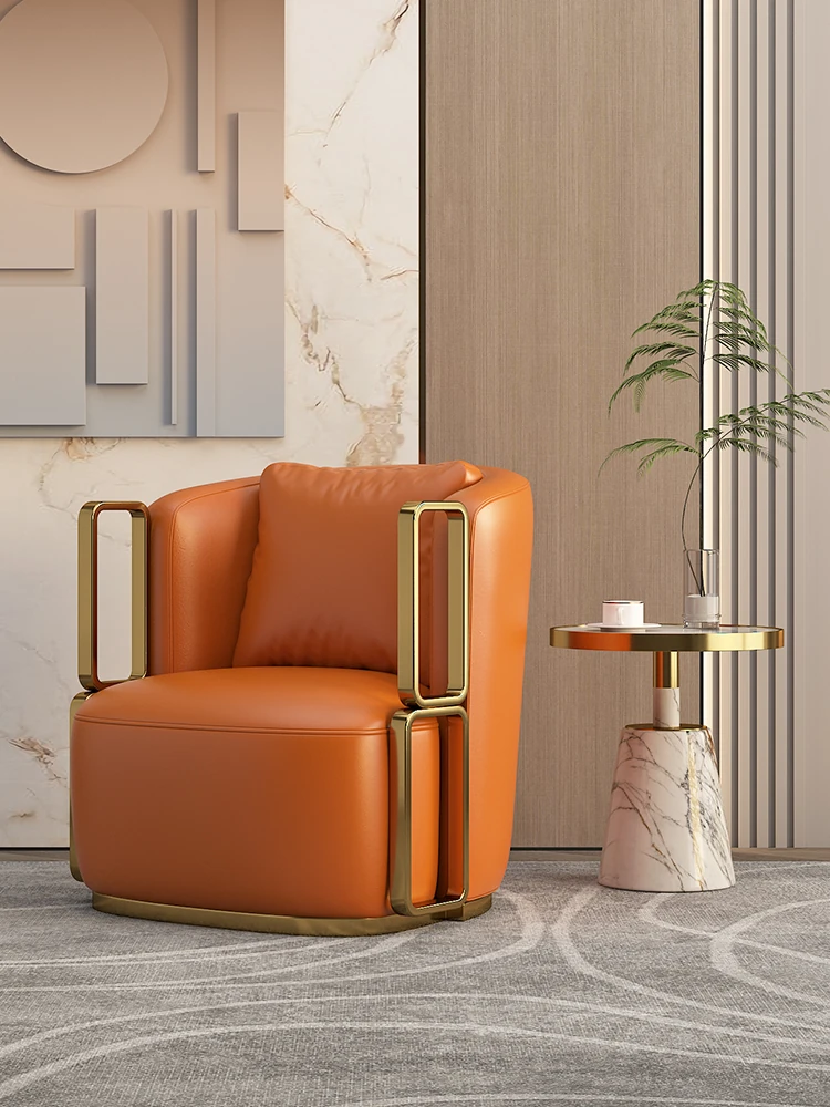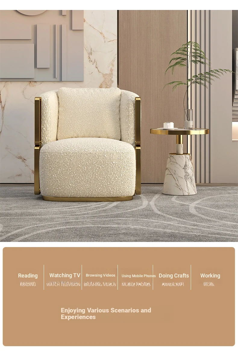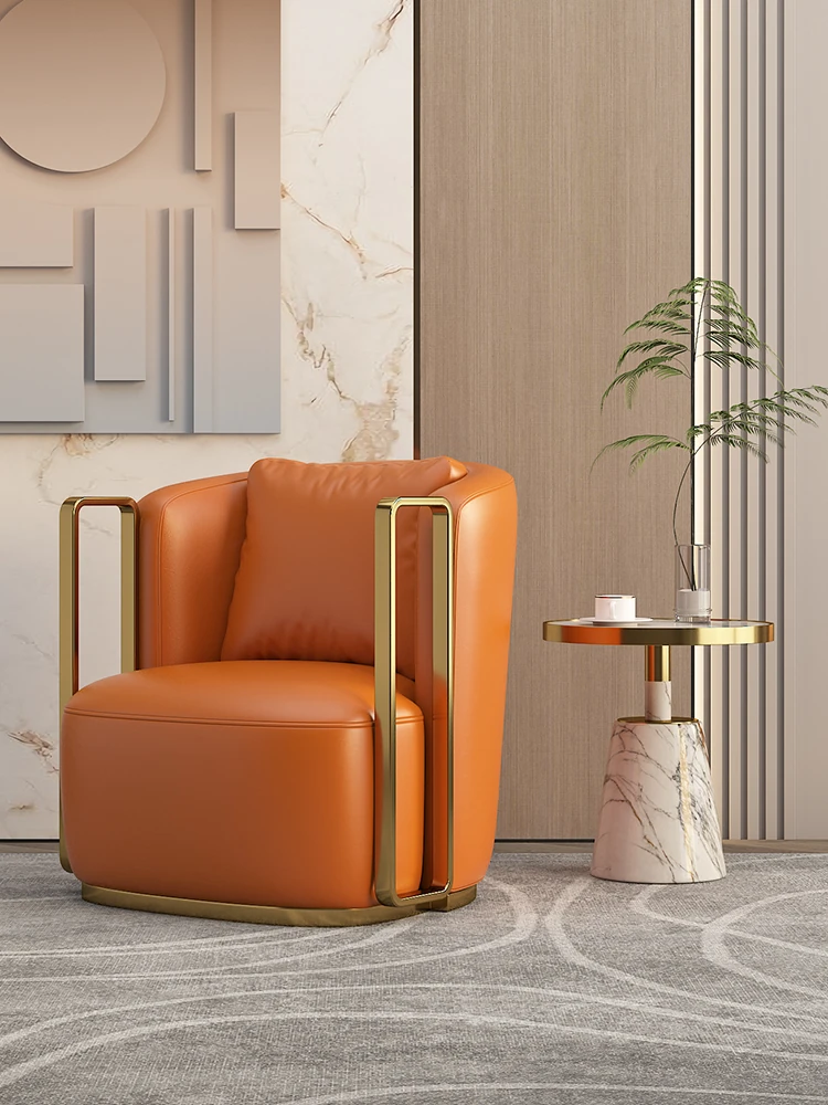 Italian Minimalist Single Sofa Chair - Stylish and Comfortable Lounge Chair for Living Room, Balcony, Hotel, and Club Meetings - Durable Stainless Steel Design