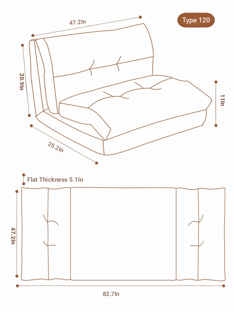 Lazy Sofa Bed for Small Spaces - Perfect for Apartments! Versatile Tatami Style Couch for Singles or Couples, Ideal for Living Rooms, Bedrooms, Balconies, and Window Seats. Comfort Meets Style in a Compact Design!