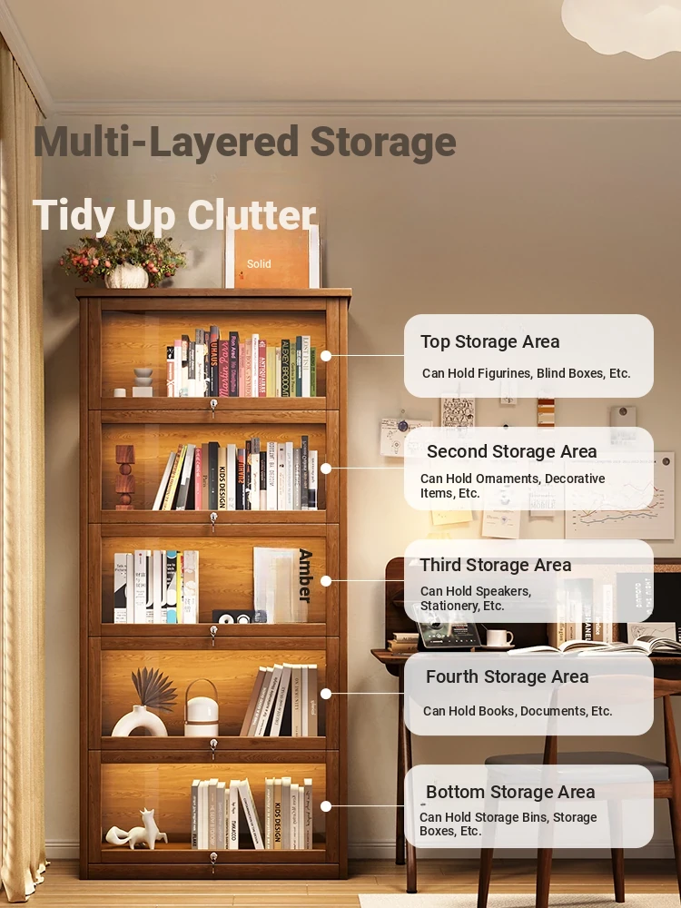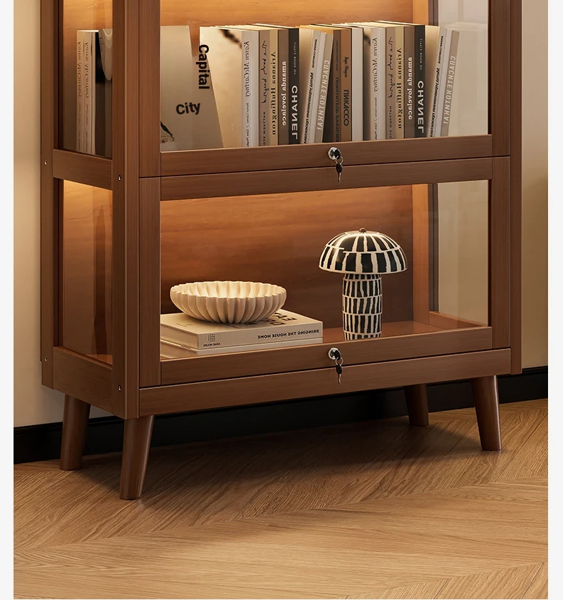Lockable Solid Wood Display Cabinet for Action Figures – Transparent Storage Box for Gift Blind Boxes, Wine Storage, and Floor-standing Glass Showcase – Perfect for Collectors!