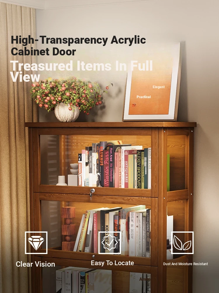 Assembly: transparent door with lock -3 doors 23.62in [solid wood material is stable and does not shake]]