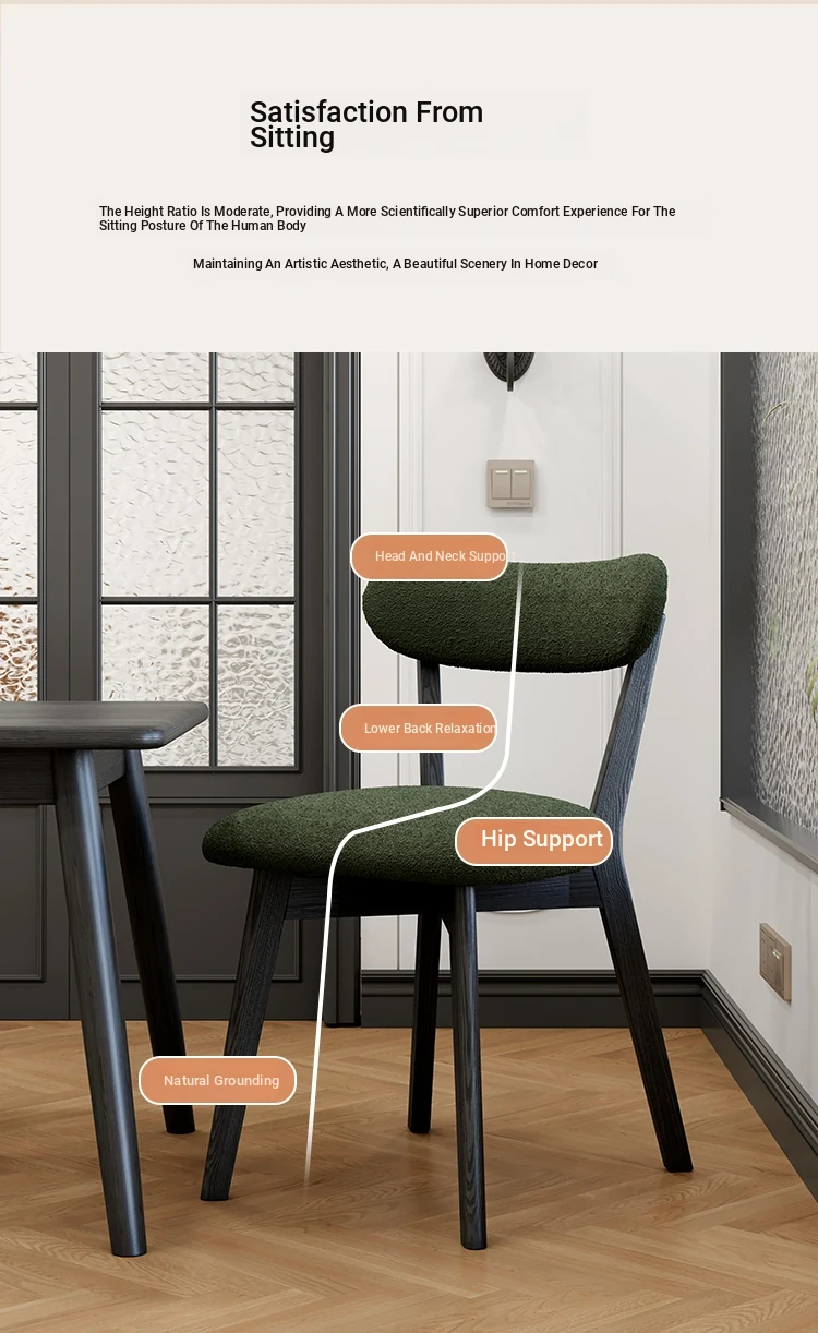 [Cashmere Backrest + Seat Surface] Solid Wood Dining Chair