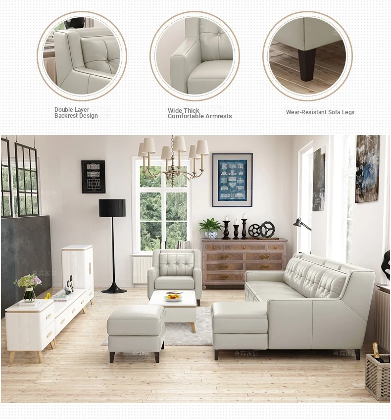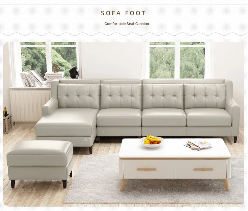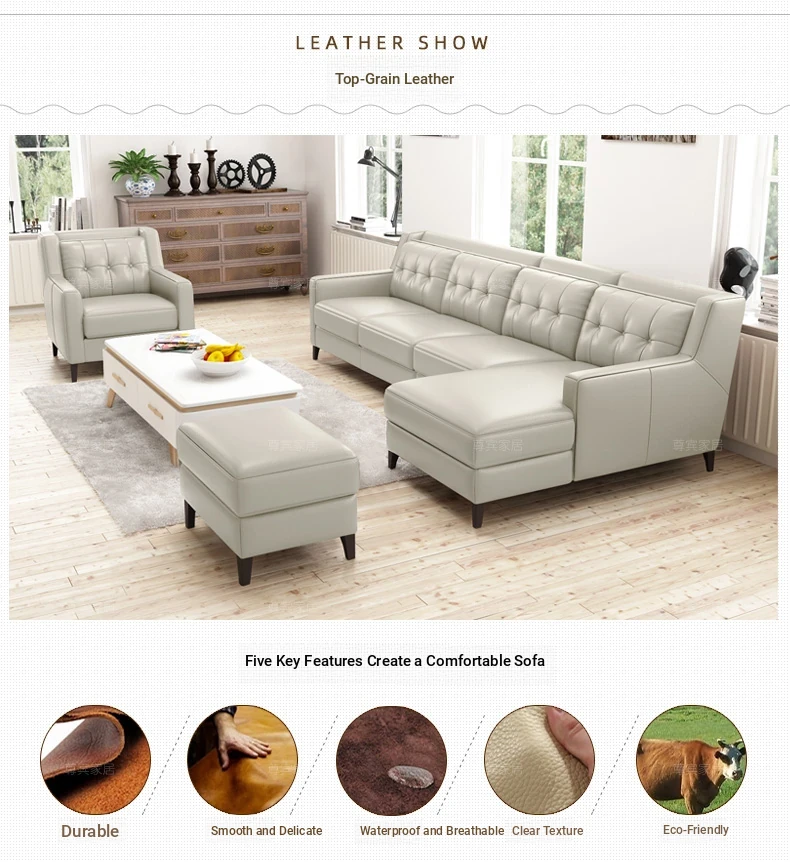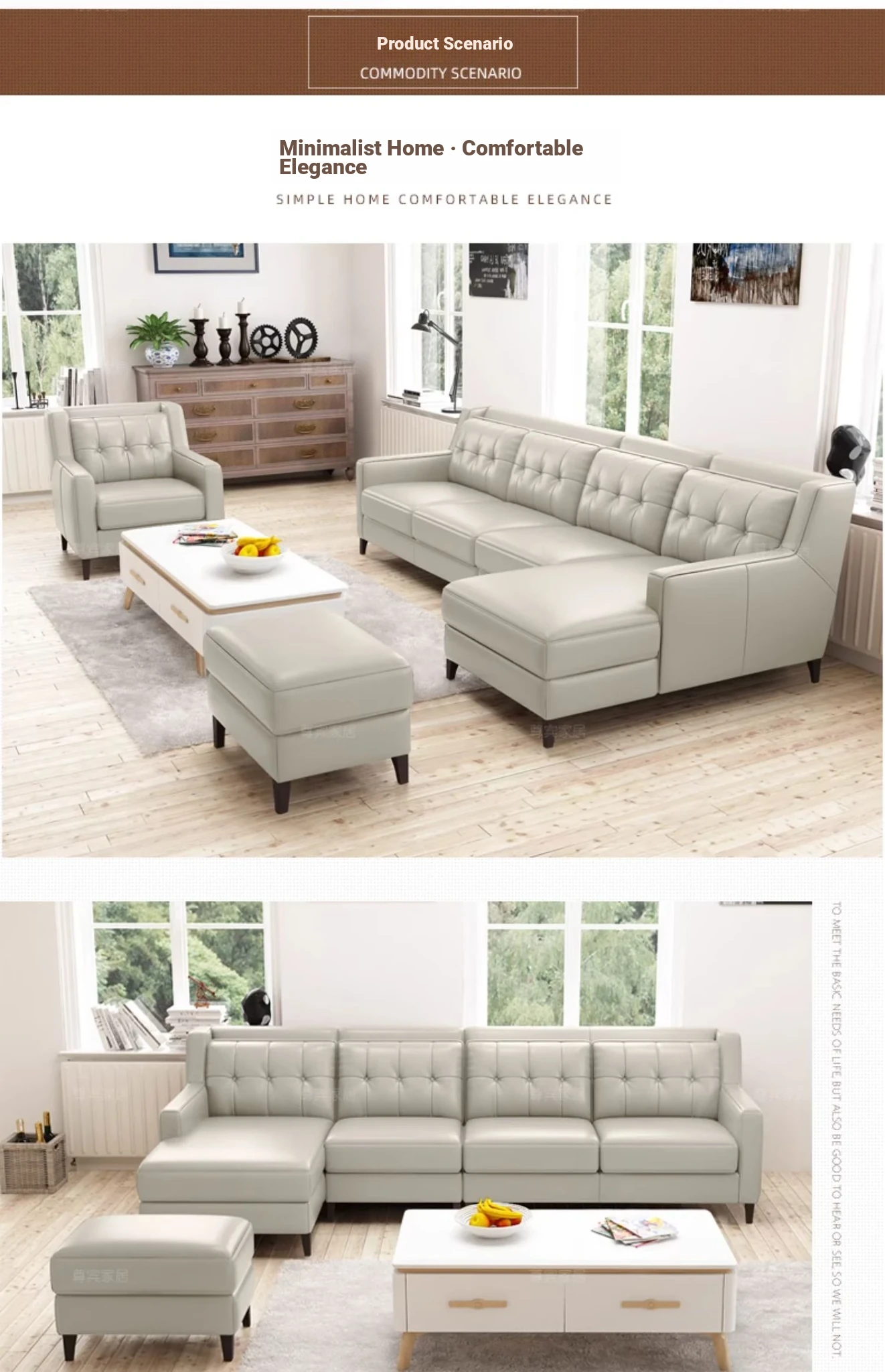 Luxurious Nordic Genuine Leather Sofa Set - Modern Corner Design with Top-Grain Cowhide, Perfect 123 Combination for Stylish Living Room Furniture