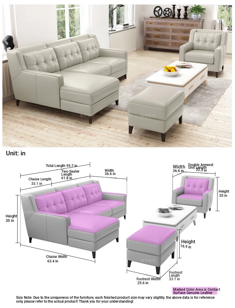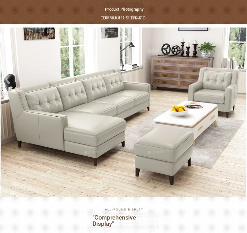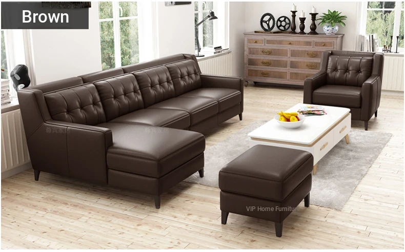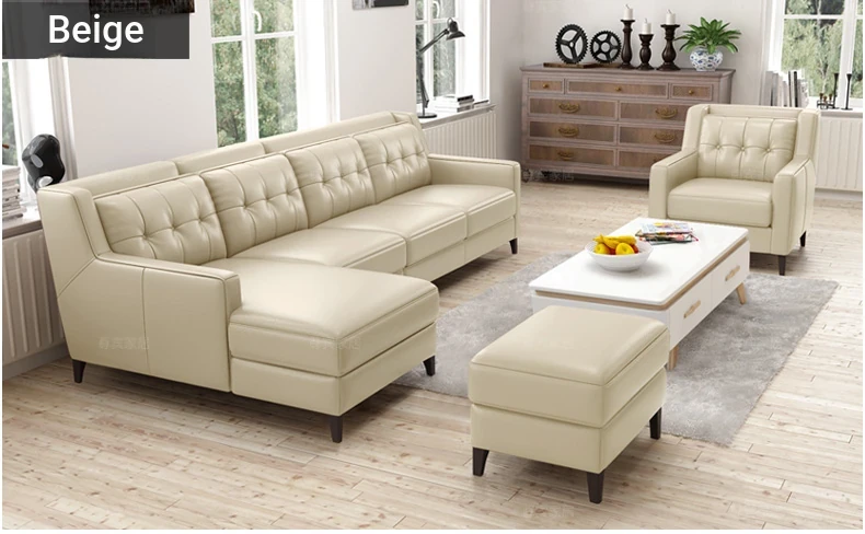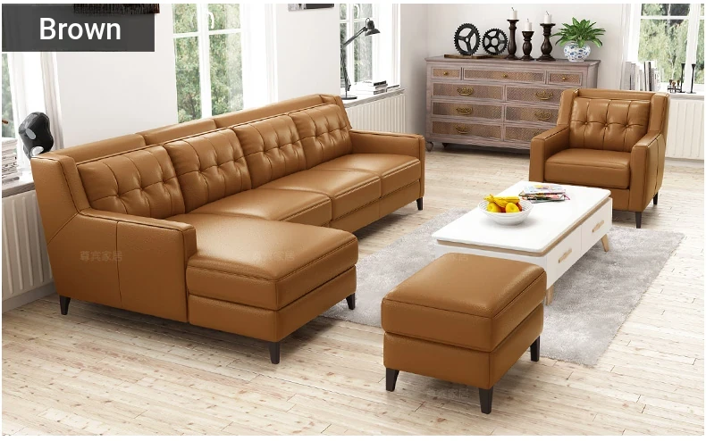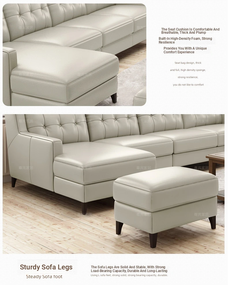Luxurious Nordic Genuine Leather Sofa Set - Modern Corner Design with Top-Grain Cowhide, Perfect 123 Combination for Stylish Living Room Furniture