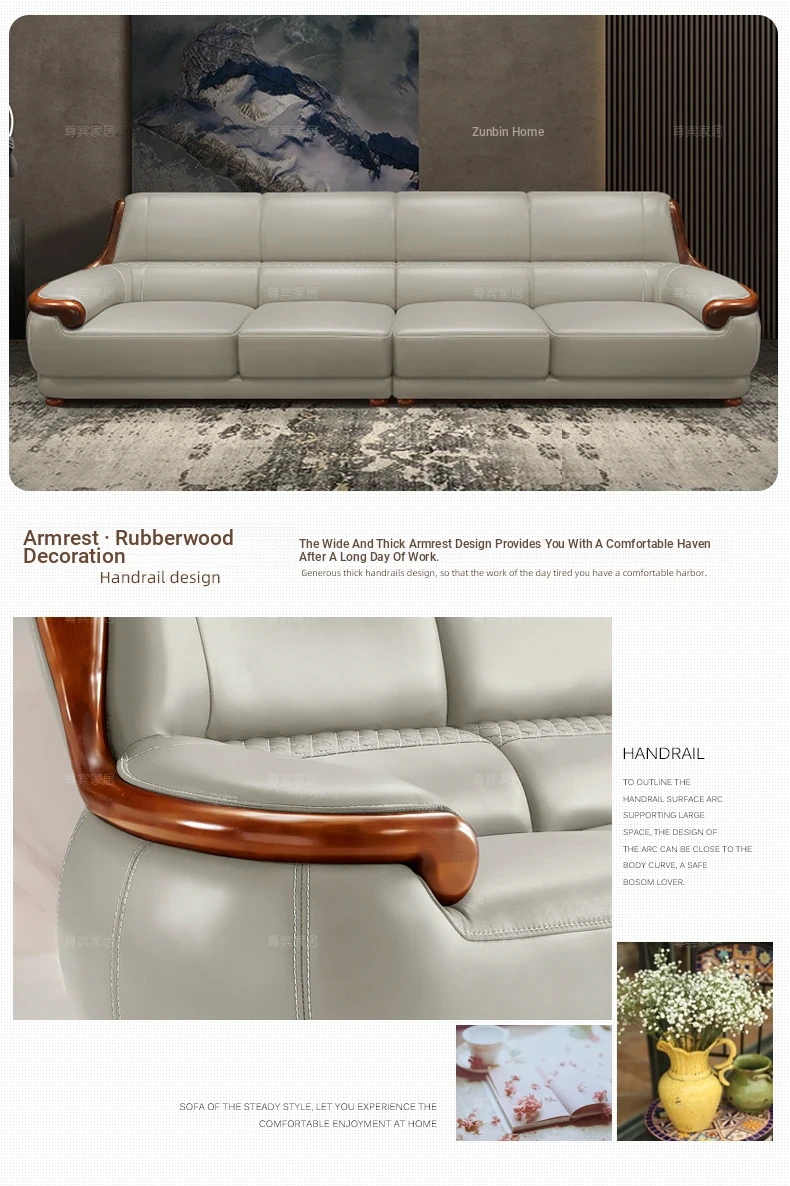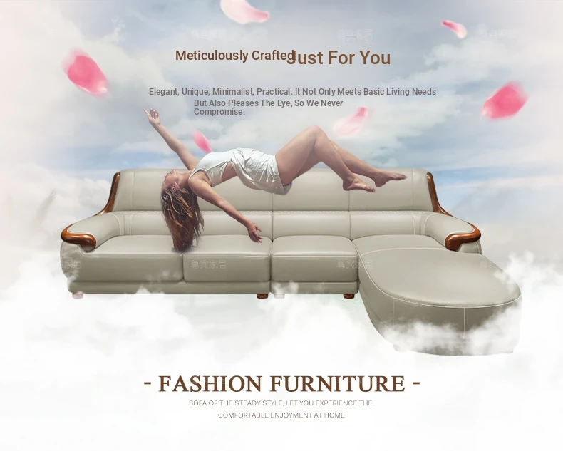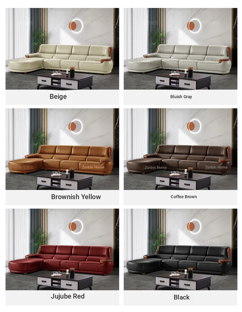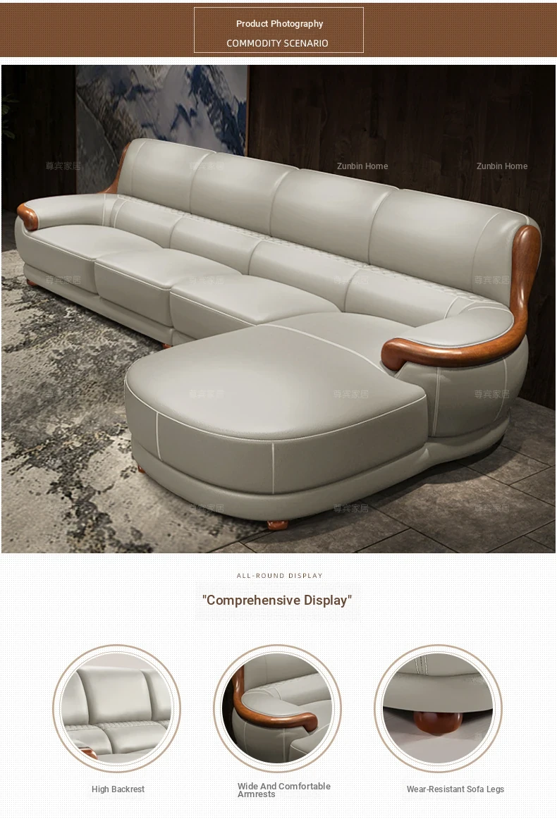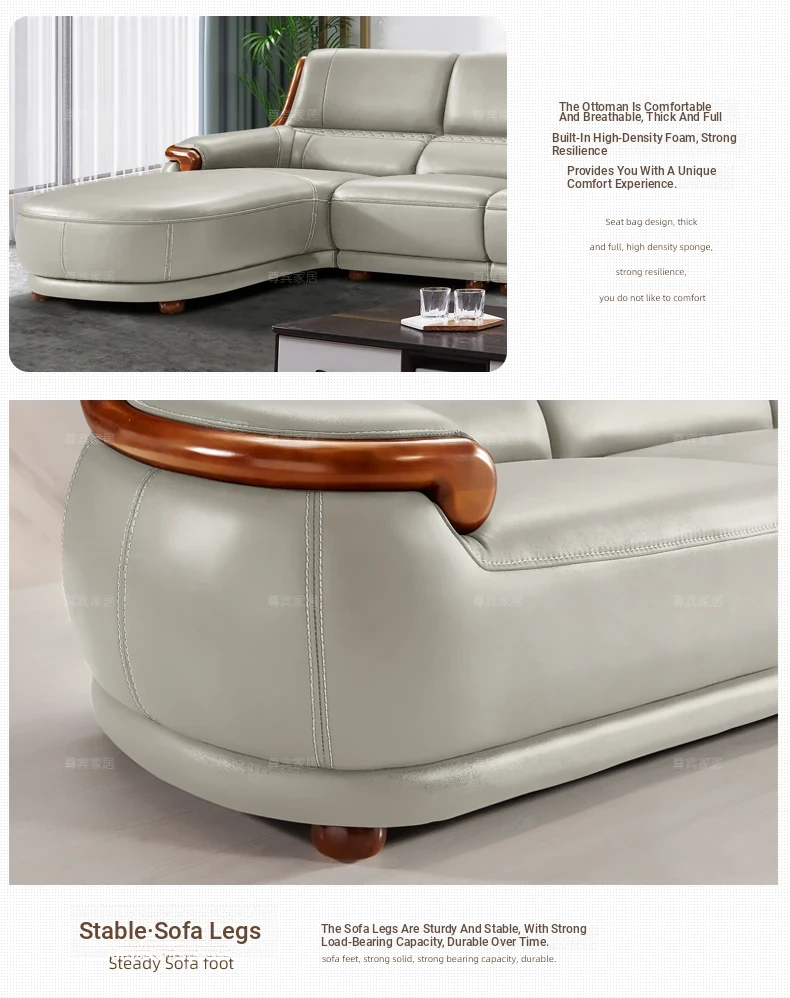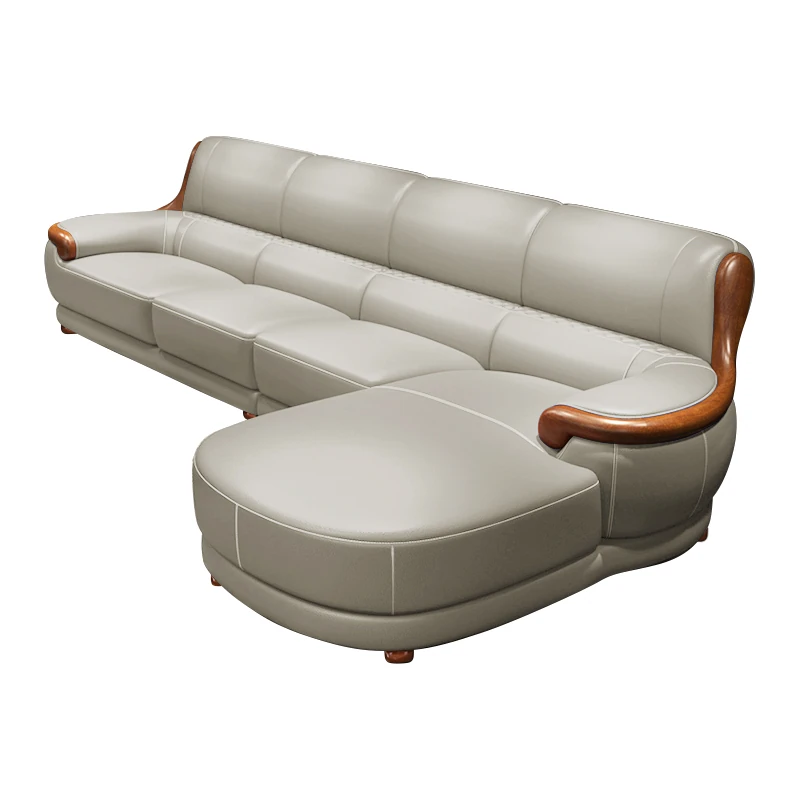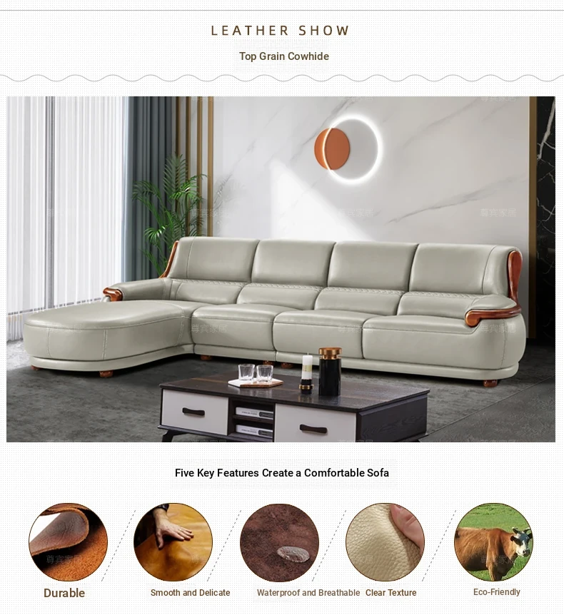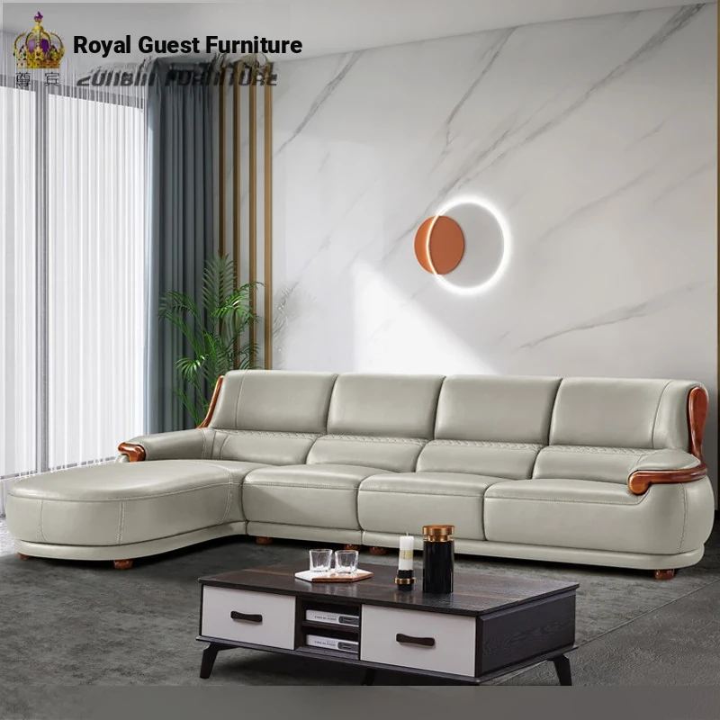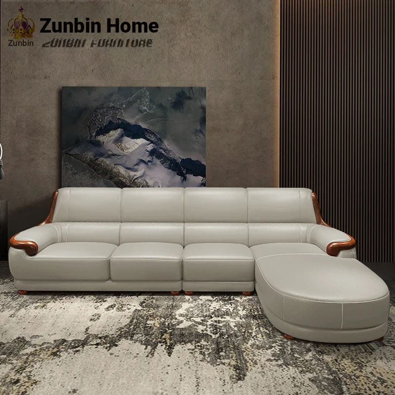 Luxury Modern Chinese Style Genuine Leather Sofa - Elegant Corner Three-Seater in Top Grain Cowhide for Your Living Room