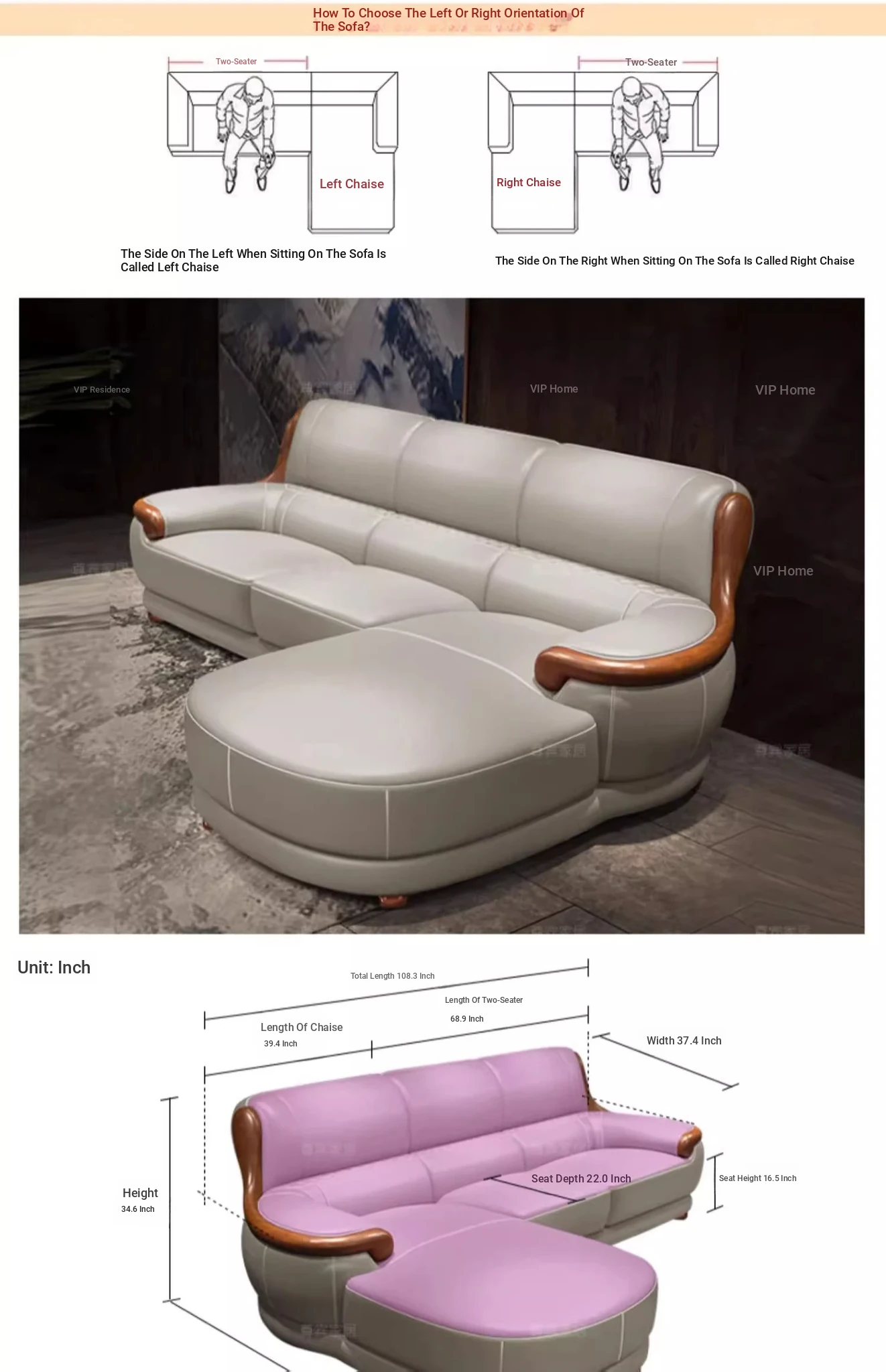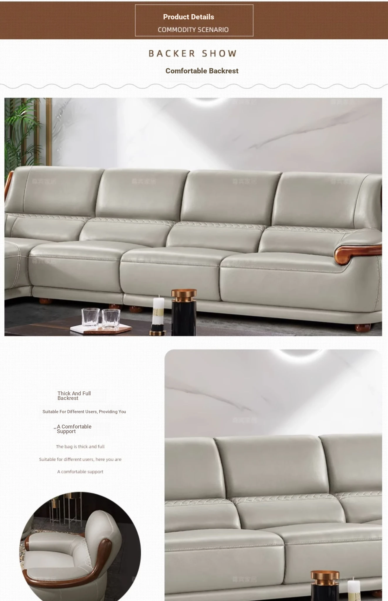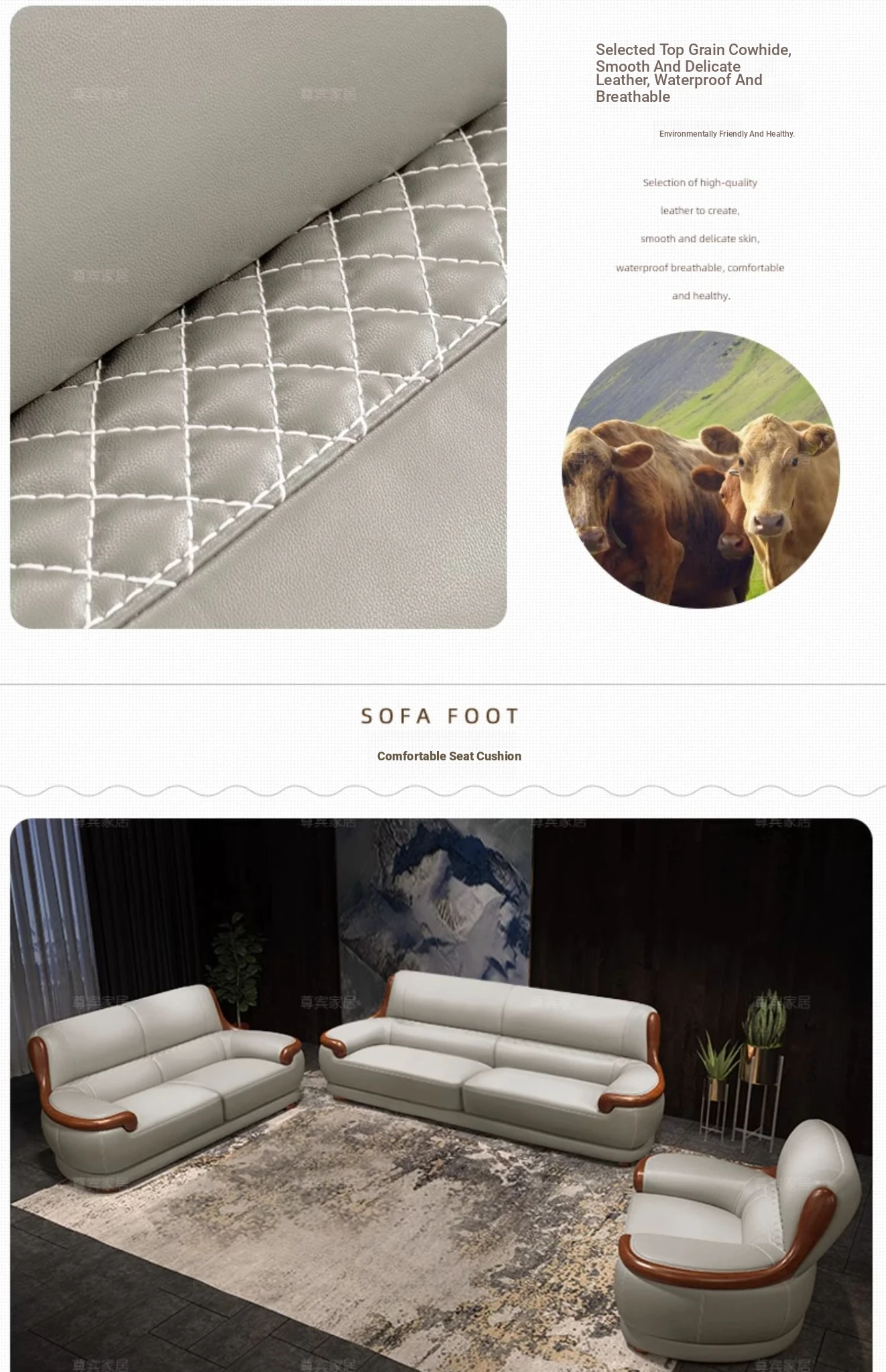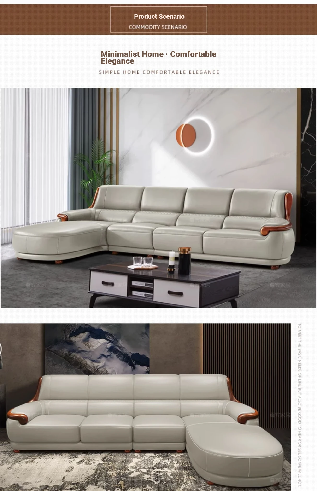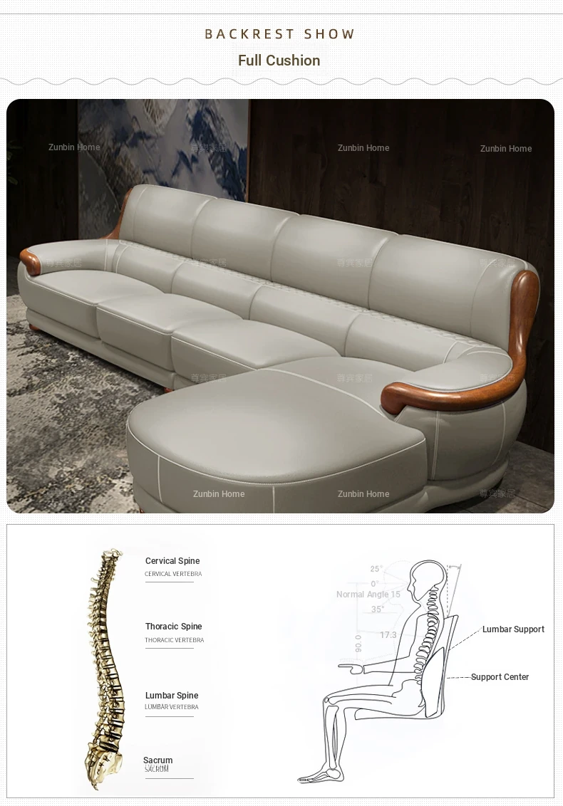 Luxury Modern Chinese Style Genuine Leather Sofa - Elegant Corner Three-Seater in Top Grain Cowhide for Your Living Room