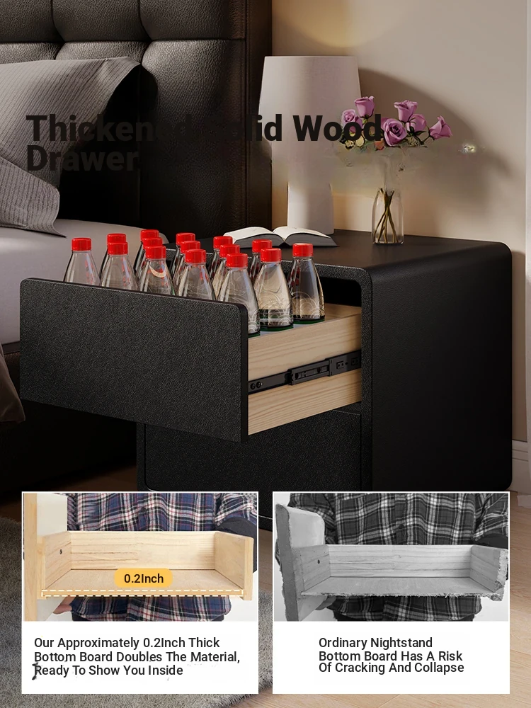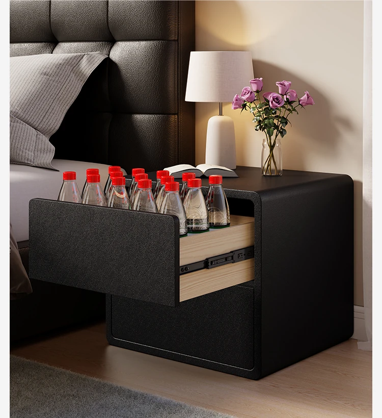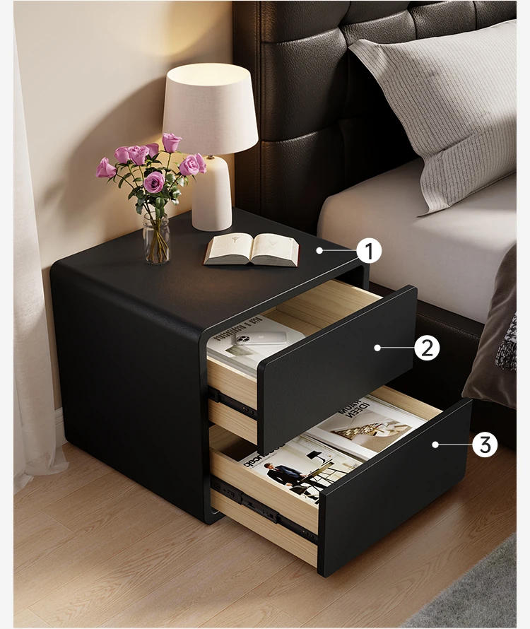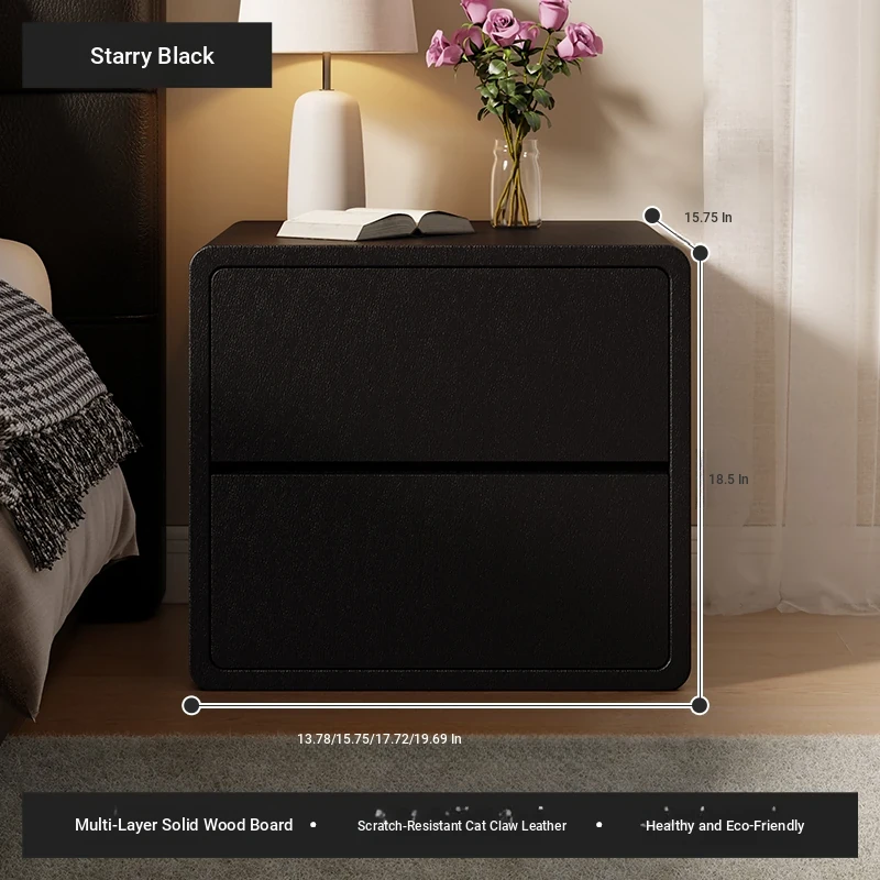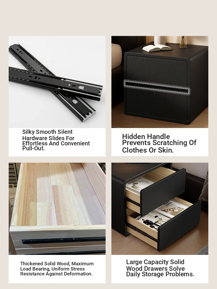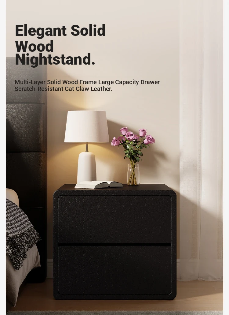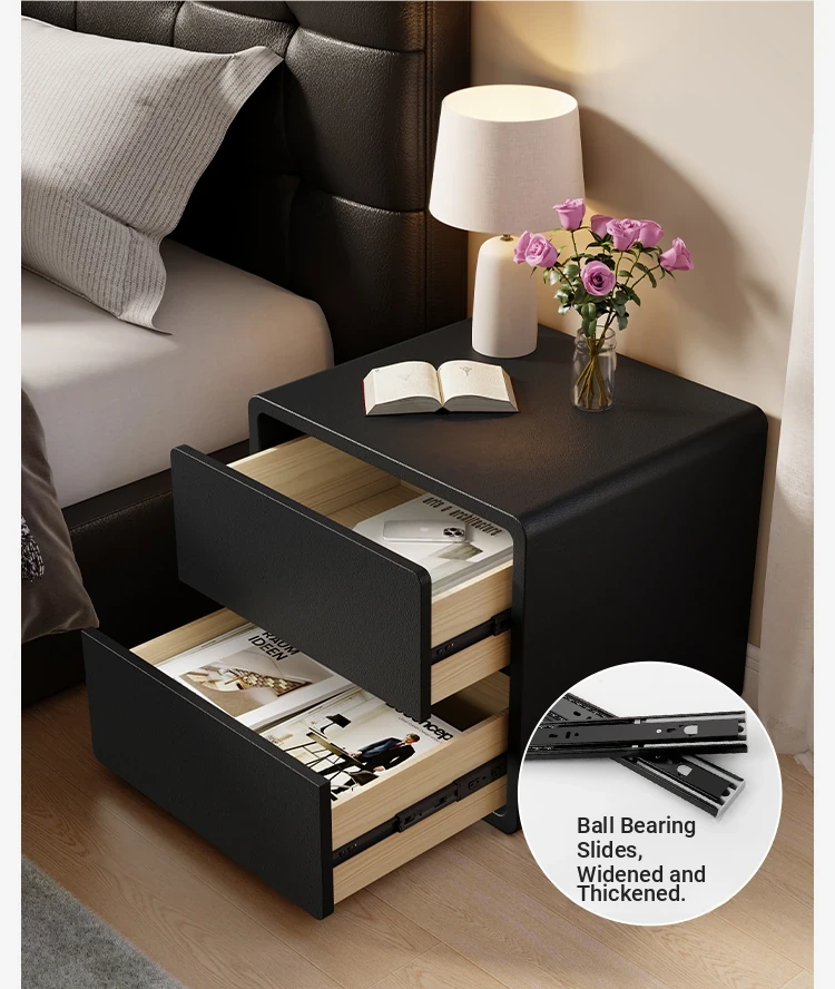 Modern Black Nightstand 2025 New Design - Minimalist Luxury Bedroom Bedside Cabinet with Solid Wood Storage for Stylish Organization