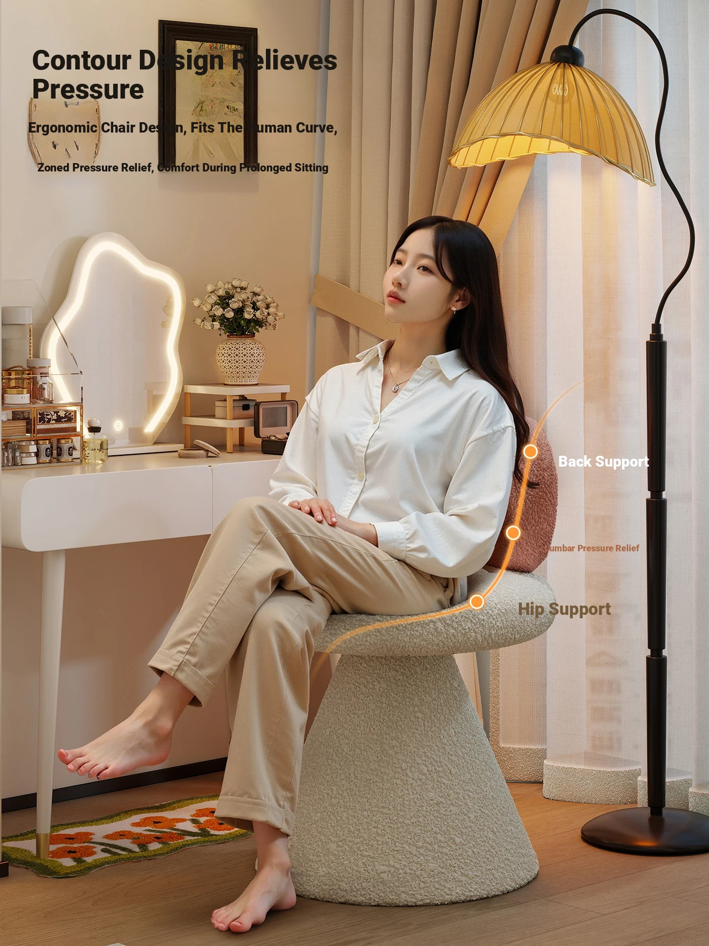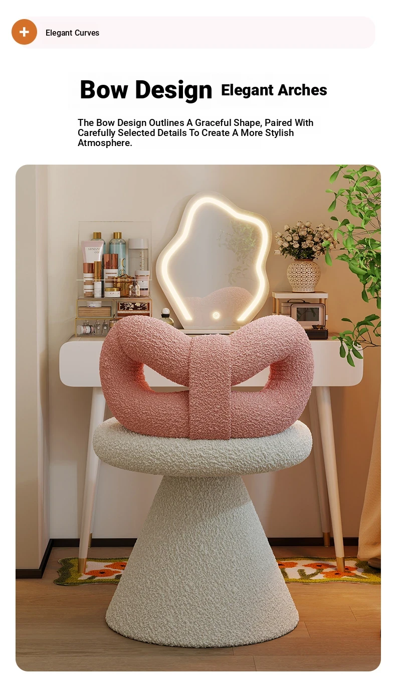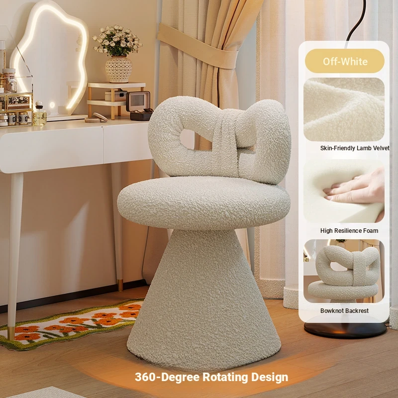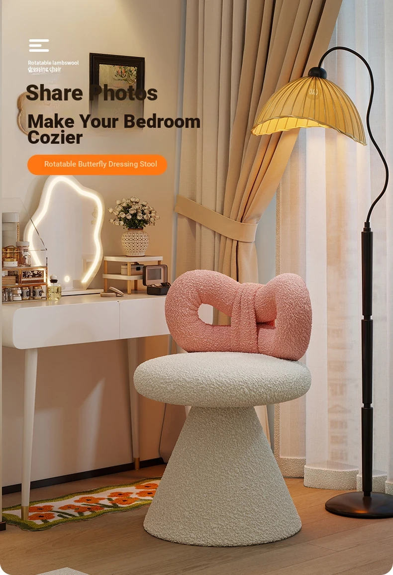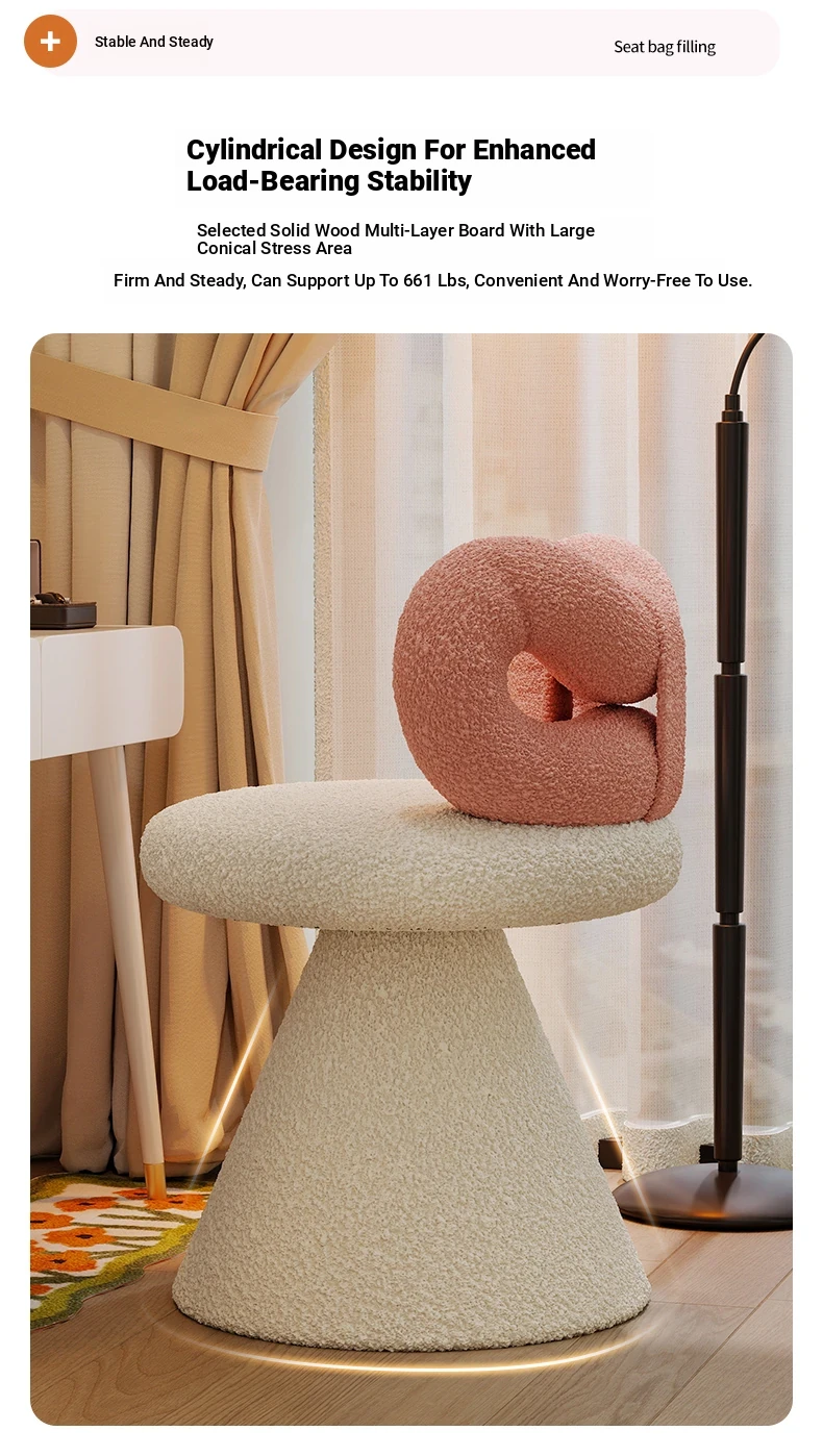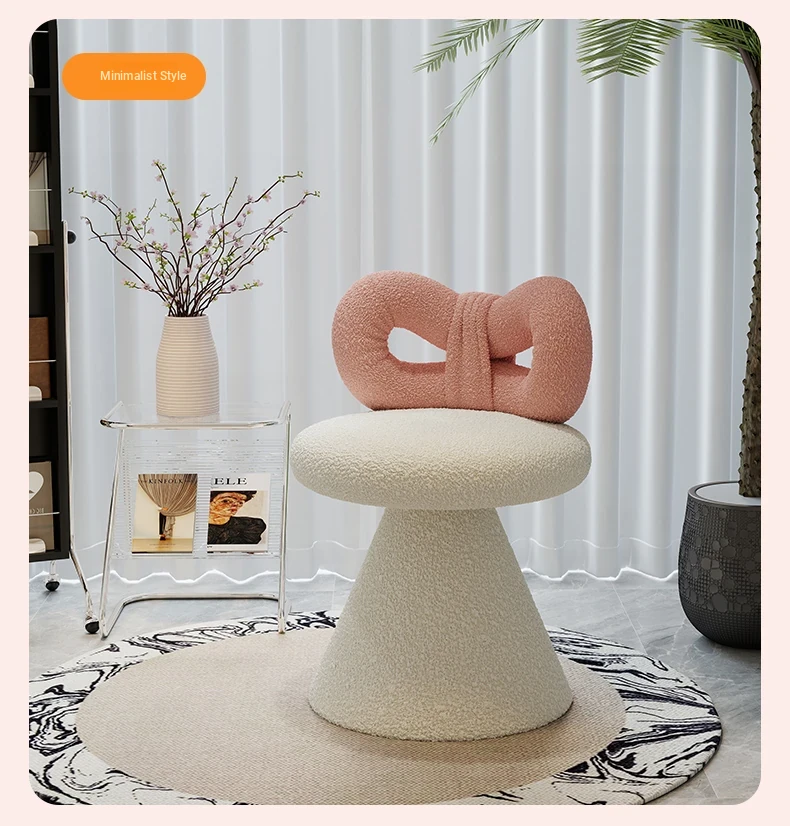 Modern Cream Makeup Vanity Stool for Girls' Bedroom - Elegant and Minimalist Design, Perfect for Home Use and Nail Art.