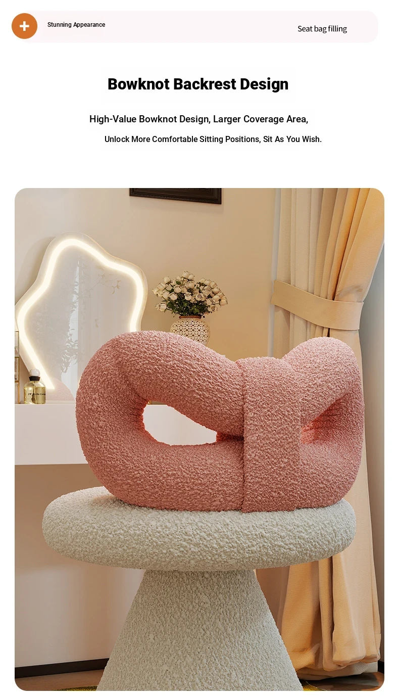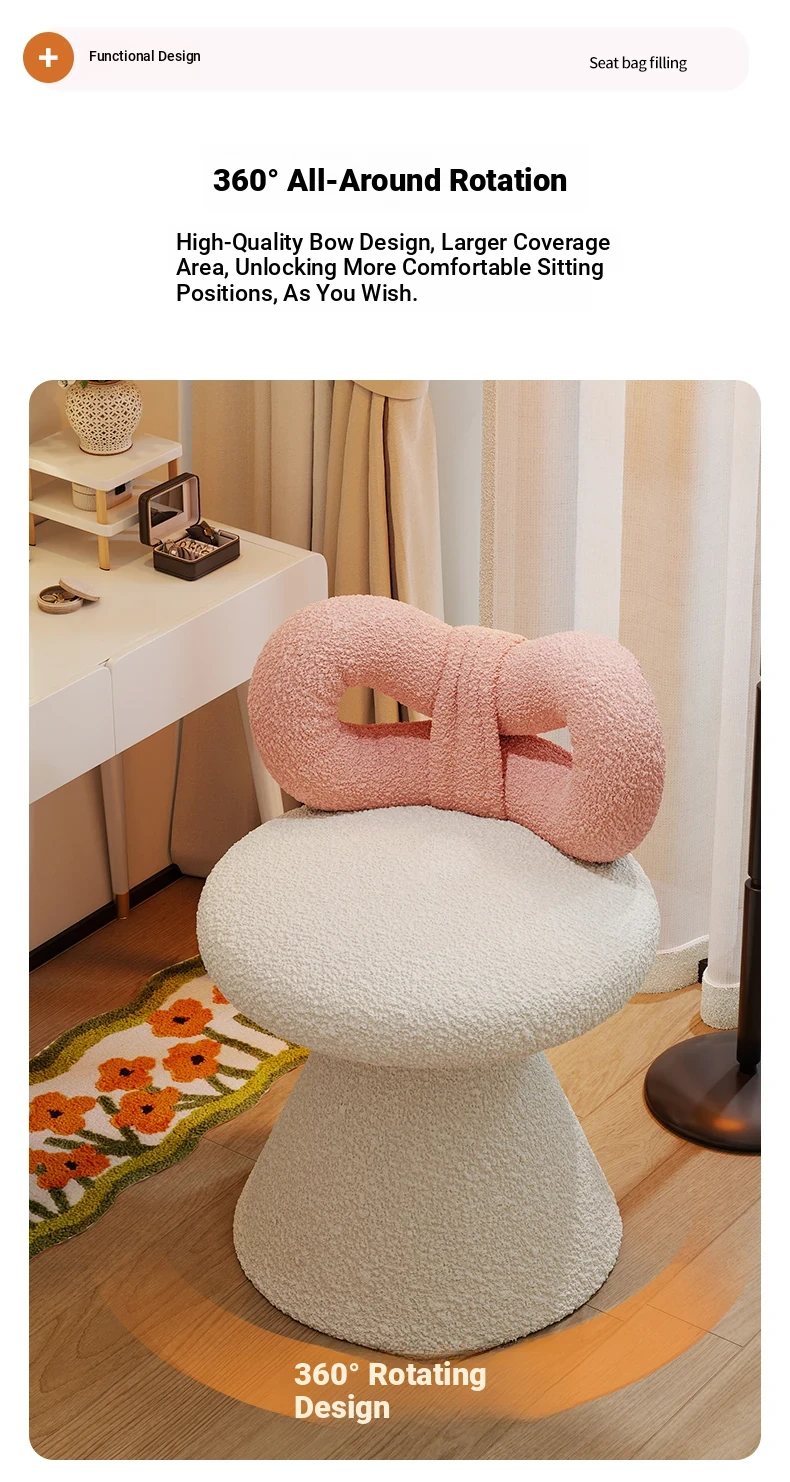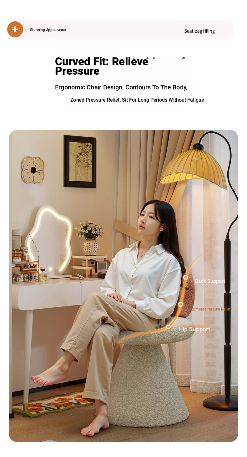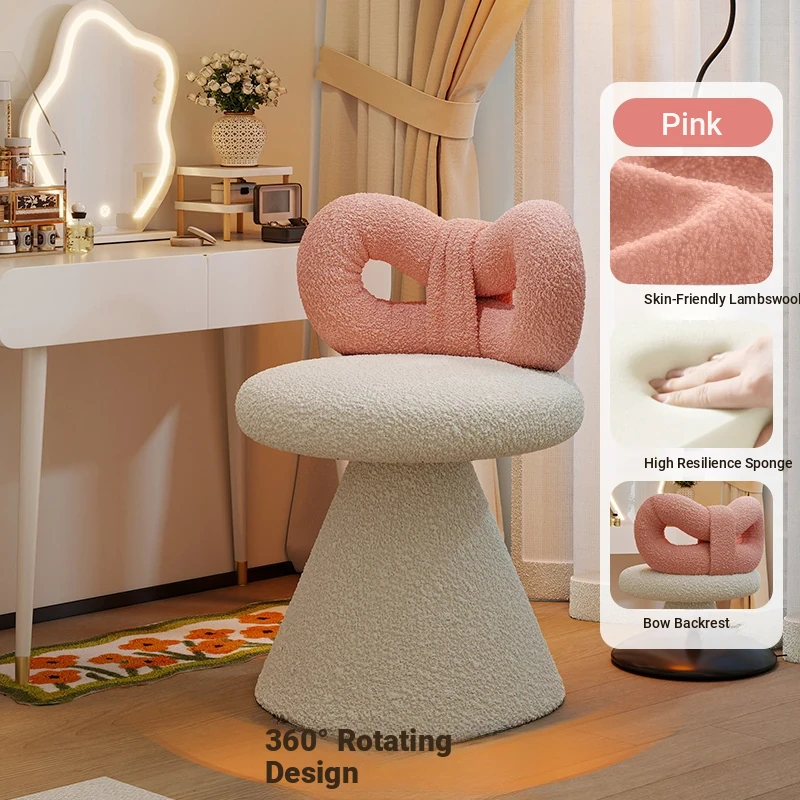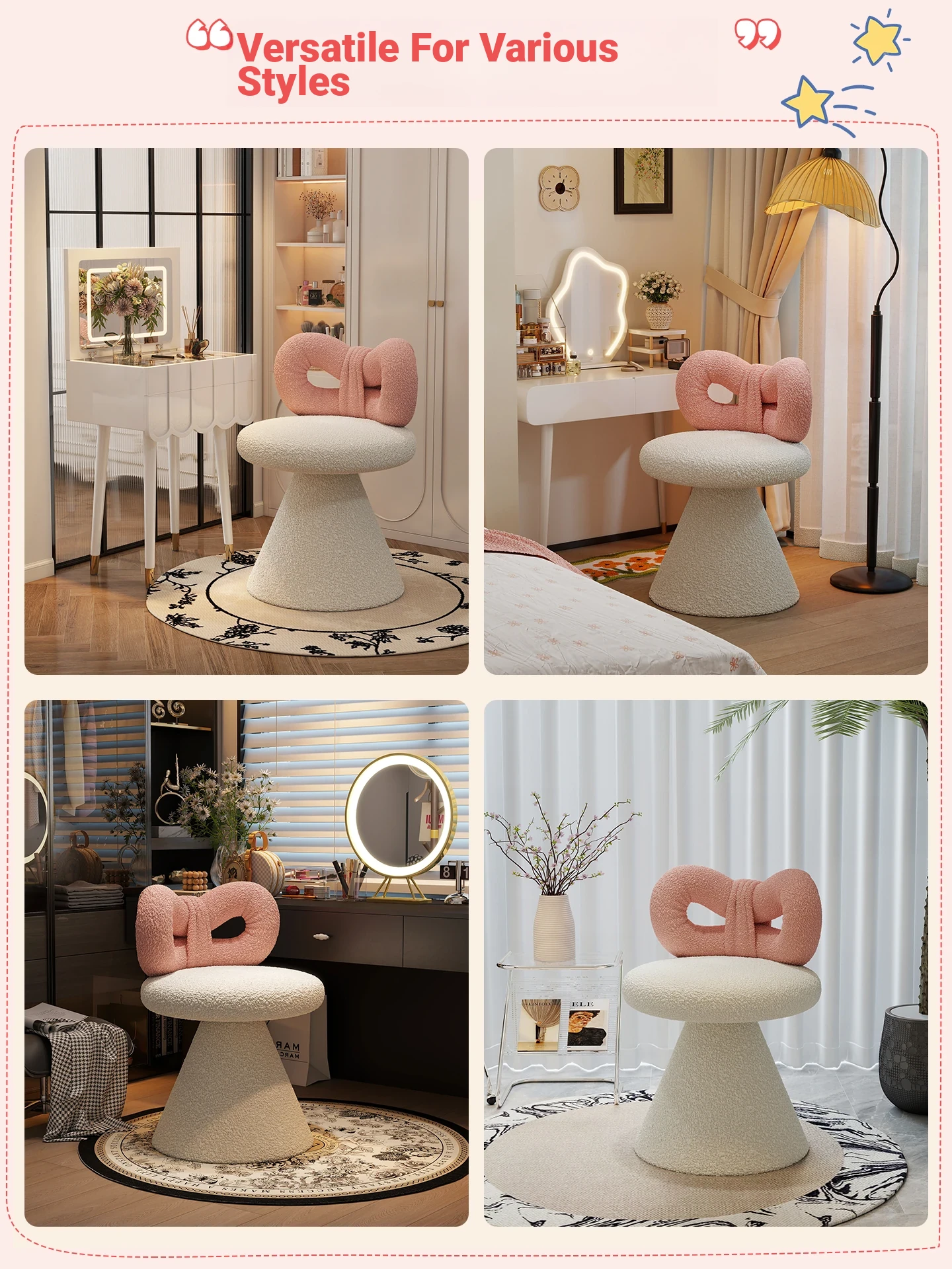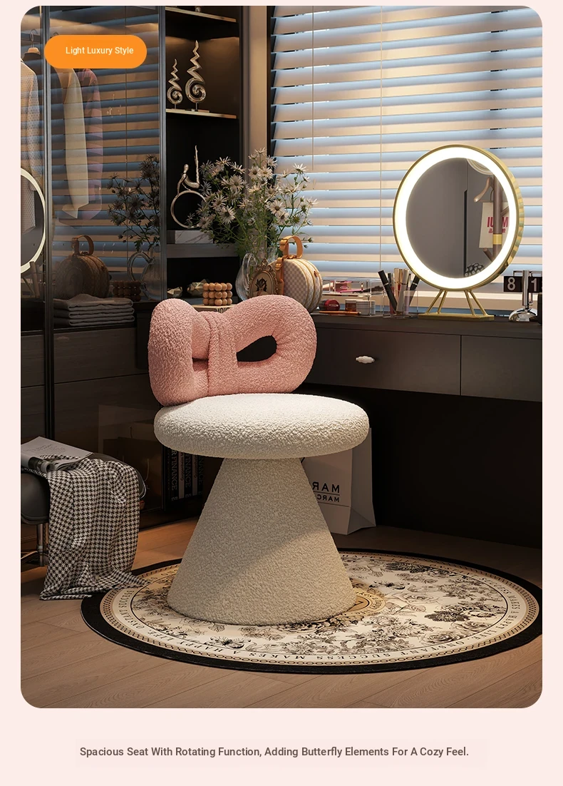 Modern Cream Makeup Vanity Stool for Girls' Bedroom - Elegant and Minimalist Design, Perfect for Home Use and Nail Art.