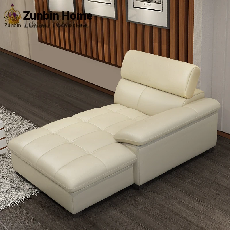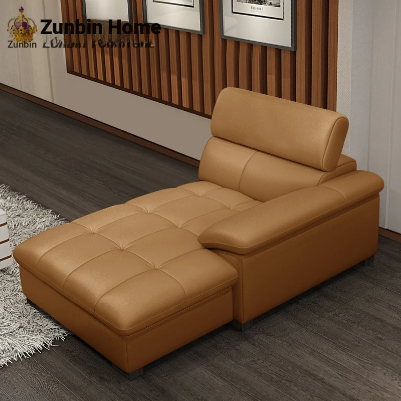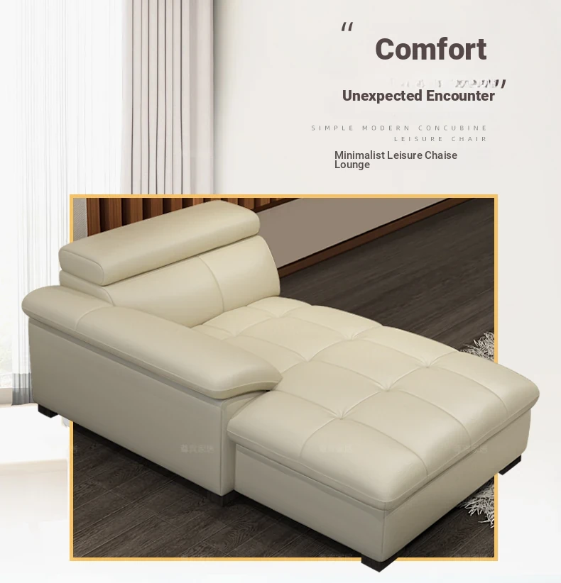 Modern Genuine Leather Chaise Lounge Chair - Luxurious Single Sofa for Bedroom and Living Room, Stylish Leather Daybed for Relaxation, Crafted from Premium Cowhide