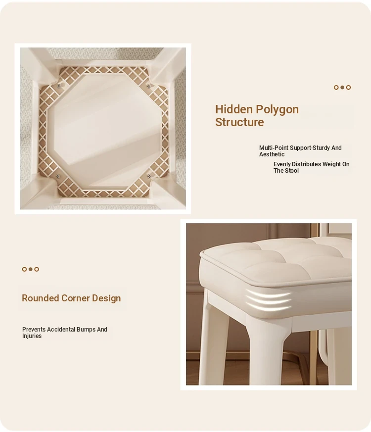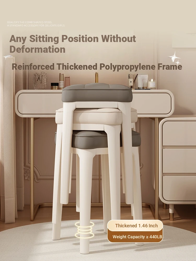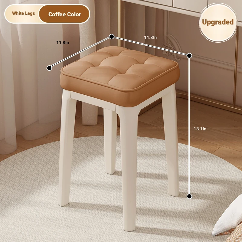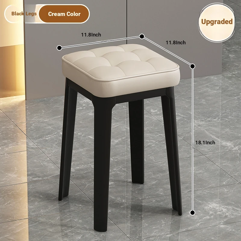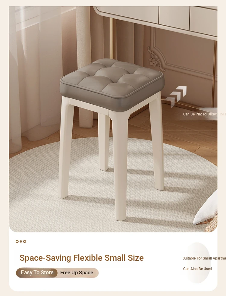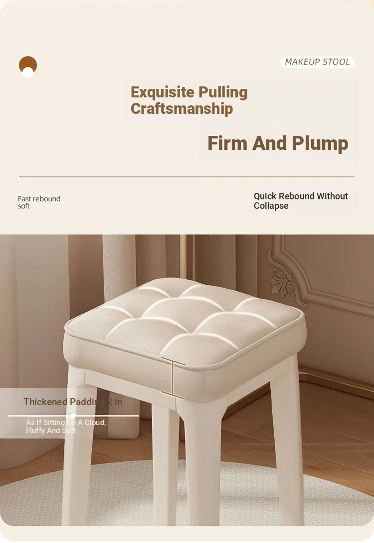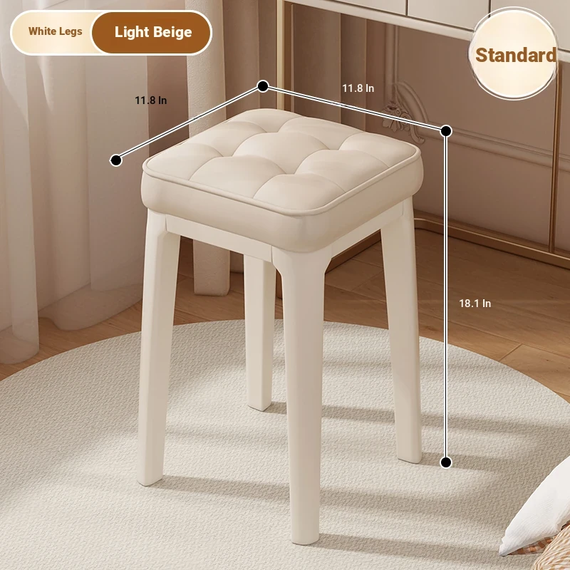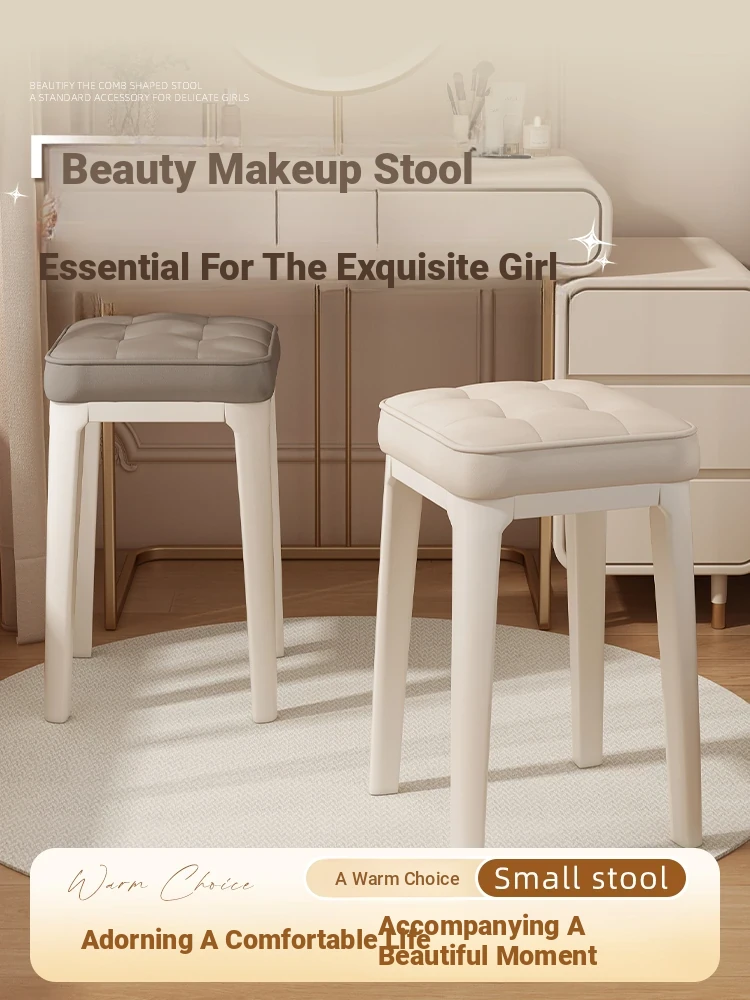 Modern Minimalist Makeup Vanity Stool - Chic Creamy Design for Bedroom, Perfect for Women’s Beauty Routine & Nail Art - Elegant, Luxurious Touch to Your Home Décor