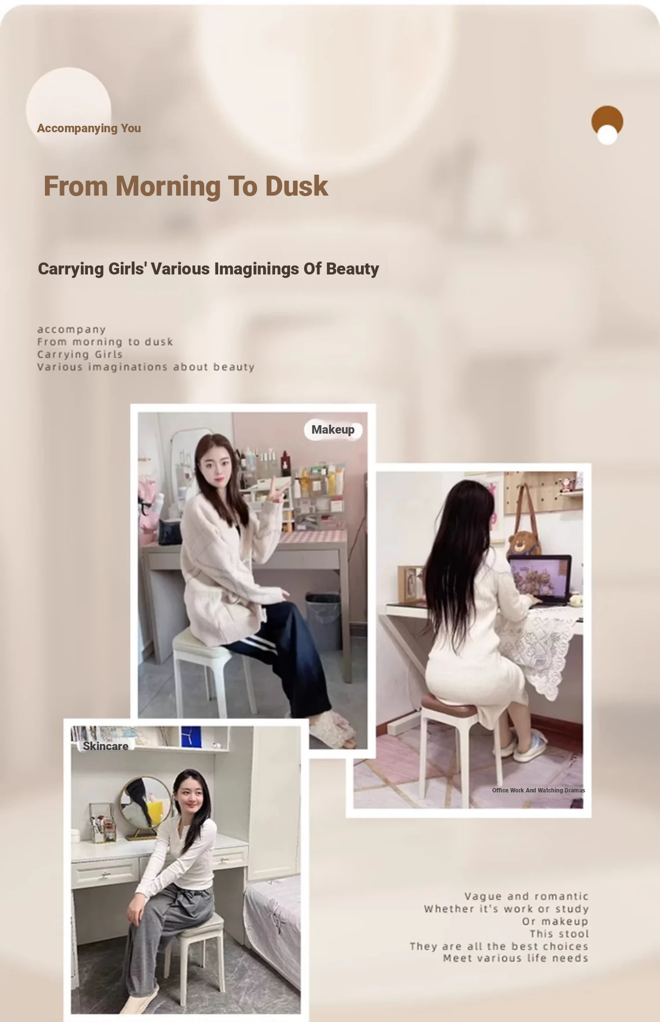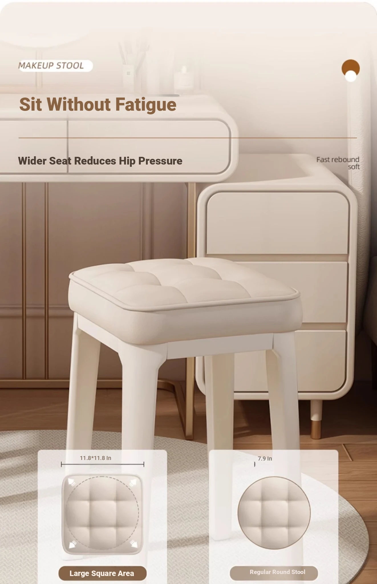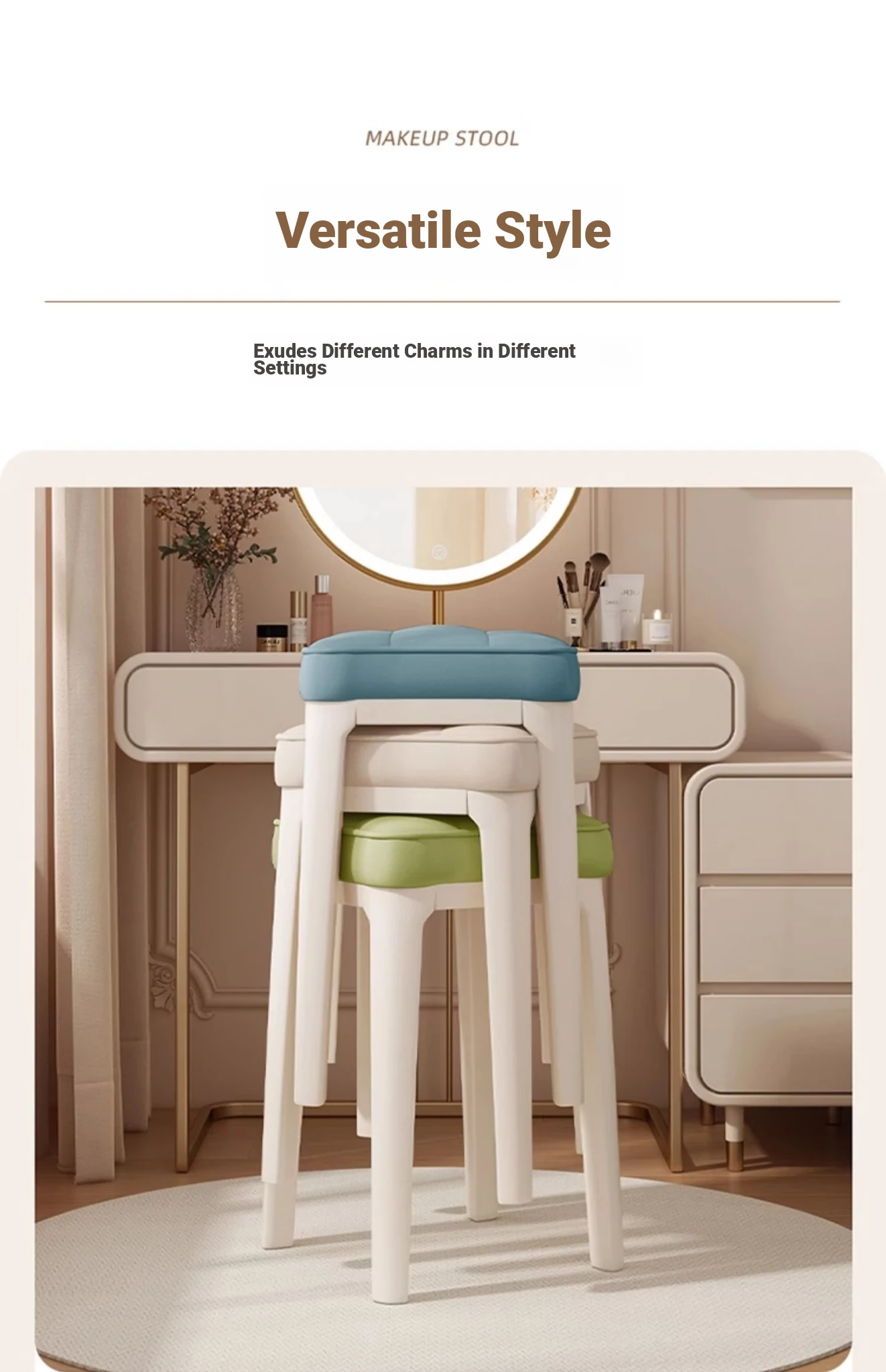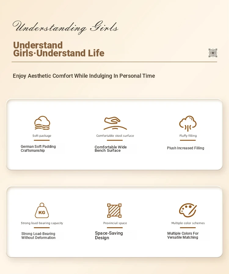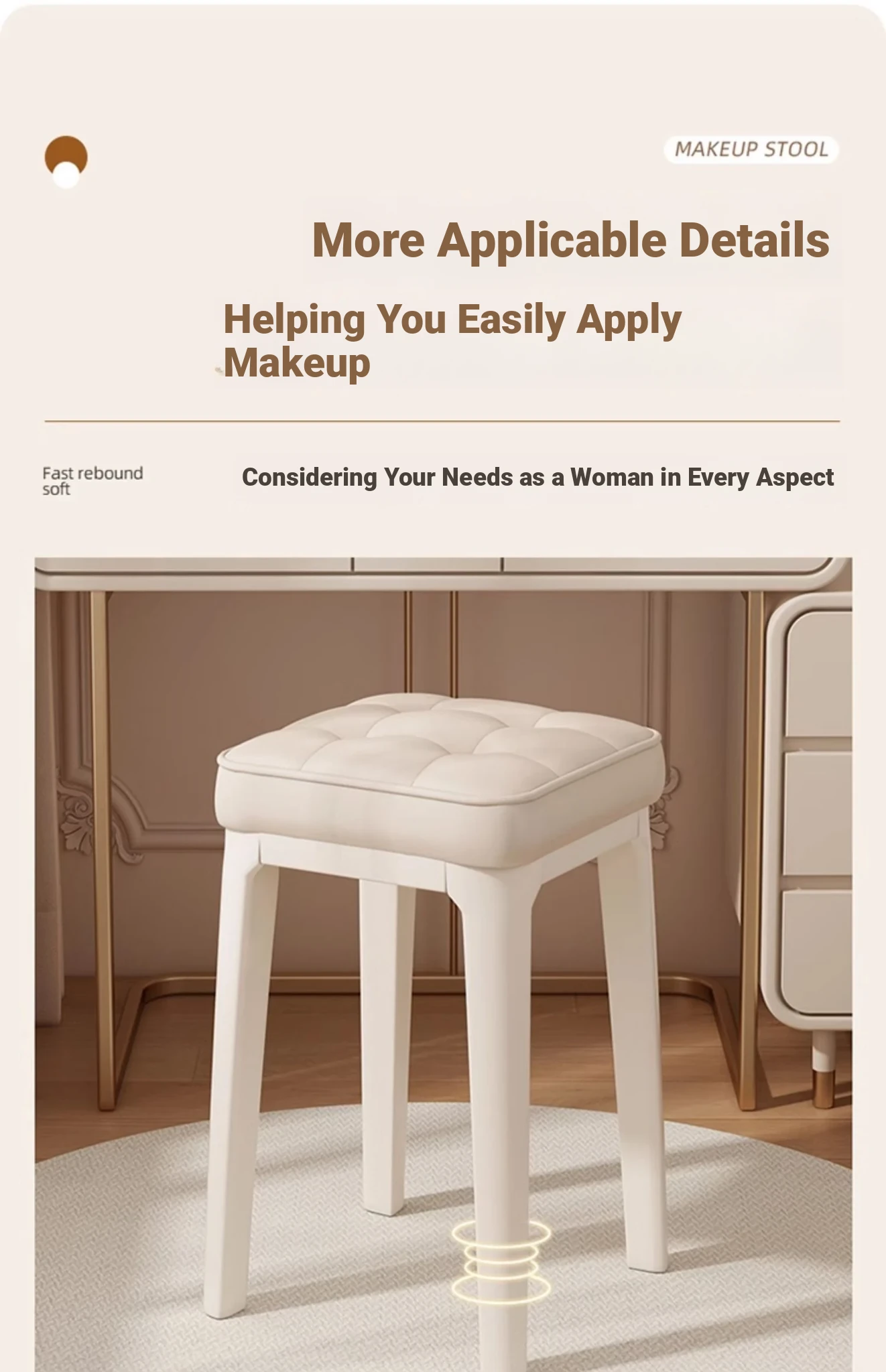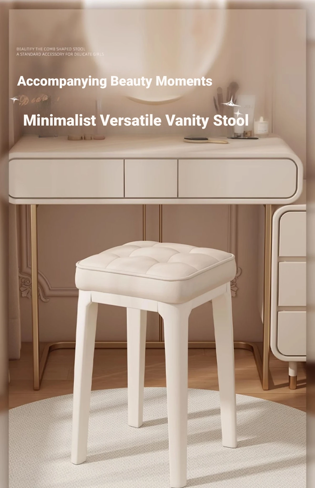 Modern Minimalist Makeup Vanity Stool - Chic Creamy Design for Bedroom, Perfect for Women’s Beauty Routine & Nail Art - Elegant, Luxurious Touch to Your Home Décor