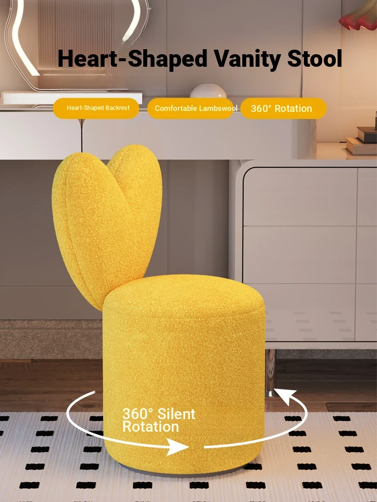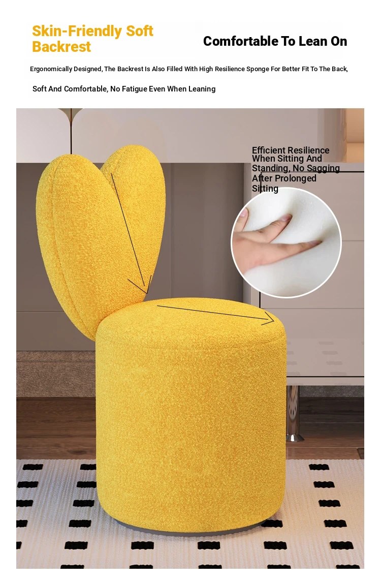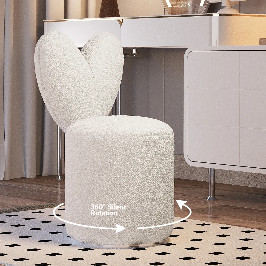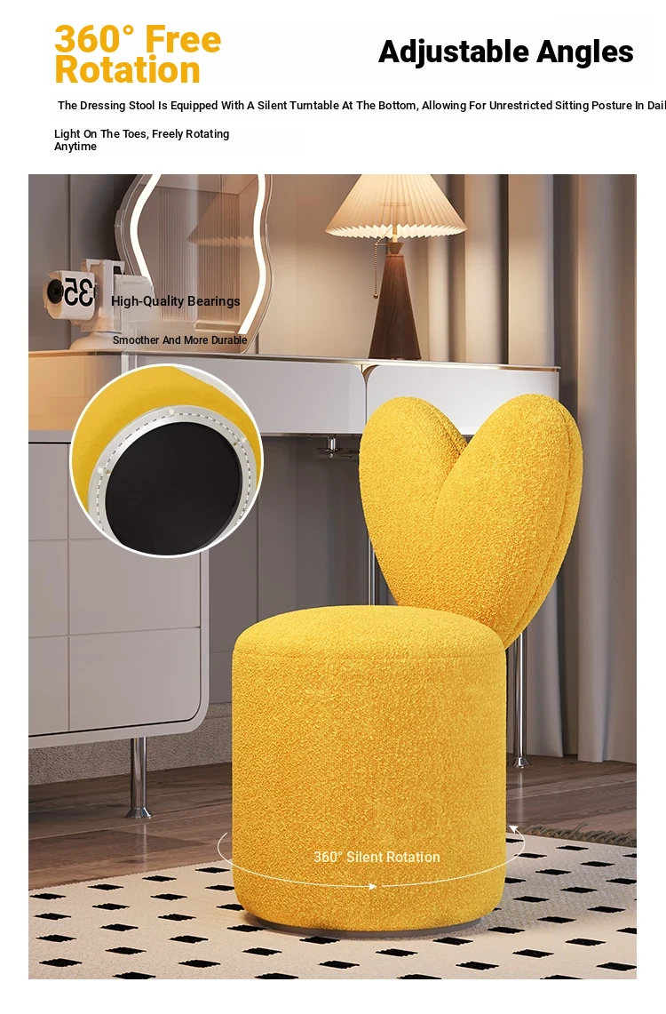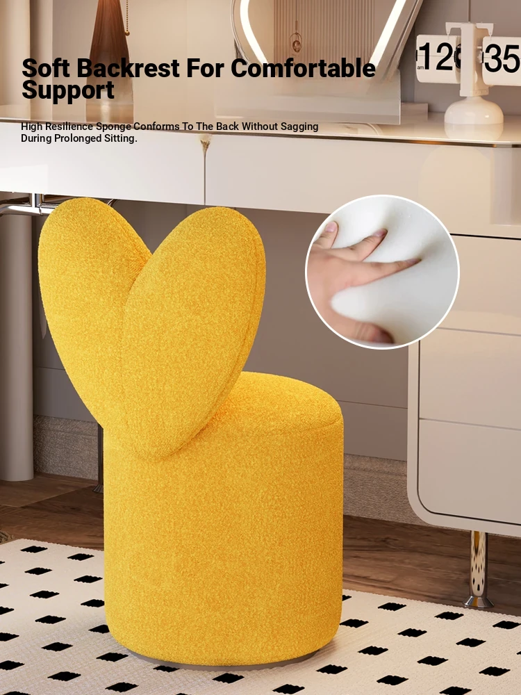 Modern Minimalist Vanity Stool - Creamy Chic Makeup Chair with Backrest, Rotating Design for Bedroom and Home Use