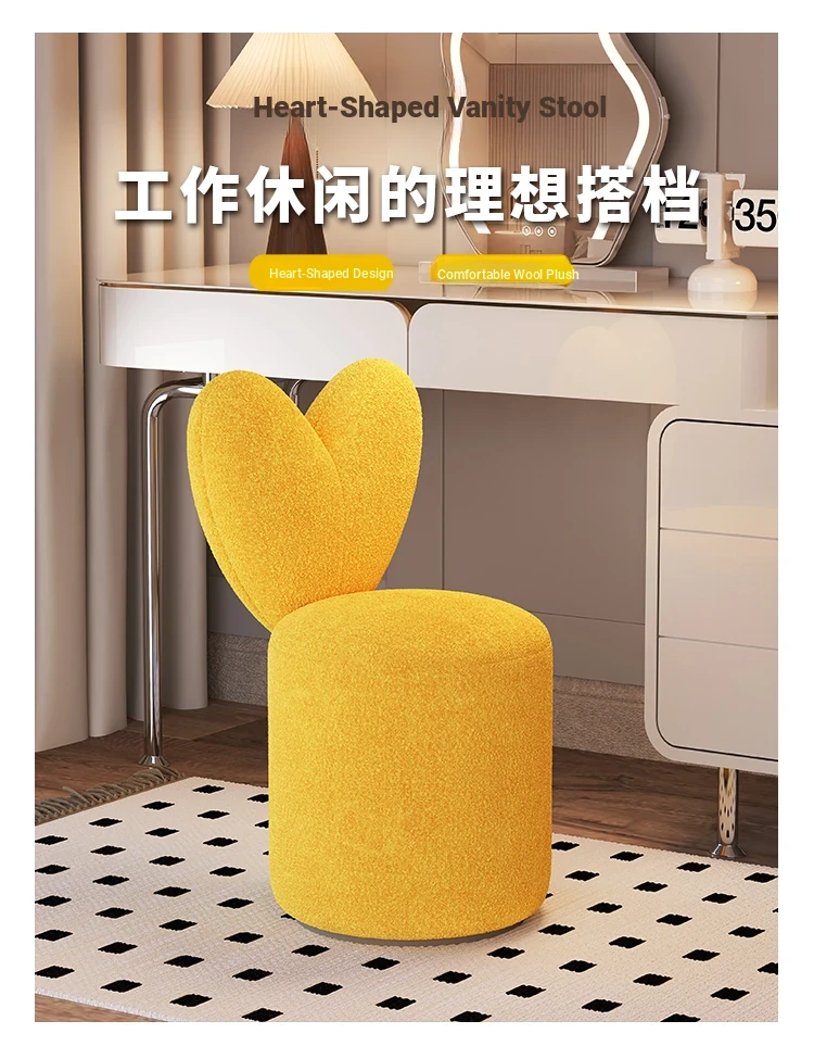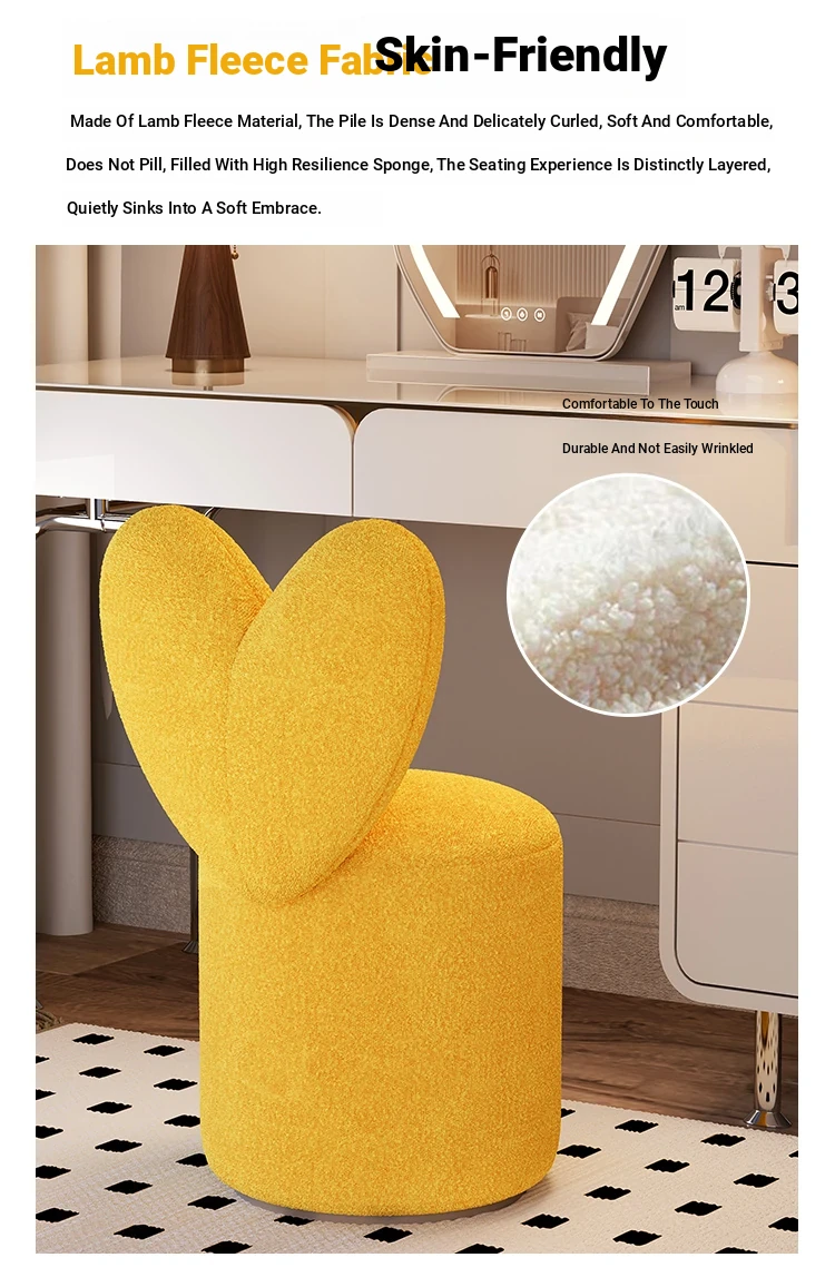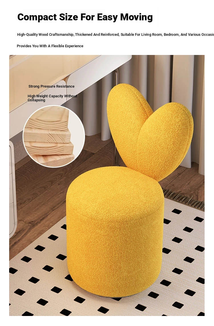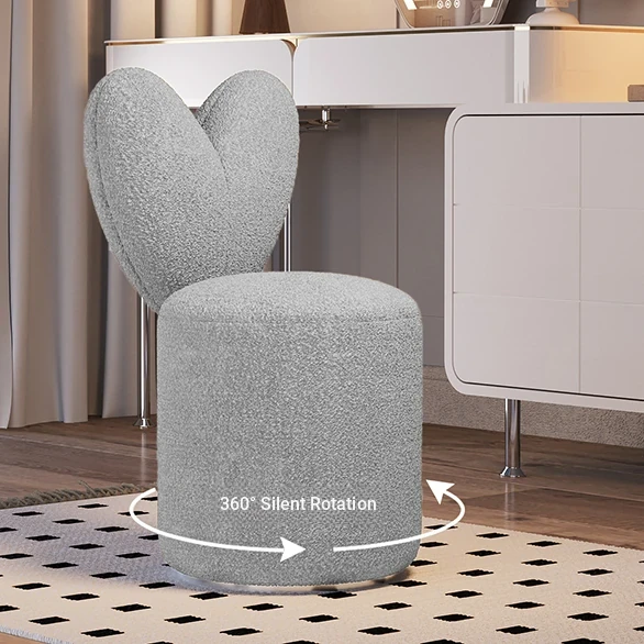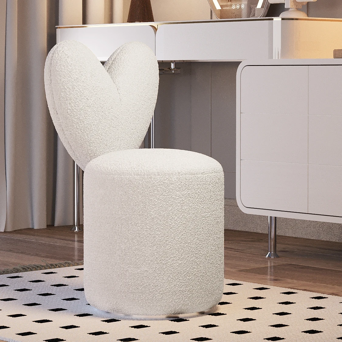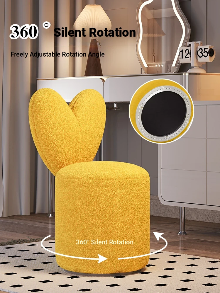 Modern Minimalist Vanity Stool - Creamy Chic Makeup Chair with Backrest, Rotating Design for Bedroom and Home Use