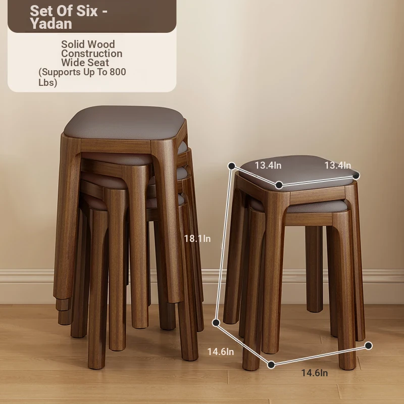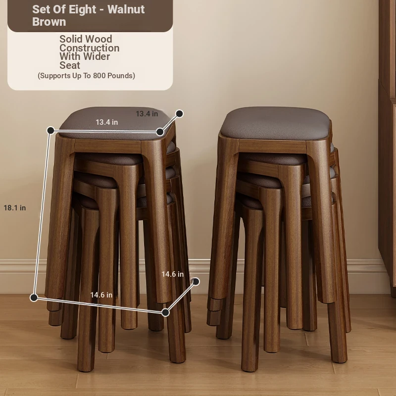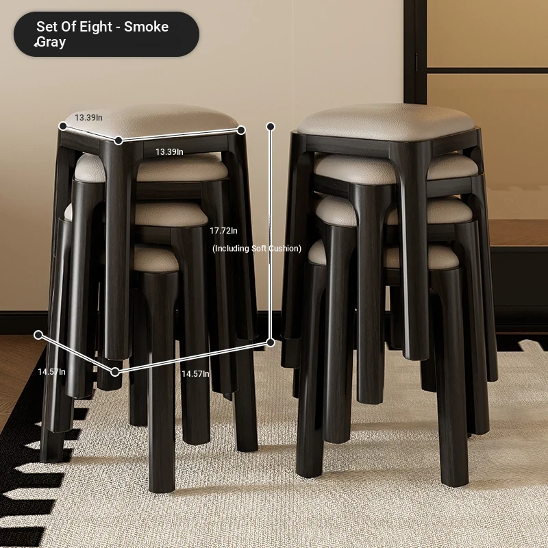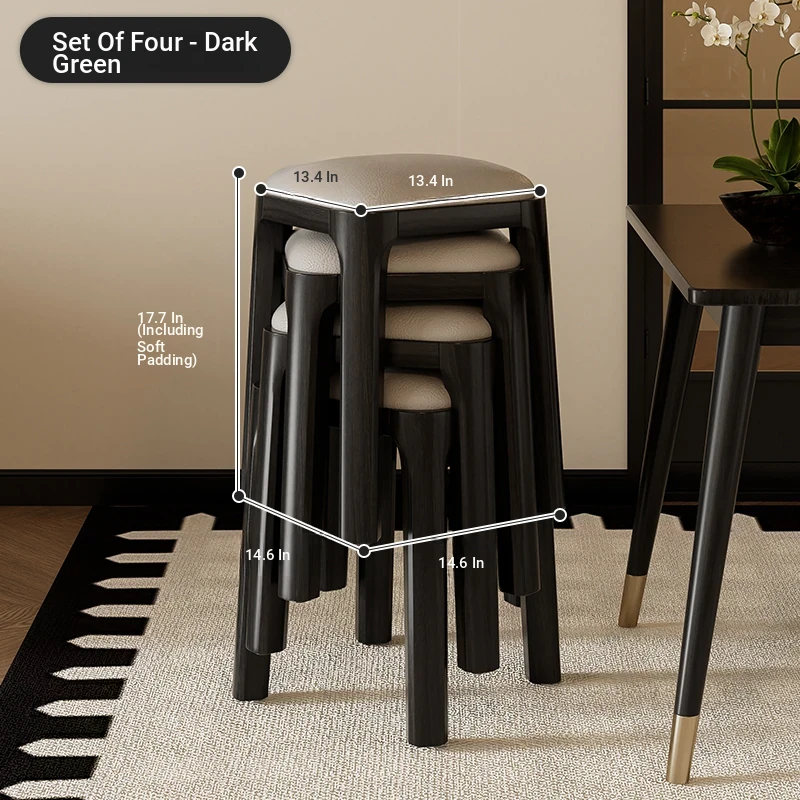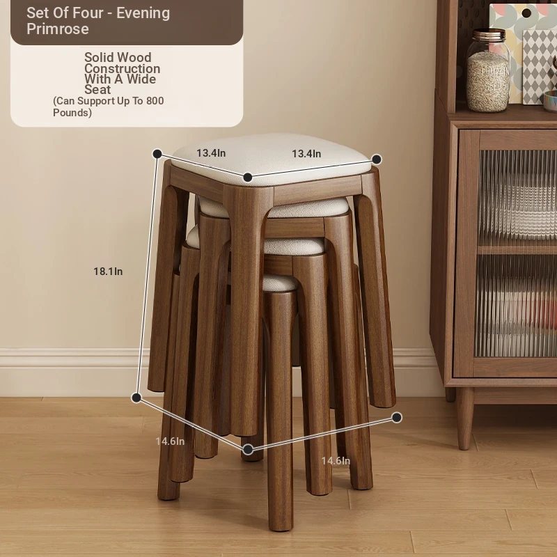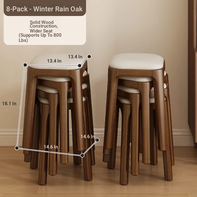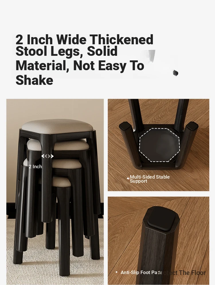 Modern Solid Wood Stool – Versatile Dining and Living Room Bench, Stackable, Upholstered Square and Round Options, Perfect for Home Use